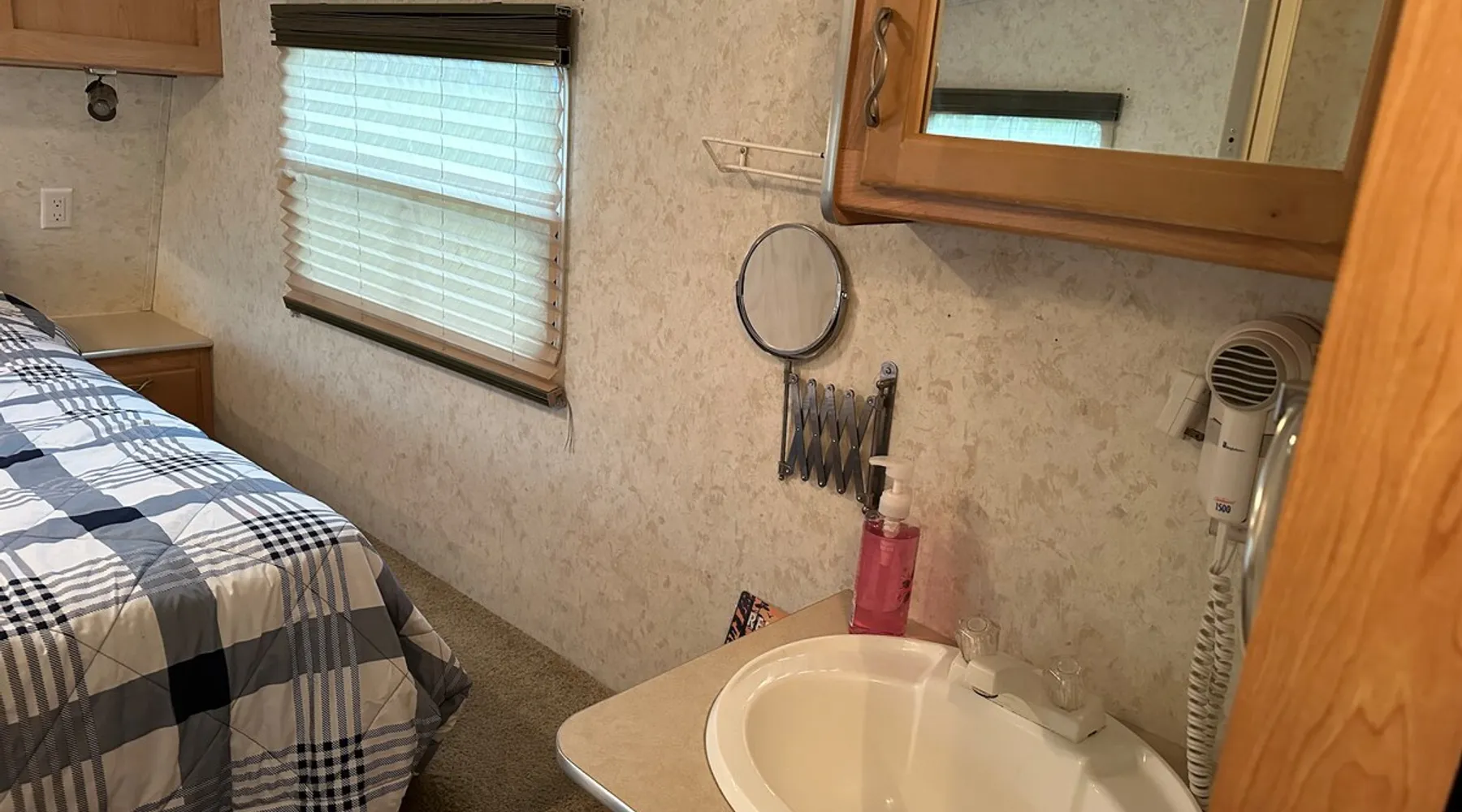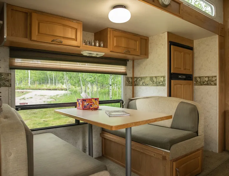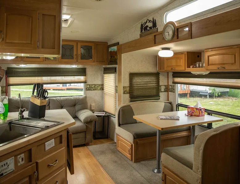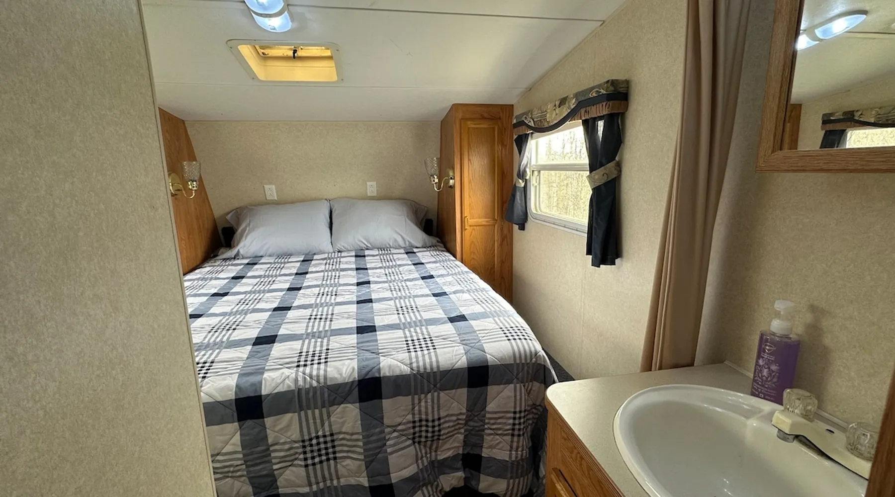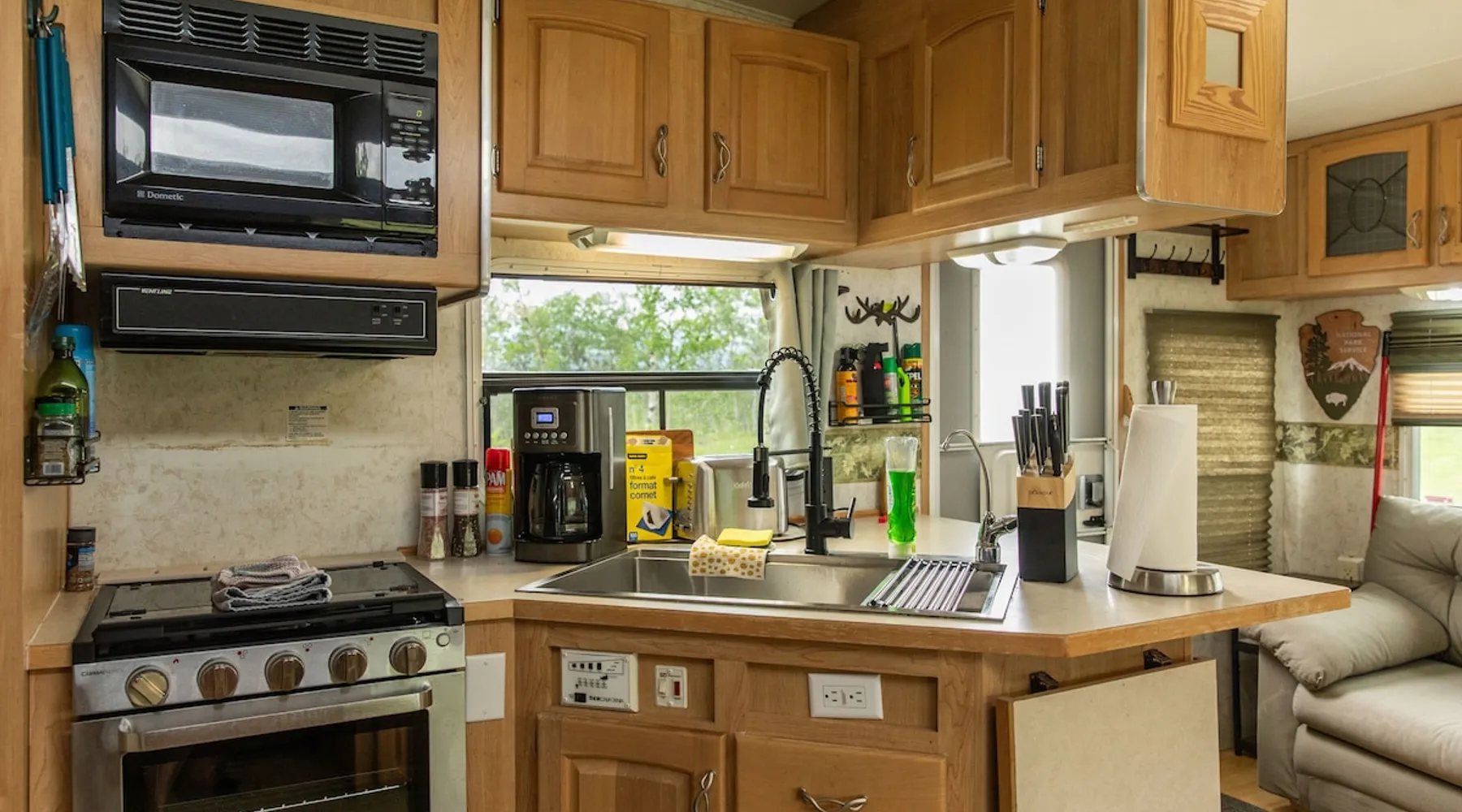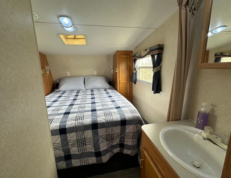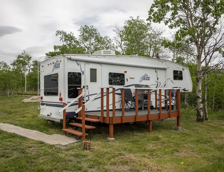 Glacier Borealis is a 27’ Glamping Trailer is located in a secluded clearing in a forest. As a guest of the Borealis you have access to a shared washer/dryer in an adjacent new wash house. There is a Weber grill. The Borealis is located 10 miles from both St Mary and Many Glacier Park Entrances near Babb, MT. This is a great budget option for 2 adults and a child. There is a common fire pit area with fire wood supplied. There is wildlife on the property and trails in the surrounding forest. The space The trailer has a queen size matress bedroom with privacy folding door and a pull out cushion bed with a size best described as slightly wider than a twin. The trailer has a full compact bathroom with shower. There are spices and condiments in the fridge. The Borealis is located on a secluded area of a private acreage called Glacier Springs. There is a beautiful open area in front of the Borealis for parking, campfires and exploration. Guest access The guest access to the trailer is via a key supplied at check in. Other things to note Hot, cold and filtered water are supplied.