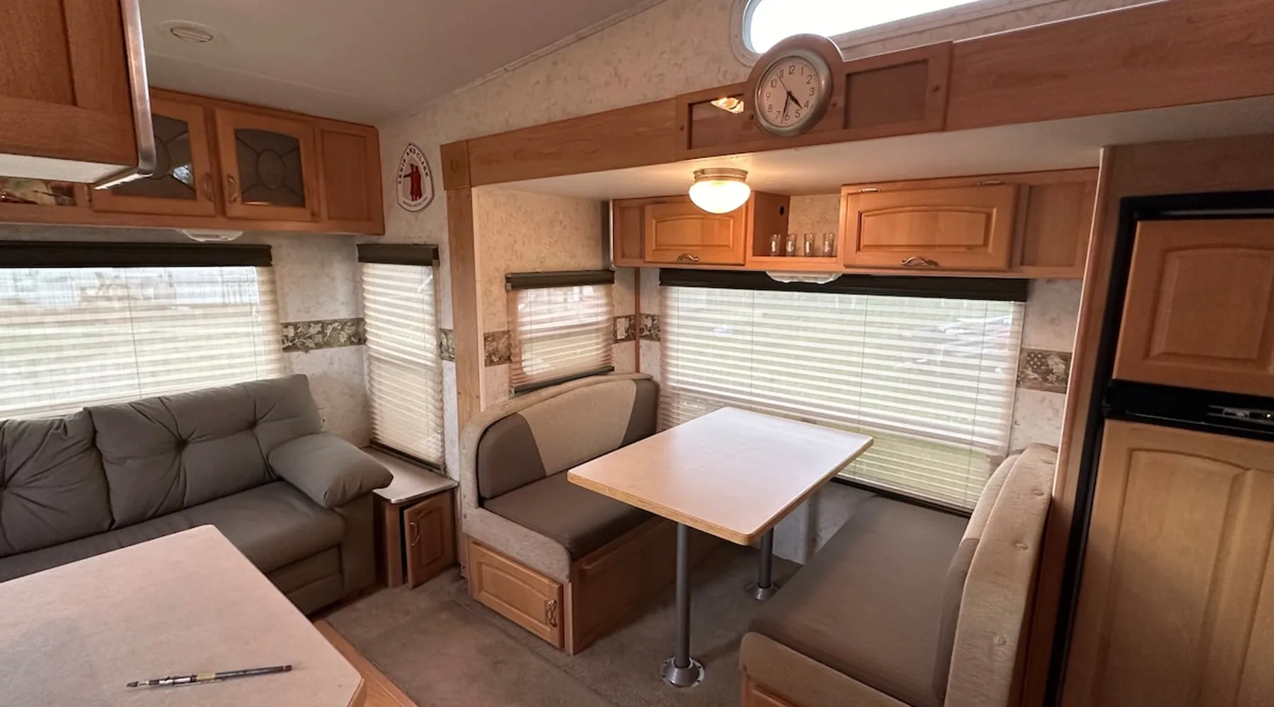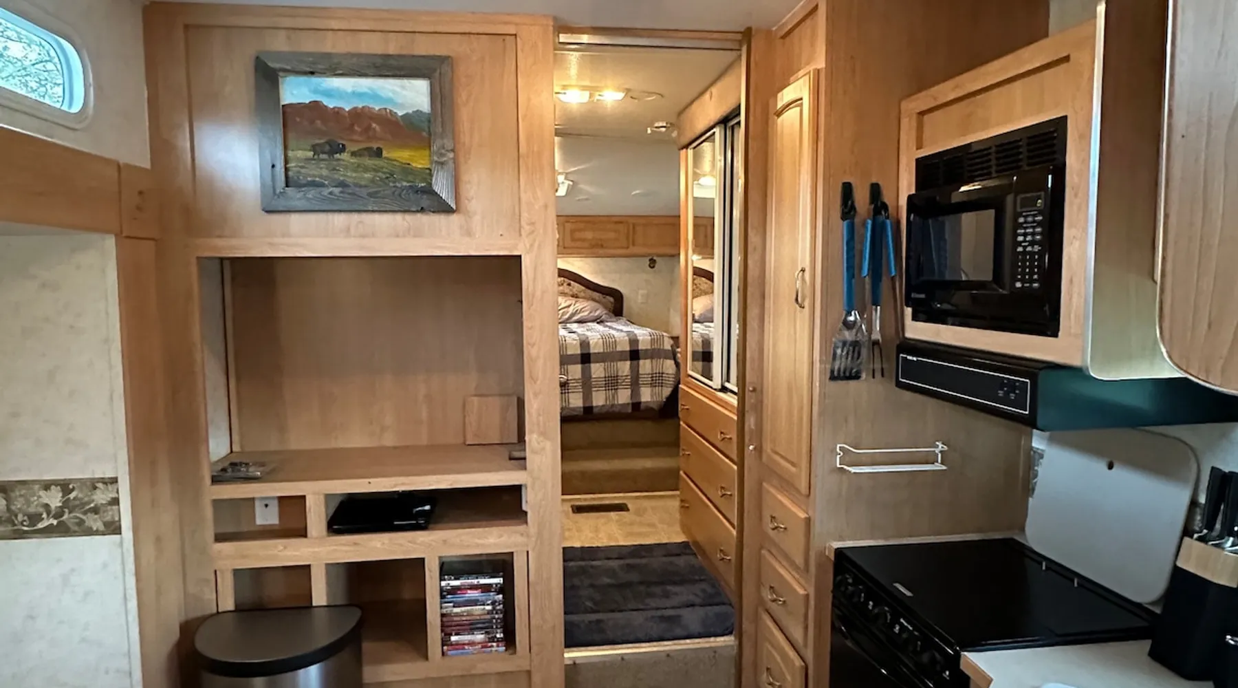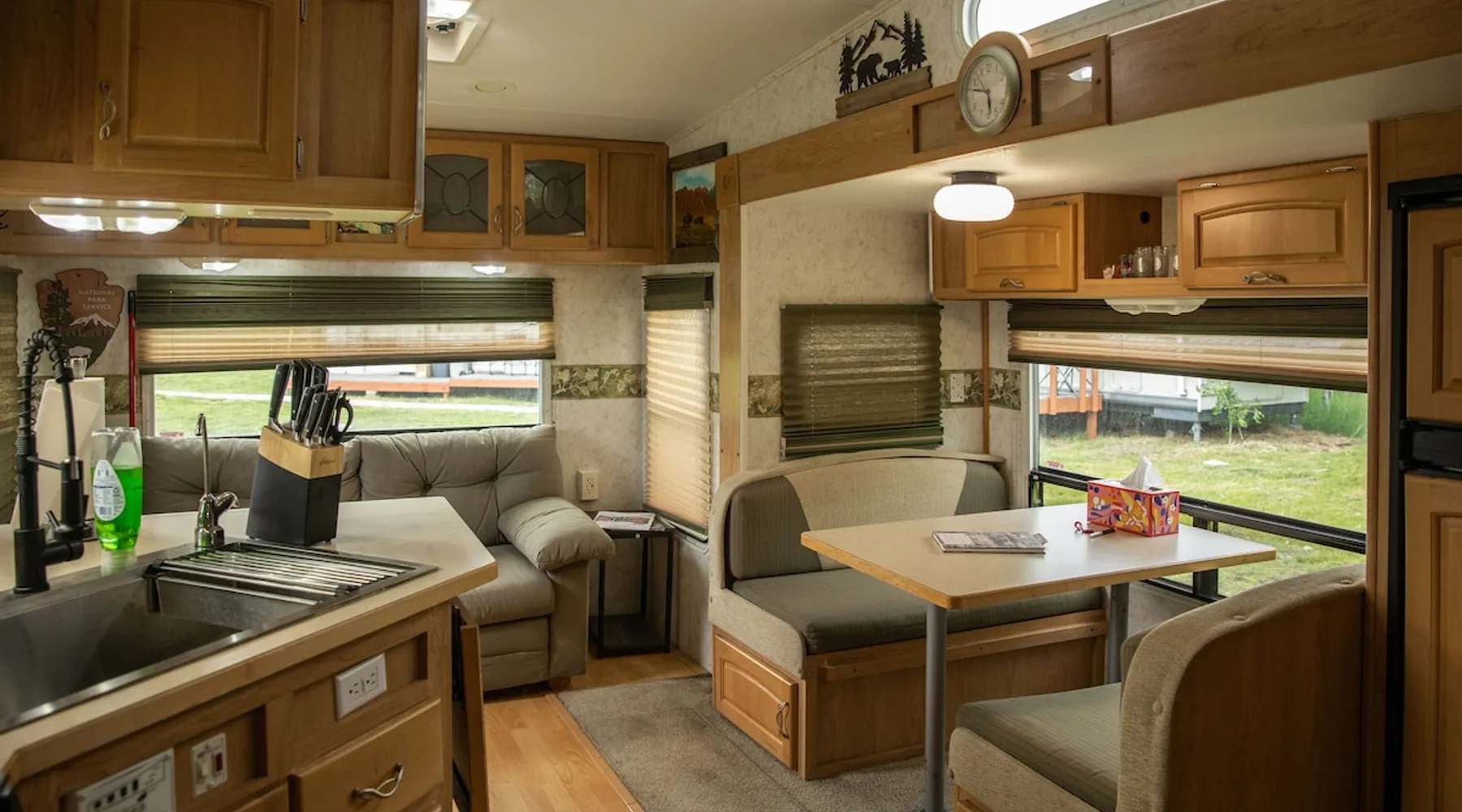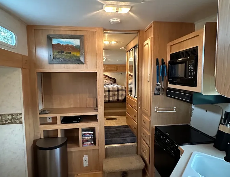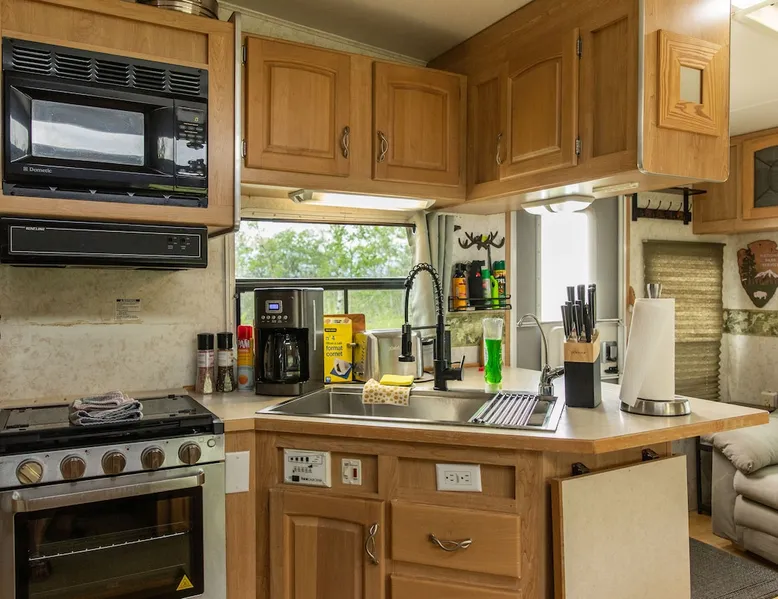 Glacier Borealis is a 27’ Glamping Trailer is located in a secluded clearing in a forest. As a guest of the Borealis you have access to a shared washer/dryer in an adjacent new wash house. There is a Weber grill. The Borealis is located 10 miles from both St Mary and Many Glacier Park Entrances near Babb, MT. This is a great budget option for 2 adults and a child. There is a common fire pit area with fire wood supplied. There is wildlife on the property and trails in the surrounding forest. The space The trailer has a queen size matress bedroom with privacy folding door and a pull out cushion bed with a size best described as slightly wider than a twin. The trailer has a full compact bathroom with shower. There are spices and condiments in the fridge. The Borealis is located on a secluded area of a private acreage called Glacier Springs. There is a beautiful open area in front of the Borealis for parking, campfires and exploration. Guest access The guest access to the trailer is via a key supplied at check in. Other things to note Hot, cold and filtered water are supplied.