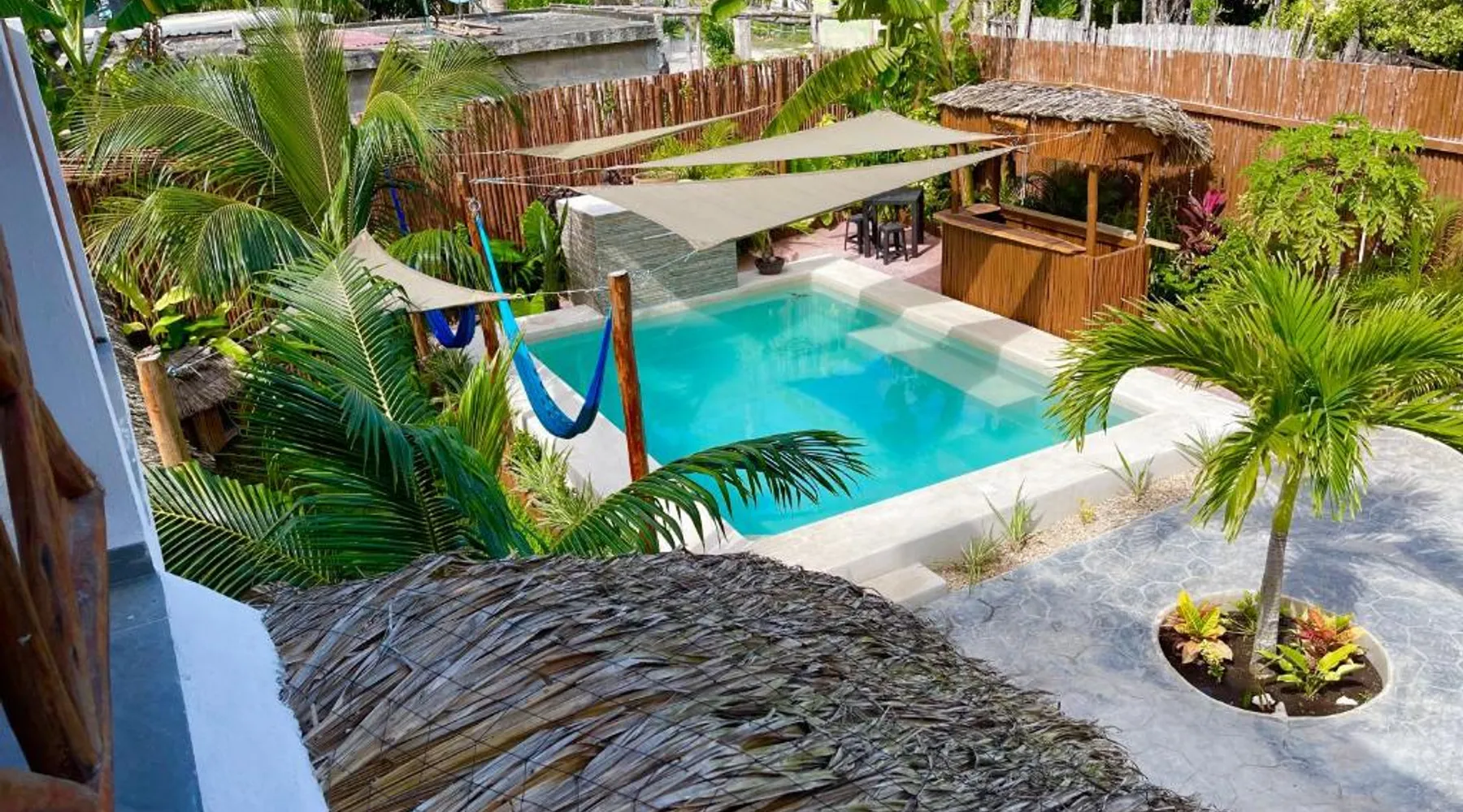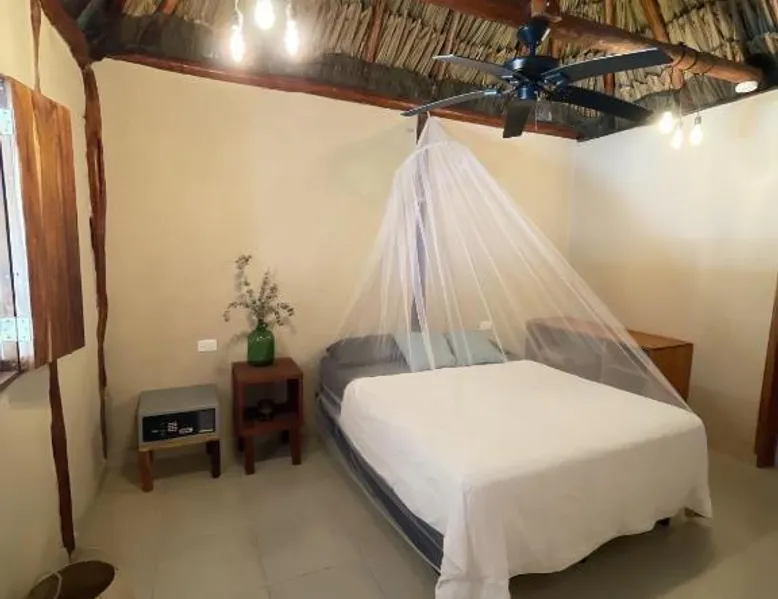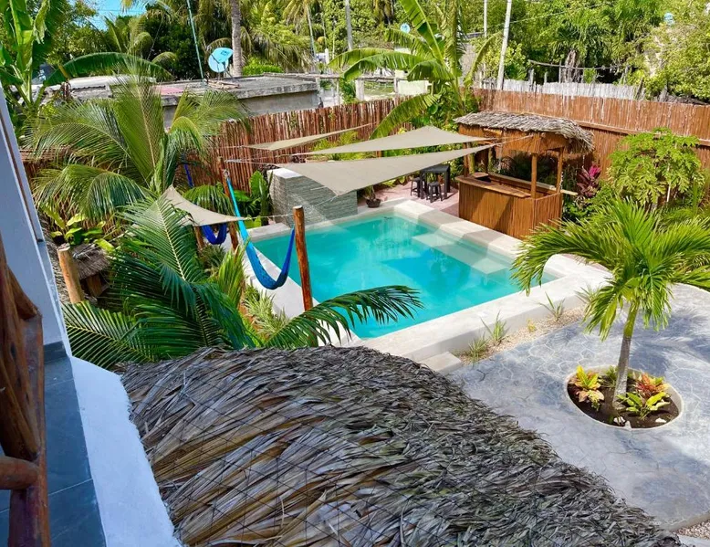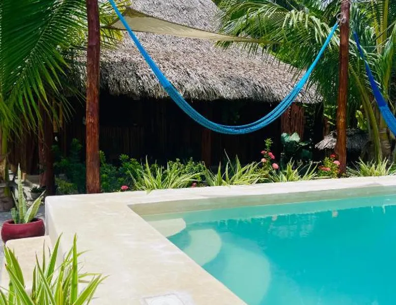 Spacious Accommodations: Casa Om Palapa with Kitchen in El Cuyo offers a spacious apartment with one bedroom and one bathroom. The ground-floor unit features a terrace, patio, and garden views. Exceptional Facilities: Guests enjoy free WiFi, a year-round outdoor swimming pool, and a bar. Additional amenities include free bicycles, a garden, and a terrace. Comfortable Living: The apartment includes air-conditioning, a fully equipped kitchen with a refrigerator, microwave, and stovetop. A dining area with a table and outdoor furniture provides a comfortable space. Convenient Location: Playa El Cuyo is a 5-minute walk away, while Cocal Beach lies 0.9 mi from the property. Cancún International Airport is 99 mi distant. Highly rated by guests. This apartment's special feature is the private pool. Featuring 1 bedroom and 1 bathroom with a walk-in shower, this spacious apartment offers a well-fitted kitchen and a terrace. The well-equipped kitchen features a stovetop, a refrigerator, kitchenware and a microwave. Among the room amenities are air conditioning, a tea and coffee maker, a dining area as well as a patio and garden views. The unit has 1 bed.