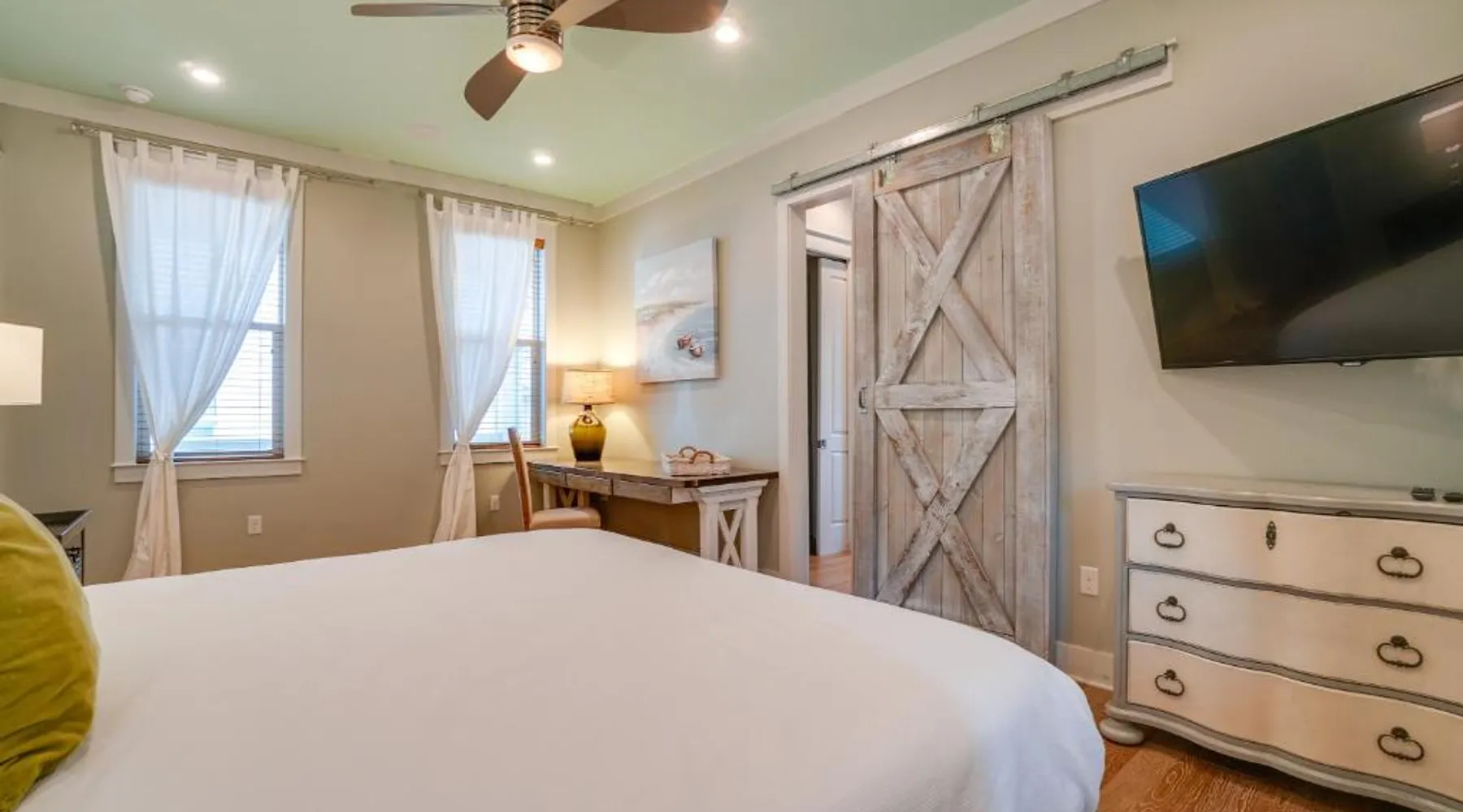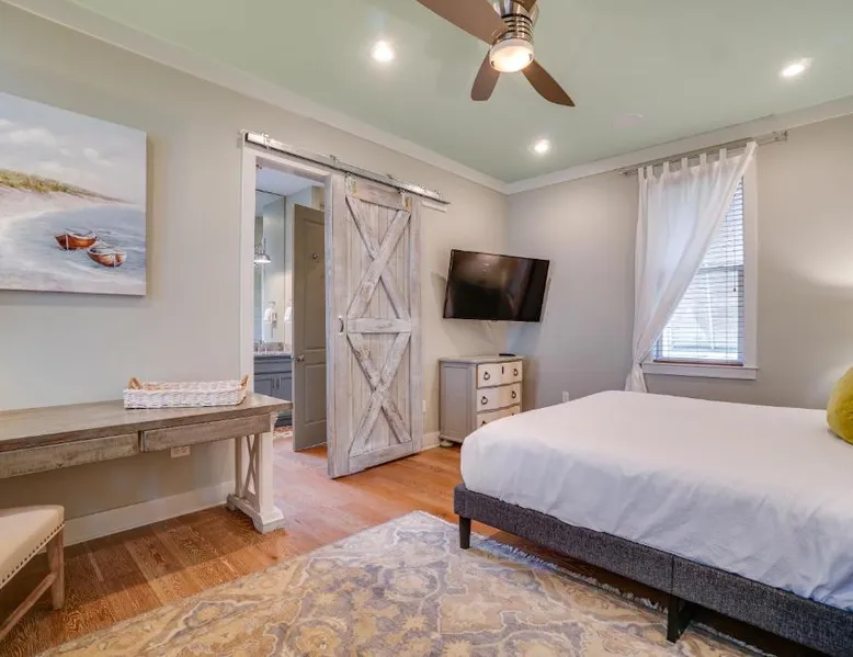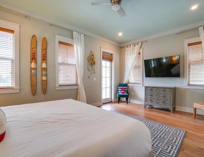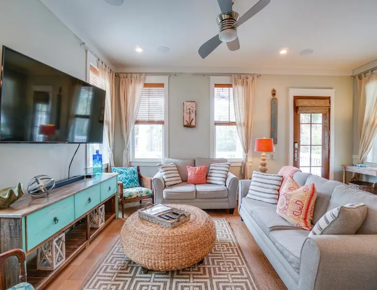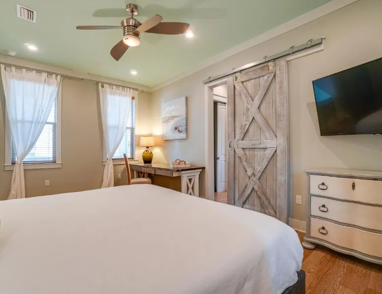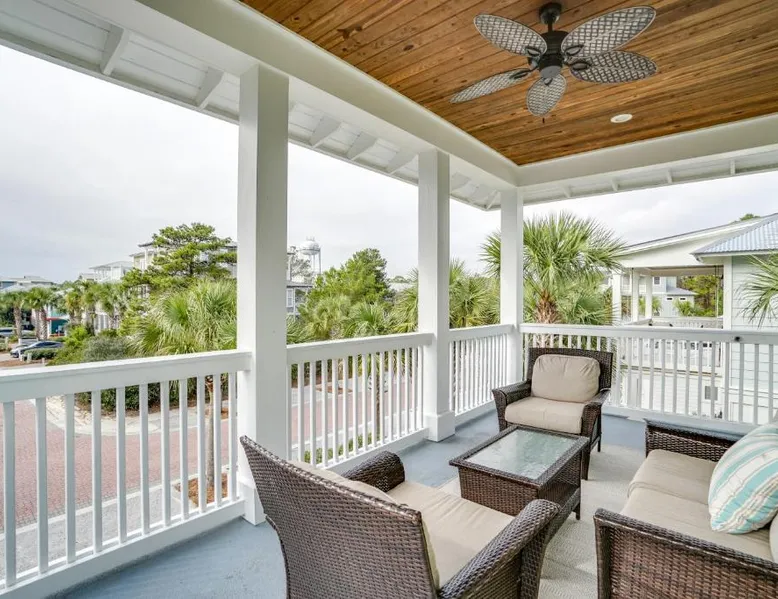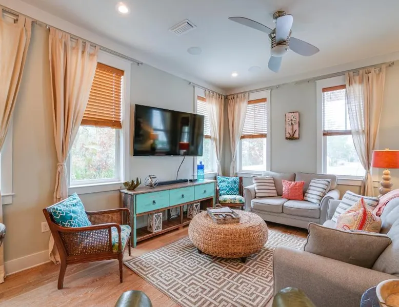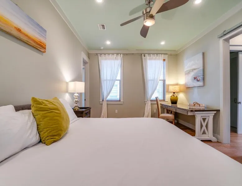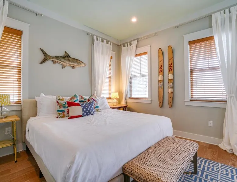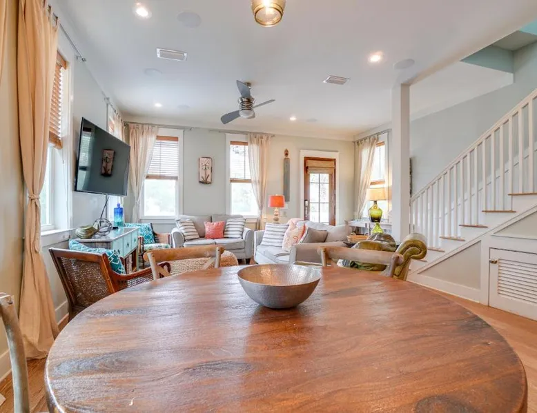 Spacious Accommodations: 30A Blue Crab Cottage by Panhandle Getaways in Rosemary Beach offers a spacious holiday home with four bedrooms and four bathrooms. The property features a living room, terrace, balcony, and a fully equipped kitchen. Outdoor Amenities: Guests can enjoy a sun terrace and a seasonal outdoor swimming pool. Free WiFi is available throughout the property, ensuring connectivity. Additional facilities include an outdoor seating area, picnic spots, live music, and barbecue facilities. Convenient Location: Located an 8-minute walk from Rosemary Beach, the property is 22 mi from Northwest Florida Beaches International Airport. Nearby attractions include Russell-Fields Pier and Pier Park, both 11 mi away. Featuring a private entrance, this air-conditioned holiday home is consisted of of 1 living room, 4 separate bedrooms and 4 bathrooms with a bath and a shower. The well-equipped kitchen features a stovetop, a refrigerator, a dishwasher and an oven. The spacious holiday home offers a flat-screen TV with streaming services, a washing machine, a coffee machine, a seating area as well as an inner courtyard view. The unit offers 10 beds.