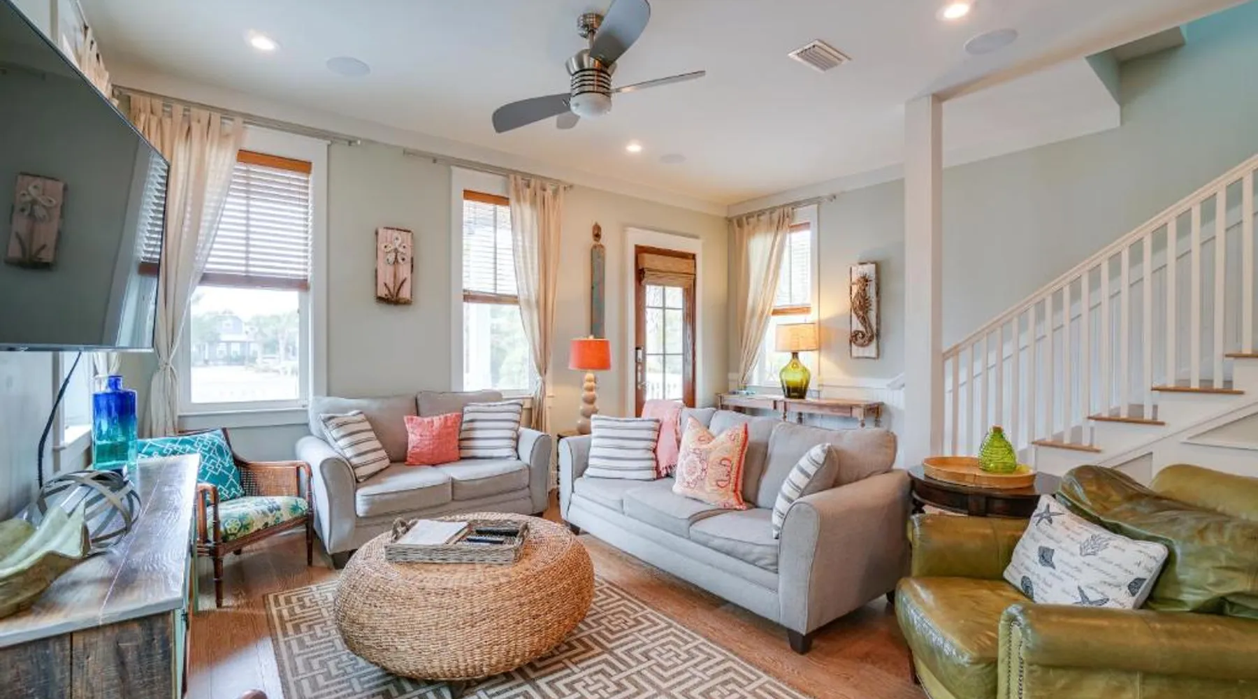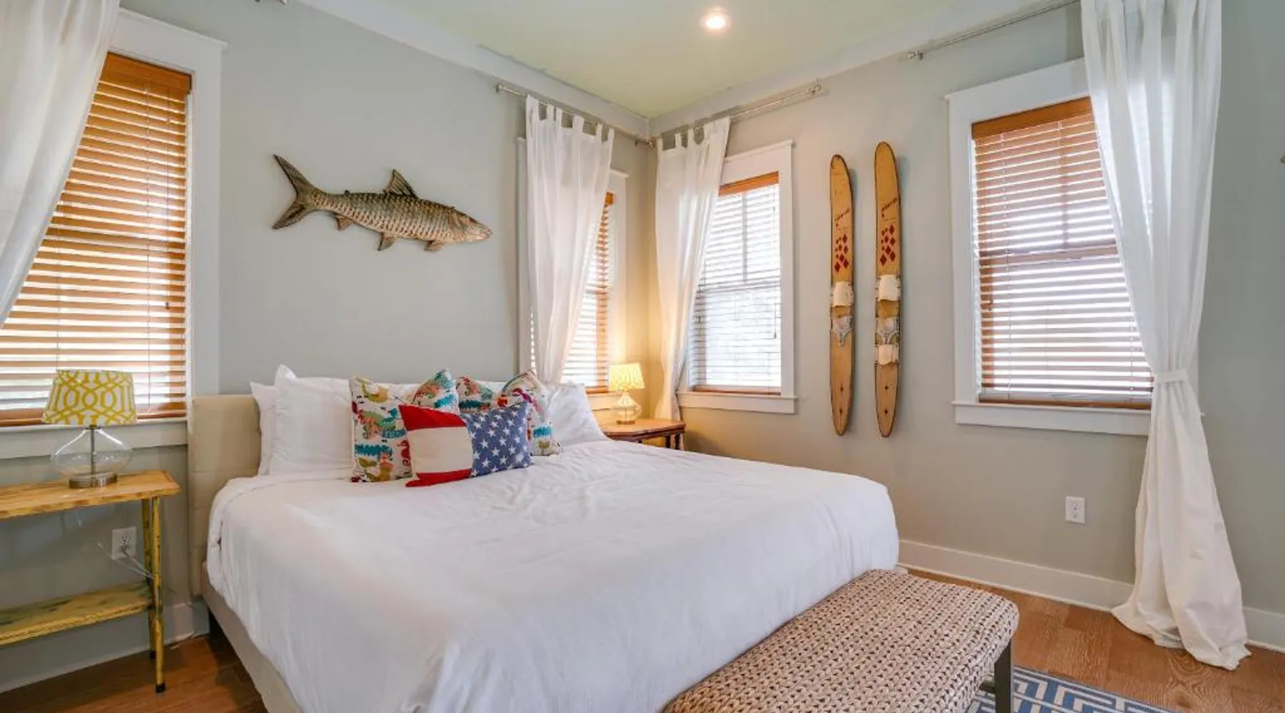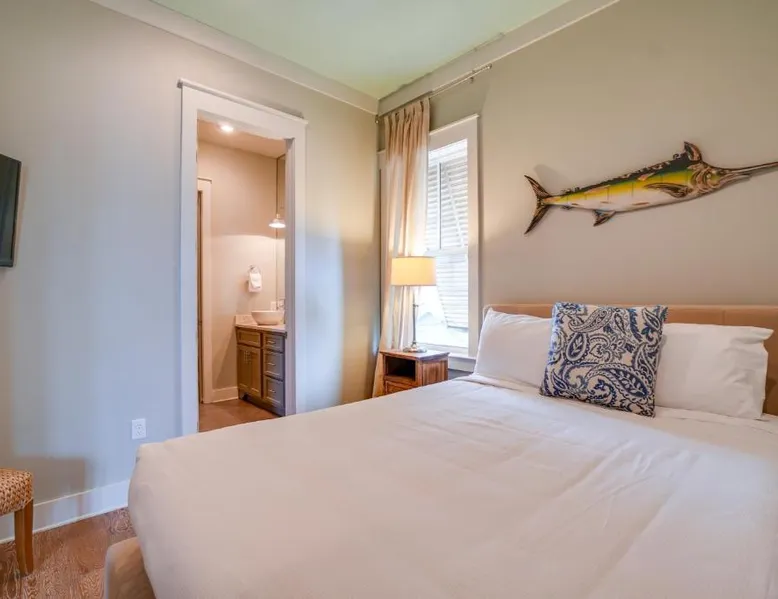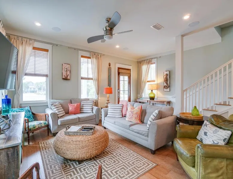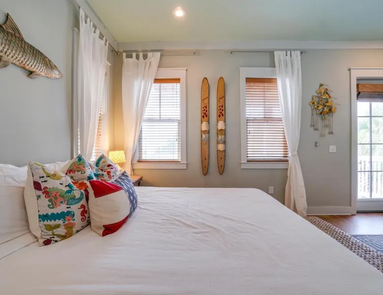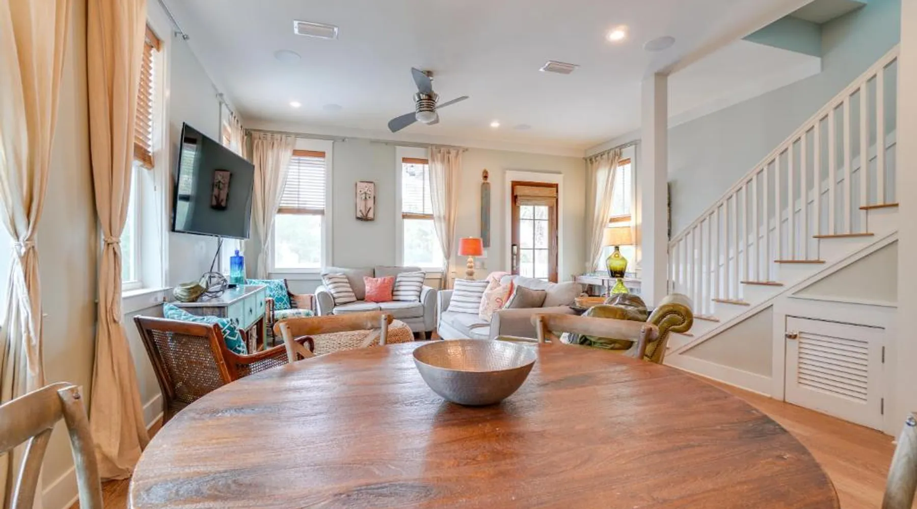 Spacious Accommodations: 30A Blue Crab Cottage by Panhandle Getaways in Rosemary Beach offers a spacious holiday home with four bedrooms and four bathrooms. The property features a living room, terrace, balcony, and a fully equipped kitchen. Outdoor Amenities: Guests can enjoy a sun terrace and a seasonal outdoor swimming pool. Free WiFi is available throughout the property, ensuring connectivity. Additional facilities include an outdoor seating area, picnic spots, live music, and barbecue facilities. Convenient Location: Located an 8-minute walk from Rosemary Beach, the property is 22 mi from Northwest Florida Beaches International Airport. Nearby attractions include Russell-Fields Pier and Pier Park, both 11 mi away. Featuring a private entrance, this air-conditioned holiday home is consisted of of 1 living room, 4 separate bedrooms and 4 bathrooms with a bath and a shower. The well-equipped kitchen features a stovetop, a refrigerator, a dishwasher and an oven. The spacious holiday home offers a flat-screen TV with streaming services, a washing machine, a coffee machine, a seating area as well as an inner courtyard view. The unit offers 10 beds.