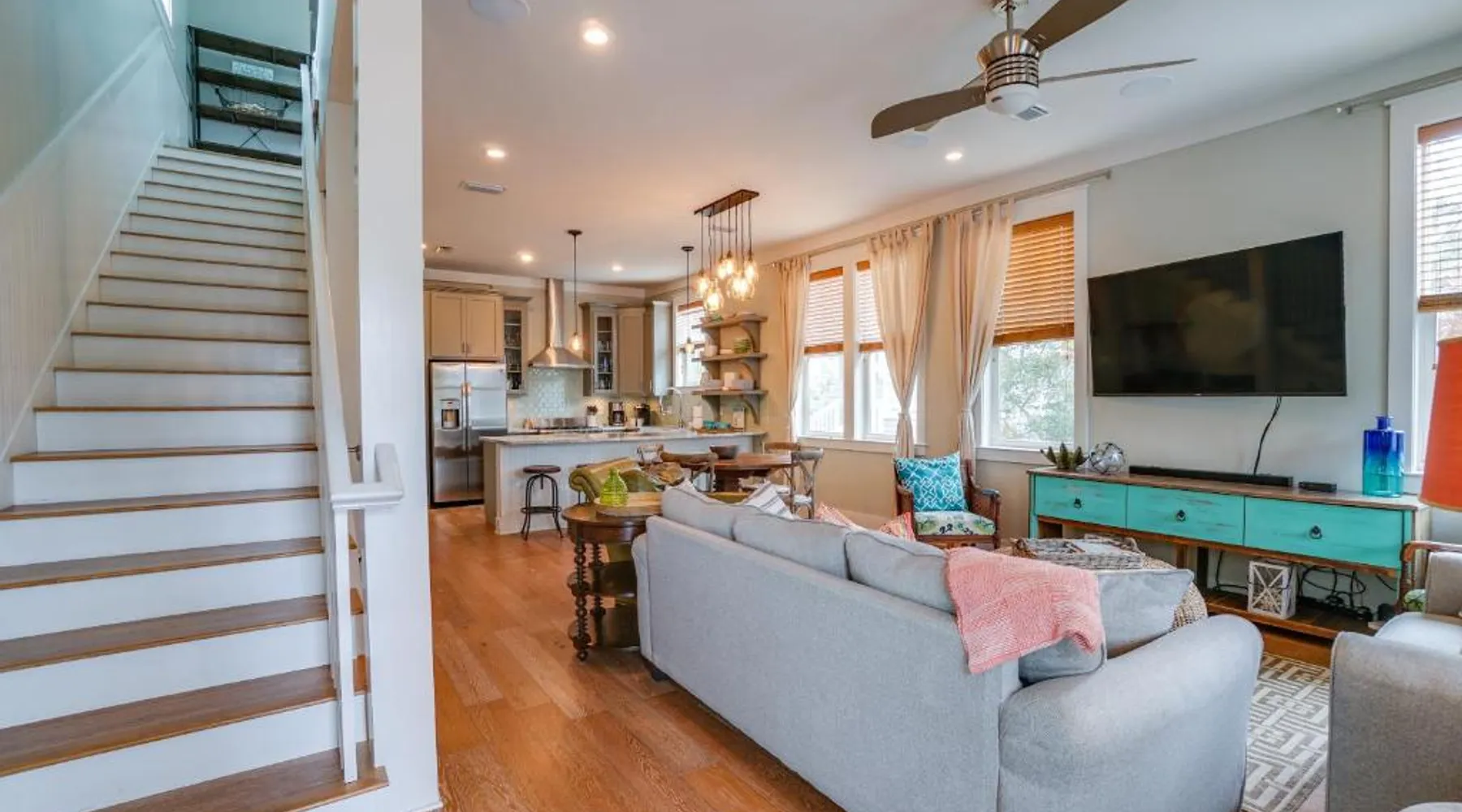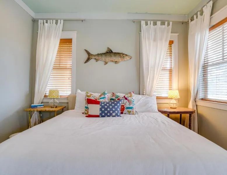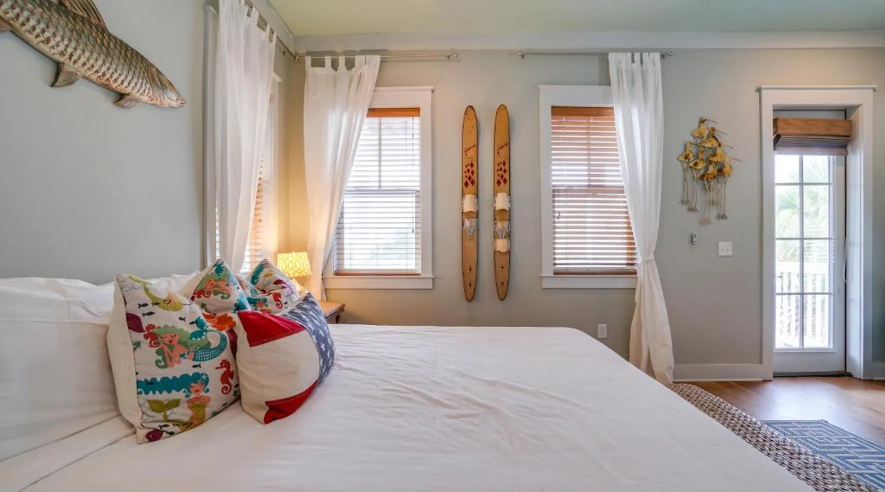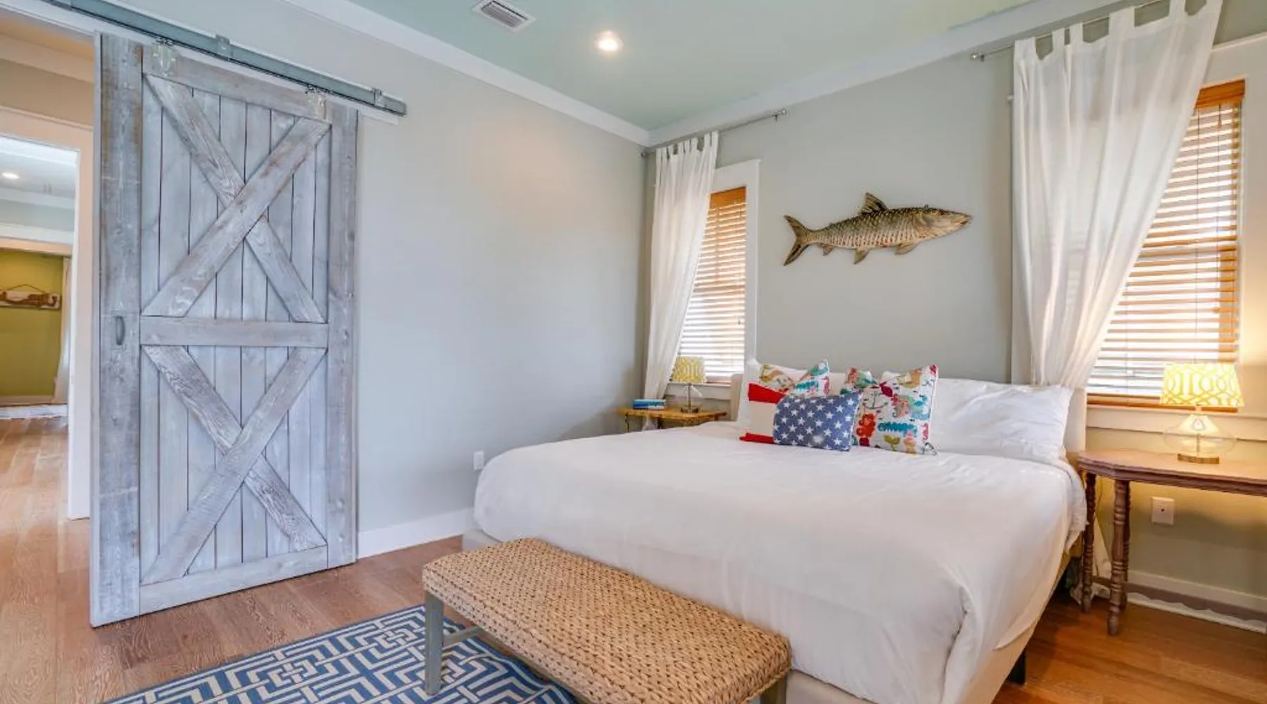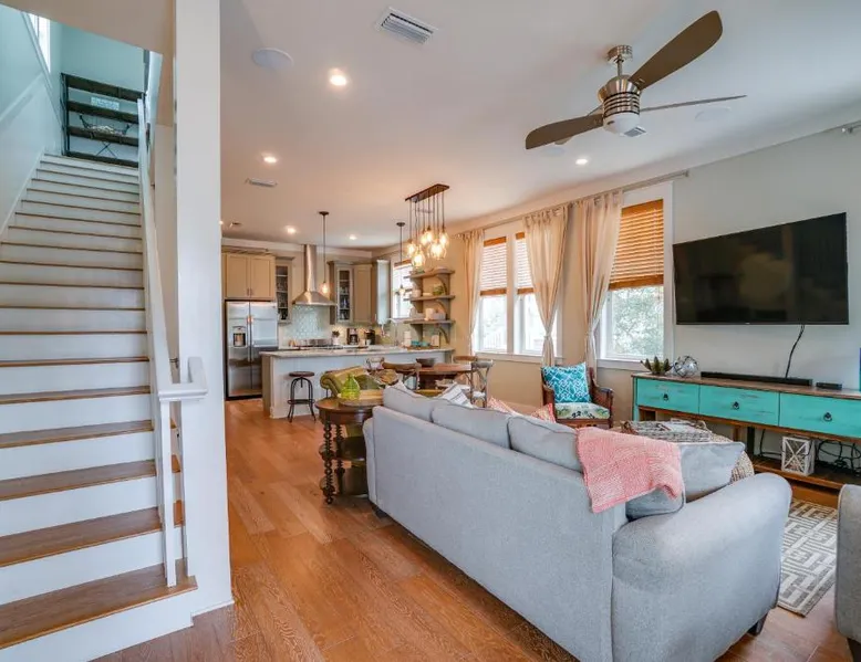 Spacious Accommodations: 30A Blue Crab Cottage by Panhandle Getaways in Rosemary Beach offers a spacious holiday home with four bedrooms and four bathrooms. The property features a living room, terrace, balcony, and a fully equipped kitchen. Outdoor Amenities: Guests can enjoy a sun terrace and a seasonal outdoor swimming pool. Free WiFi is available throughout the property, ensuring connectivity. Additional facilities include an outdoor seating area, picnic spots, live music, and barbecue facilities. Convenient Location: Located an 8-minute walk from Rosemary Beach, the property is 22 mi from Northwest Florida Beaches International Airport. Nearby attractions include Russell-Fields Pier and Pier Park, both 11 mi away. Featuring a private entrance, this air-conditioned holiday home is consisted of of 1 living room, 4 separate bedrooms and 4 bathrooms with a bath and a shower. The well-equipped kitchen features a stovetop, a refrigerator, a dishwasher and an oven. The spacious holiday home offers a flat-screen TV with streaming services, a washing machine, a coffee machine, a seating area as well as an inner courtyard view. The unit offers 10 beds.