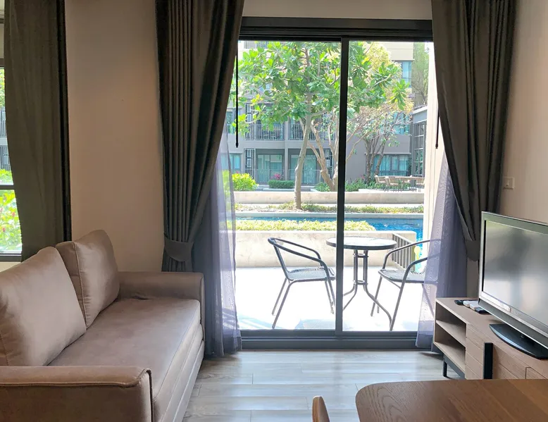 - 1 Bedroom 1 Bathroom 1 Sofa bed fully furnished - 1st Floor , Pool access Low rise tropical Forest style condo at Cha-am beach. Quiet and peaceful , with a total of only 499 units. Perfect for families and friends or couples. Located in the same area as The Regent Cha-am Beach Resort. The property is not at the beach front but you can walk to the beach about 250 m. The space Electric appliances - Smart TV , Microwave, Water heater, Refrigerator, Electric stove, Cooker hood, 2 air-conditioners , wifi - Swimming Pool, Fitness room , Co-working space , Sansiri Backyard ,Lounge - Shuttle To BTS. On - nut station - 24 hrs security Other things to note - Our room is in a condominium building - Daily cleaning service is not included in the room rate, should you need extra cleaning please let us know 1-2 days in advance. CHECK IN : 2 PM CHECK OUT : 12 PM * All guests must provide government ID / Passport once booking confirmed * Early check-in (If available) +500THB plus taxes. Late check-out (If available) +500THB plus taxes. ------------------------------- 1. Quiet time after 11 p.m. 2. Make sure to turn off the lights, air con and any electronics when you leave the room. 3. No eating or drinking in bedrooms. Please enjoy your meal in the living room. 4. Wash dishes and take the trash out before you leave. 5. Early check-in or late checkout may be available upon request. Guests who stay beyond their designated checkout time or delay our housekeeping staff are liable for any associated costs and expenses. 6. Smoking, parties, and excessive noise are not allowed, including on balconies and in shared spaces. Smoking violations are subject to a $250 fine plus the cost to clean, deodorize, and repair damages. 7. Commercial photography/videography without written consent, Illegal activity, prostitution, and possession of firearms is strictly prohibited. 8. Overnight guests that exceed the number stated in the reservation are not allowed. 9. Pets are not allowed. Violation of our pet policy may result in a fine. We encourage guests with service animals to contact us before their stay. 10. Guests are responsible for covering the cost to replace lost keys, key cards, fobs, or parking passes. 11. Guests take full responsibility for damages, injury, or loss that occur on the premises and its facilities. Guests must report any property damage to customer service. Unreported damages will be deducted from the security deposit. 12. Booking a reservation constitutes an agreement to comply with the House Rules. Guests who violate these rules are liable for any associated damages, fees, costs, or expenses. 13. We do not provide daily cleaning. But if you want a weekly housekeeping and thorough cleaning it’ll be 700 thb / time