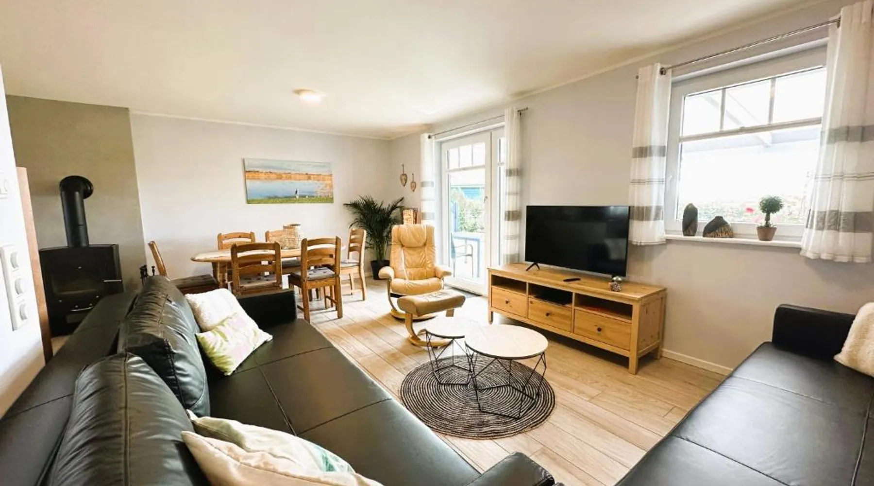 Elegant Holiday Home in Emmelsbüll-Horsbüll: Villa Deichblick offers a serene retreat in Emmelsbüll-Horsbüll, Germany. Guests enjoy a spacious garden and terrace with stunning views. Free WiFi is available throughout the property. Comfortable Living Spaces: The holiday home features three bedrooms and a modern bathroom. The living room includes a sofa bed and a cozy seating area. A fully equipped kitchen with a dishwasher and microwave ensures convenience. Outdoor Amenities: An outdoor fireplace and seating area provide relaxing spaces. An electric vehicle charging station and outdoor dining area enhance the outdoor experience. Convenient Location: Sylt Airport is 56 mi away, offering easy access to the region. Reception staff speak German and English, assisting guests with their needs. The fireplace is the standout feature of this holiday home. Boasting a private entrance, this holiday home comes with 1 living room, 3 separate bedrooms and 1 bathroom with a shower. Guests will find a stovetop, a refrigerator, a dishwasher and kitchenware in the kitchen. The holiday home also includes a barbecue. Featuring a terrace with garden views, this holiday home also features a washing machine and a TV with satellite channels. The unit has 5 beds.