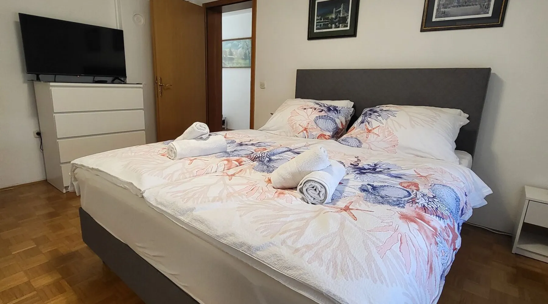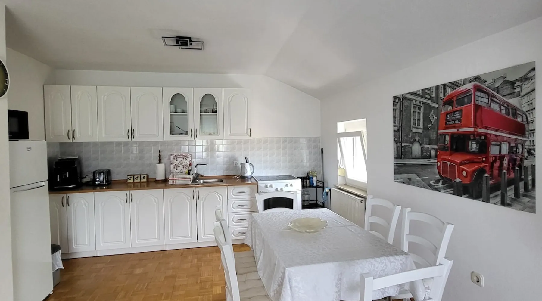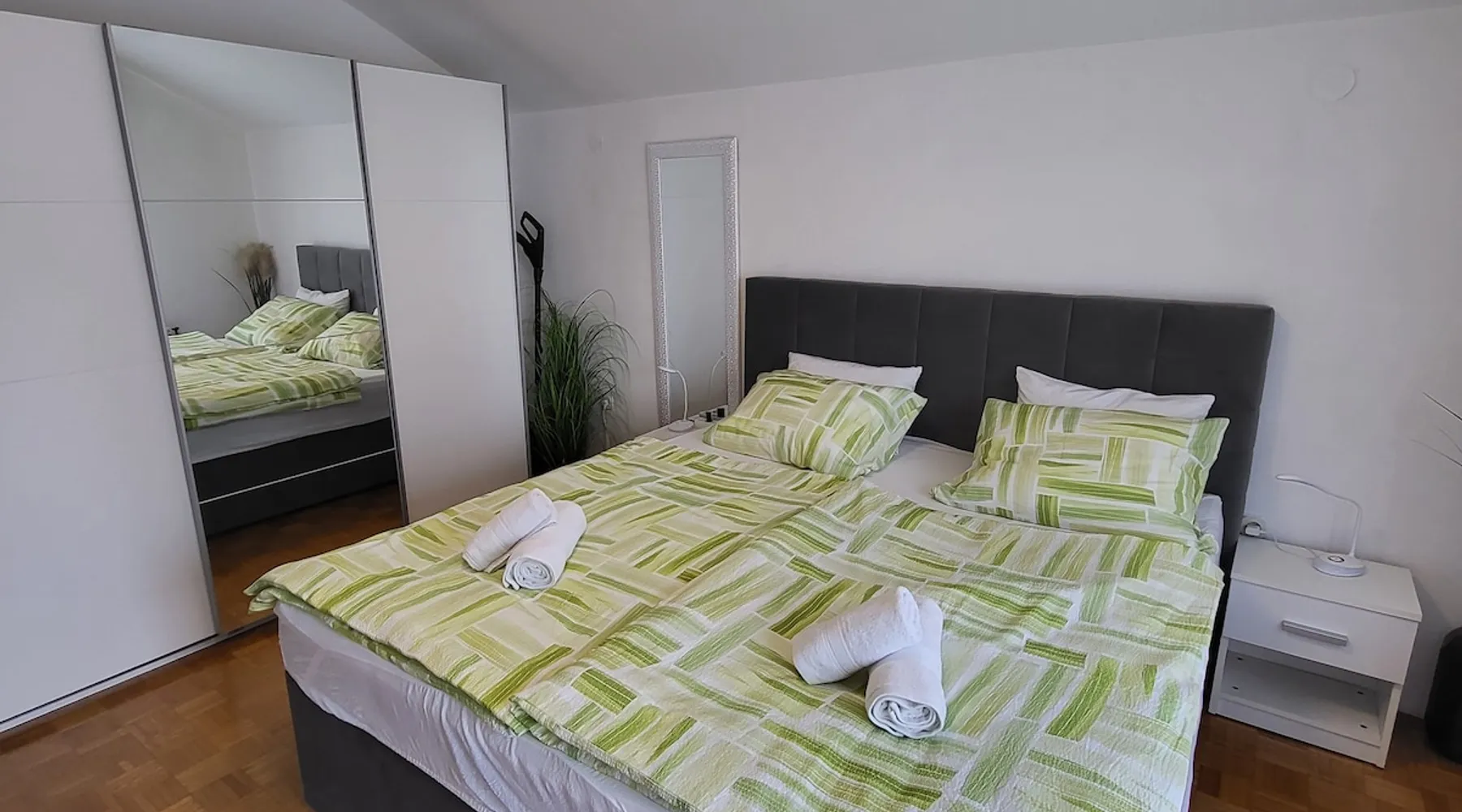 Apartment Peric is a pleasant accommodation on the edge of Ljubljana, ideal for those who want to enjoy the hustle and bustle of the city, but want peace and comfort. This beautiful apartment offers you everything you need for a comfortable stay during your visit to Slovenia. It is also important to mention the private parking lot that Apartment Peric offers. With a capacity of 10 vehicles, it is an ideal solution for guests traveling with their own cars, trailers or motorhomes. Other things to note The tourist tax is not included in the Airbnb reservation price and must be paid in cash upon arrival at the property.