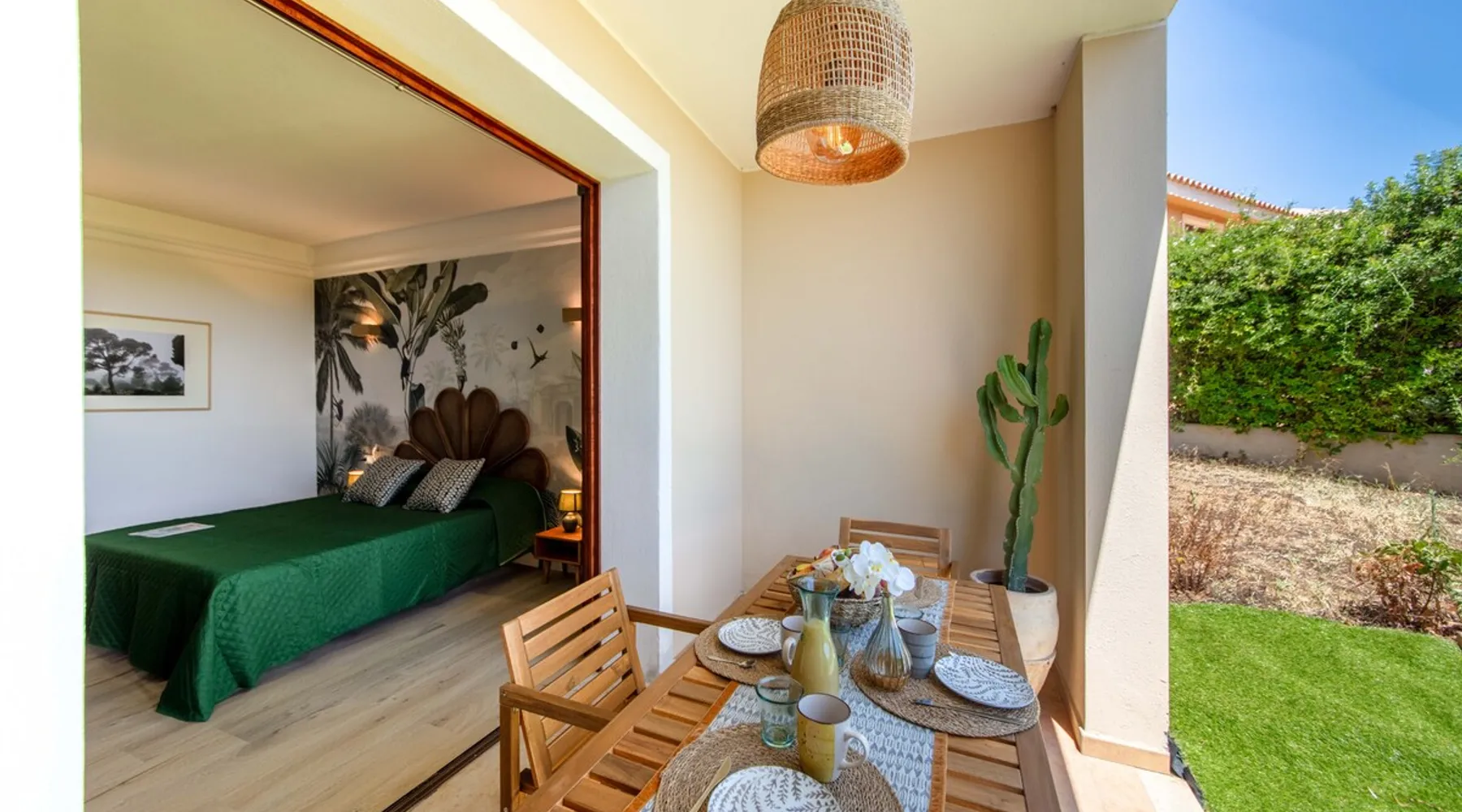 Welcome to the exclusive Le Ginestre residence in Golf Is Molas, with sea views and surrounded by nature in Sardinia. The panoramic apartment with garden and veranda, kitchen, bedroom, and bathroom is perfect for two people, but can accommodate up to 4 guests with the sofa bed. Equipped with air conditioning, smart TV, Wi-Fi, and convenient parking nearby. The ideal accommodation for an unforgettable experience of luxury and beauty! The space The apartment is a perfect blend of comfort and style, ideal for two people seeking an unforgettable vacation. The fully equipped kitchen will allow you to prepare delicious meals with views of the hills and the sea, while the bedroom will welcome you with refined elegance for moments of rest and relaxation. The pleasure of outdoor living will be at your fingertips thanks to the marvelous garden and private veranda, where you can enjoy breakfast or sip an aperitif while admiring the colors of the sunset reflecting on the sea. The apartment is designed to accommodate two additional guests, thanks to the comfortable sofa bed in the living room, for a total of 4 guests. Every detail is carefully crafted with passion to make you feel pampered and comfortable. During your stay, modern comforts will not be lacking, such as air conditioning to face the hot summer days, a smart TV for entertainment evenings, and Wi-Fi to stay connected to the outside world. The parking area, located a short distance from the apartment, will provide a convenient solution for your vehicle, allowing you to explore the wonders of Sardinia with ease. Registration Details IT092050C2000S3450