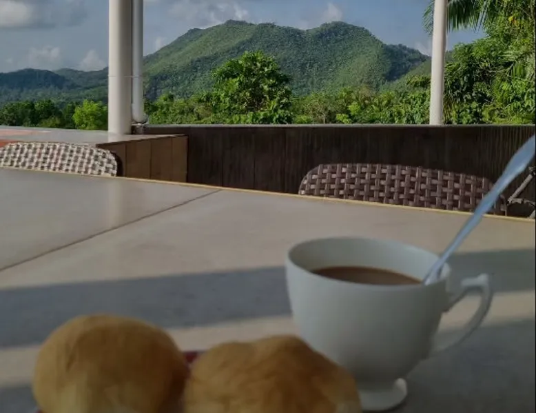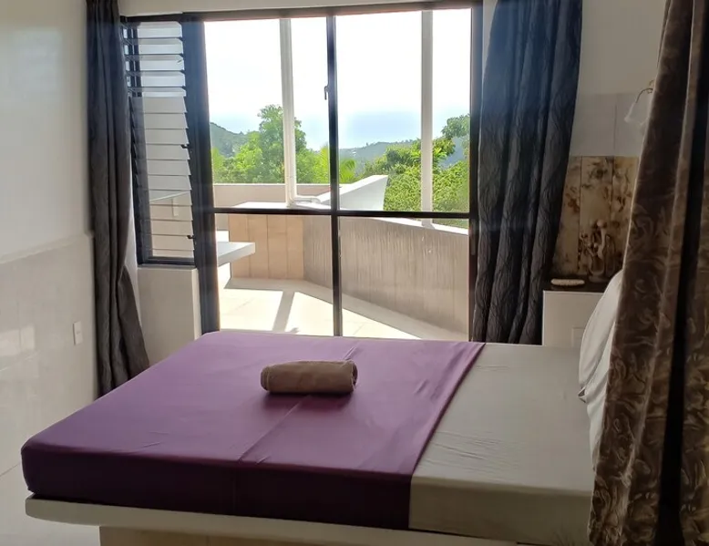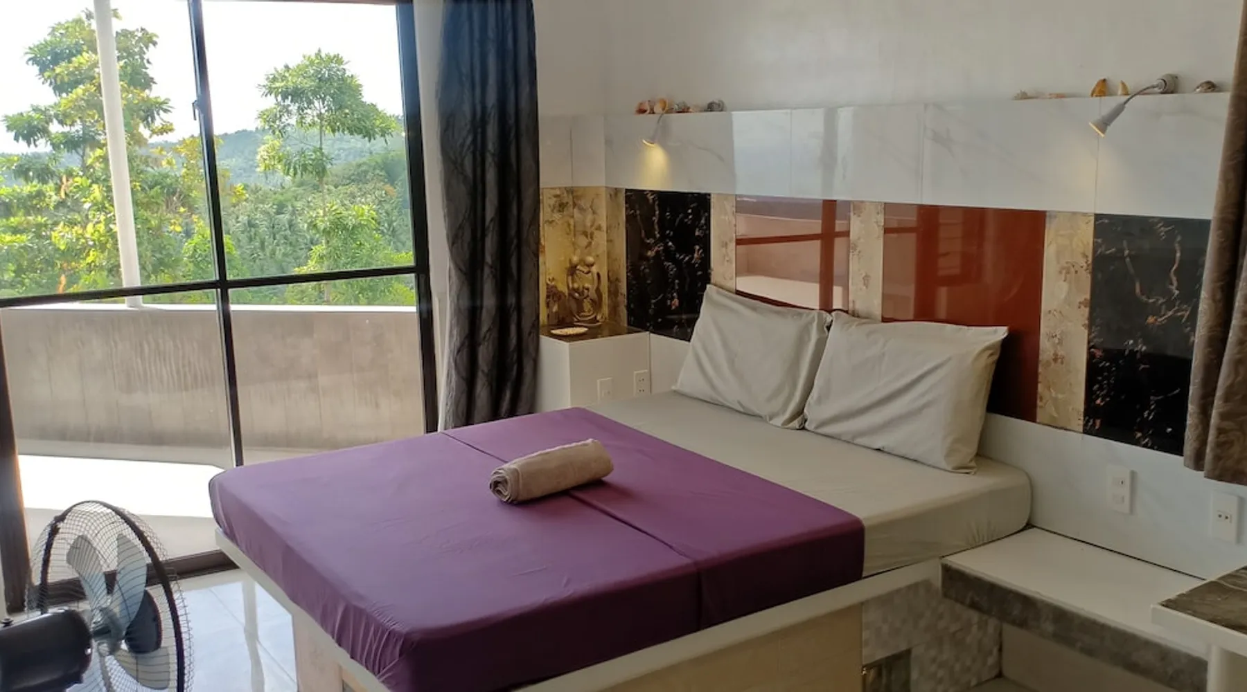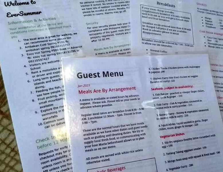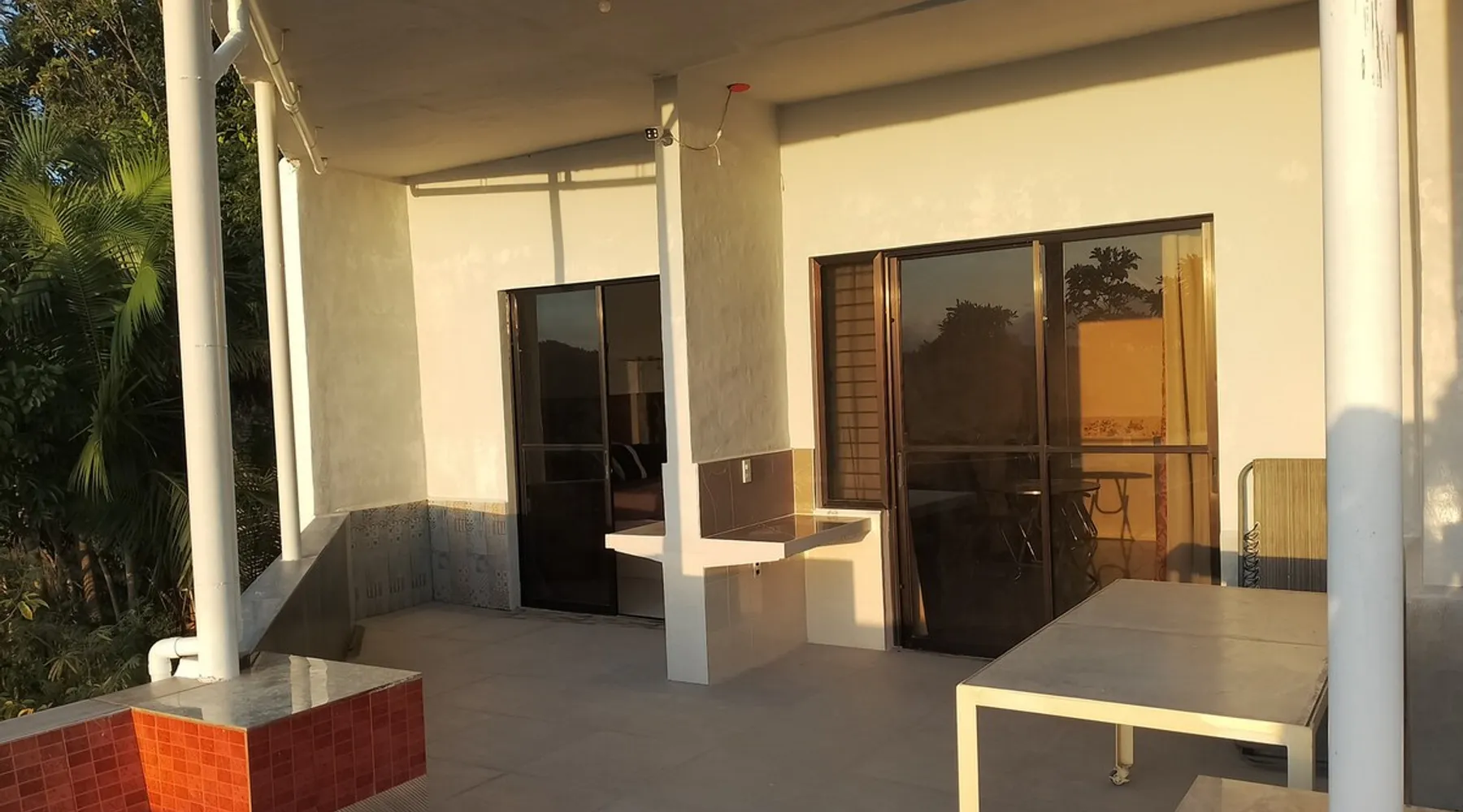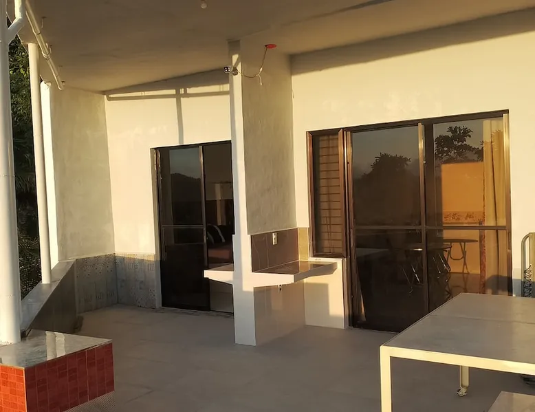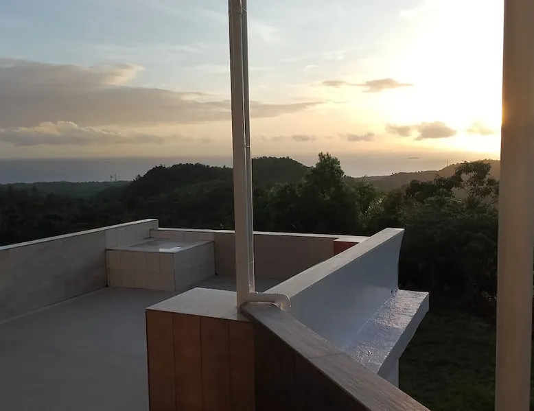 Wake up invigorated seeing the sunrise from the master bedroom bed. An elevated two- bedroom house with large private patios. Host family lives 100 meters away. We can shop, cook meals, guides transport. There are always choices of Motorcycle rental locally. The second bedroom is great for children but we supply a 4th folding bed for 4 adults. Solid work desks and the free included WIFI signal is fast. Escape here into serenity, warmth and nature, beaches 15 mins away. The space OVERSEAS GUESTS WELCOME Built with love and exceptional design to take in the natural space; the close massive rock, the distant sea, mountain and cliff views you will feel great here. The queen bed is built a little higher so you can see the sea and the sunrise! Use the kitchen or delivered food and you can eat outside every day! Huge views, you can be self sustained or have cheerful home help including delivered meals. To explore more it helps if you like scooter motorcycle transport? Also we hire motorbikes or bring your own transport. For long guests we provide 3000 real books and 6000 movies and music items online. Nearby to the hot spring and canyon, or the cold spring and river walks, or the beaches and seaside dining. ALL GUESTS WELCOME Staying in the Philippines is a great option, Visas can be renewed without leaving for 3 years or longer, so don’t buy your return ticket, just a cheap throw-away exit ticket to Singapore or Kuala Lumpur, as it is a requirement to have any exit ticket on arrival for those wanting flexible travel arrangements. Please come and stay to check out why we love this place, and feel the good reputation for safety in a peaceful respectful and traditional community. The elementary school is nearby and local children walk to school. We have been here 11 years so a wealth of experiences to draw from and discuss before renting. Ground floor is a private book archive and water tank. You get private use of the 1st floor Sunrise apartment and decks and WIFI. Breezy kitchen with entry doors north and south, the north side has another deck space . The solid beds are one queen size bed and a single bed, configurable to a lounge bed. The rooms have ample storage wardrobes and solid 60 cm by 120 cm desks with study lights in both. A new economical Panasonic 2HP quiet split air-con cools the whole place, the automatic night lighting, the lighting WIFI, Internet and security cameras and much more is solar battery supported. This elevated location can have cool nights, so little air-con is required once you acclimatize Catmon town is 5 km on a paved road and has ATMs, 7/11 and pizza delivery. LONG STAYERS You can use couriers to deliver so you can get almost anything from Shopee Lazada even Amazon. A choice of supermarkets in Sogod and Carmen, good doctors, medical labs in Sogod and a hospital. Day trip to Cebu city for further choices. A great farmers and wet-goods market each Thursday in Catmon-Daan is also a great choice. Kitchen has a 3 burner gas hob, filtered water, a larger refrigerator separate door freezer with ice maker. We use an LPG hot water system for reliable hot showers, as on grid electrical supply can be unpredictable especially after storms, and all lights and fans run on solar backup batteries. The building and private access road has night lighting and security cameras and a few of our dogs will check you occasionally. We have seasonal own grown cranberry, lemon, lime, jackfruit, Brazilian pawpaw (soursop,) custard apple, avocado and vegetables such as tomato, squash and sweet potatoes . We grow and can supply coconuts, you can have the pure fresh juice, the inside soft meats too, and of course bananas. Pets allowed and we supply a free gardener weekly to trim the trees and garden, and to bring you fresh coconuts and can recommend a housekeeper laundry person if you like. While not included in your private space, the storage area under contains some 3000 plus books you may rotate borrow. Unlimited Internet is included and the SMART company SIM phone signal we recommend for your personal phone as the signal from the rival Globe company fluctuates more. We have other rooms on the property you may book if you are intending to invite visitors, or if you wish to have a driver you can accommodate them comfortably nearby. Questions welcome thank you. Guest access Access to the rooftop area is by appointment provided you follow our safety precautions including no intoxication. The extended properties have up to hectares of private walking space. Lots of parking and playing space too. You get use of the whole area in front of the house. Questions welcome. Other things to note The property is located on a private road, some of the last few 10 meters are not paved, but it is rock. To the main national highway it is 6 km of paved roadway. Quite Hours. Please note we have some house rules regarding your peace and quite.
