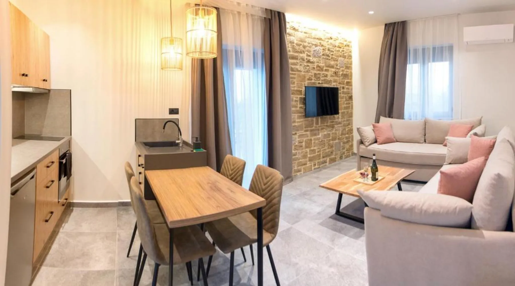 Beachfront Location: Aurelia Luxury Apartments in Lemnos offers direct beachfront access, a lush garden, and a spacious terrace. Guests enjoy free WiFi throughout the property. Comfortable Accommodations: Each apartment features air-conditioning, a private balcony or terrace, and a fully equipped kitchen. Additional amenities include a coffee machine, streaming services, and a work desk. Convenient Facilities: The property includes a coffee shop, family rooms, and free on-site private parking. Reception staff speak Greek and English, ensuring a pleasant stay. Nearby Attractions: Agios Ioannis Kaspakas Beach is a 9-minute walk away. The Archaeological Museum of Lemnos lies 5 mi from the apartment, while the Port of Limnos is 5.6 mi distant. Featuring a private entrance, this air-conditioned apartment is consisted of of 1 living room, 1 separate bedroom and 1 bathroom with a shower and a hairdryer. The fully equipped kitchen features a stovetop, a refrigerator, kitchenware and an oven. Boasting a terrace with sea views, this apartment also offers soundproof walls and a flat-screen TV with streaming services. The unit offers 3 beds.