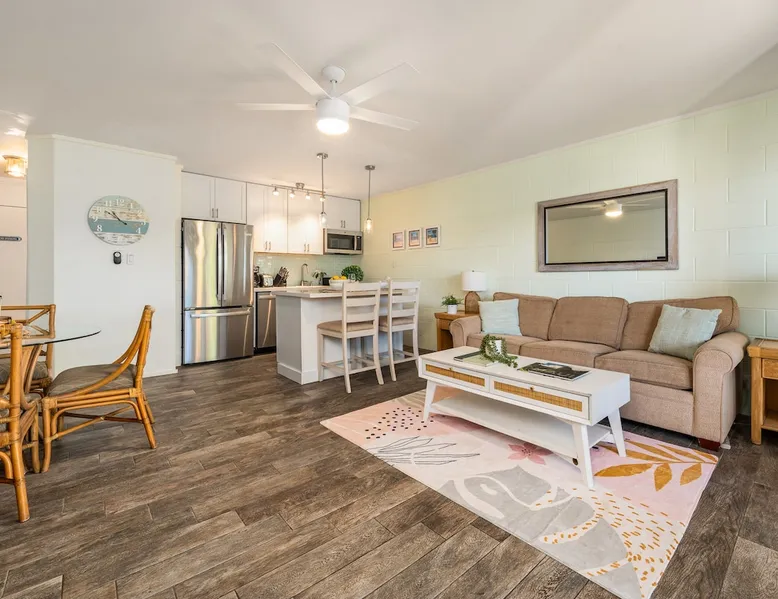 Maui Sands Seaside 713 Charming One Bedroom Condo With Amazing Views Just Steps from the Ocean The space FREE daily activities included with your stay value up to $570! Complimentary admission, every day of your stay*: Whale Watch (seasonal), Dinner Sunset Sail, Snorkel Sail, Alpaca Farm Tour, Pineapple Farm Tour, and All Day Electric Bike Rental. (W1) *One ticket per activity per day. Additional details provided after confirmed booking. Steps from the ocean, Maui Sands Seaside 713 is on the second floor and provides a quiet, peaceful retreat. From the lanai are breathtaking sunrises, sunsets and views of the ocean. You will be lulled to sleep each night by the sound of ocean waves. Three coral reefs are parallel to the shore in front of the building creating a perfect spot for snorkeling and swimming. This condo is conveniently located just a short drive to golf, shops, water activities, restaurants, luaus and entertainment. Please note: The sofa sleeper is currently inoperable. A new one has been ordered and is expected to arrive in February. A comfortable air mattress is provided in the meantime. Please note: The sofa sleeper is currently inoperable since Oct 16,2025. A new one has been ordered and is expected to arrive in February. A comfortable air mattress is provided in the meantime. Condo Highlights: -1 Bedroom, 1 Bathroom, Sleeps 4 guests -Window AC in living room -Private lanai with ocean view and outdoor dining table for 4 -King size bed in the bedroom -Sofa sleeper broken; replacement ordered. An air mattress is available as a temporary substitute -Ceiling fans throughout -Flat-screen TV in living room and 32” Smart TV in the bedroom -Fully equipped, newly remodeled kitchen (April 2024) -Indoor dining table for 4 -Newly renovated bathroom with walk-in shower -In-unit washer/dryer Maui Sands Seaside is a classic little complex that is set right on the ocean in West Maui. You will be just a few steps from your door to the ocean. You will be conveniently located within a 5-minute drive from a grocery store, shops, and dining. Kaanapali and Kapalua will be just a short drive away. Complex Highlights: -Direct oceanfront complex -BBQ grill area -Chaise lounges on a large grassy area for relaxation -On-site coin operated washer/dryer -Designated parking spot included -No elevator No Mail Allowed: We are unable to receive USPS mail, including letters and packages at this rental. For medical-related items, please contact our Reservations Team for assistance. Minimum age of primary renter: 25 We provide the following in every unit: -First Aid Kit -High Speed Internet -Linens and towels -Iron and ironing board -Hair dryer -Beach towels, Beach chairs, and Hard sided cooler -Starter Kit: Starter supply of shampoo, conditioner, body wash, lotion, hand soap, dish soap, laundry detergent, dishwasher tabs, toilet paper, paper towels, trash bags *We don’t provide beach umbrellas, toys, or gears, such as snorkeling, due to safety, health, and hygiene risks. BEACHES & CRITTERS: The beach size in Hawaii varies month to month due to weather, heavy surf, strong currents, and tides. Due to Maui’s rural setting, you may experience the occasional rooster, as well as harmless geckos. Geckos are friendly, eat insects, and are considered good luck in Hawaii. Please don’t kill them. Although the HOA schedules regular professional pest control services, pests such as ants, roaches and rodents simply cannot be completely controlled in the tropics. Maui is in a tropical climate. If our guest spot more than the normal expected pests, we always make our best efforts to contact and work with the HOA to minimize your interactions with these pests. Any contact with such pests within or outside the unit does not constitute a breach of this Agreement or give Guest any right to any refund or rental adjustment. **We make no guarantee that properties adjacent to the Unit will be free from disturbances, including but not limited to noise or inconvenience from construction, traffic or other guests or neighbors. Any such disturbance shall not constitute a breach of this Agreement or give Guest any right to any refund or rental adjustment. By booking your stay with us, you accept that Host is not liable for any inconveniences arising from any temporary defect or stoppage in supply of water, electricity, air conditioning or plumbing that is beyond their control. Host is not liable for any loss or damage to Tenants’ personal property caused by weather conditions, natural disasters, or other events beyond their control. Tenants accept that the cable and internet service at the Rental can be sporadic and unreliable at times, and Tenant shall not be entitled to any refund of the rental fee in the event either of these services are unavailable or not operating properly during Tenants’ stay Registration Details 390010020181, TA-139-745-5360-01