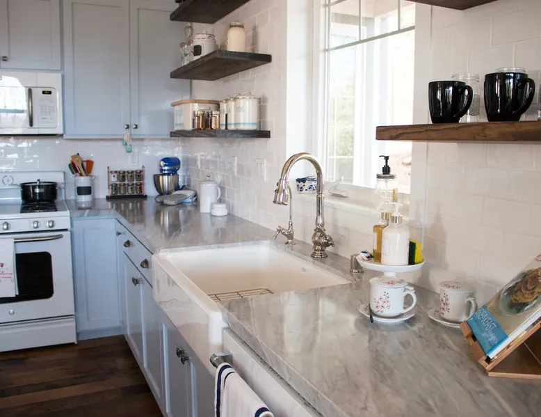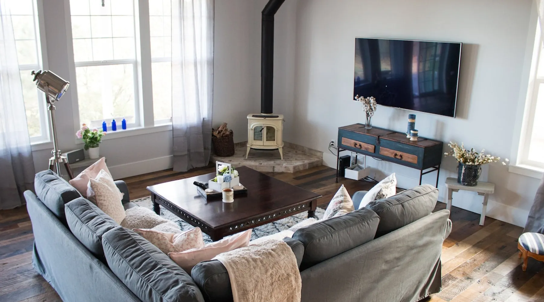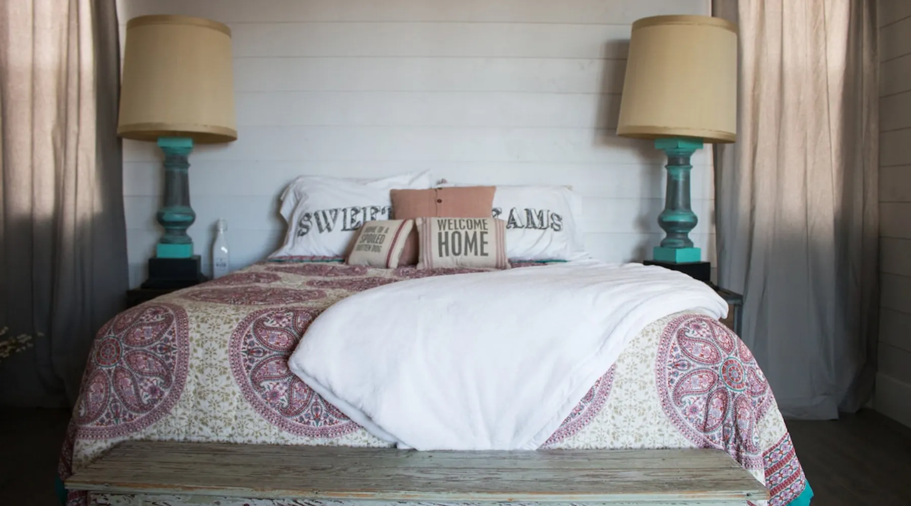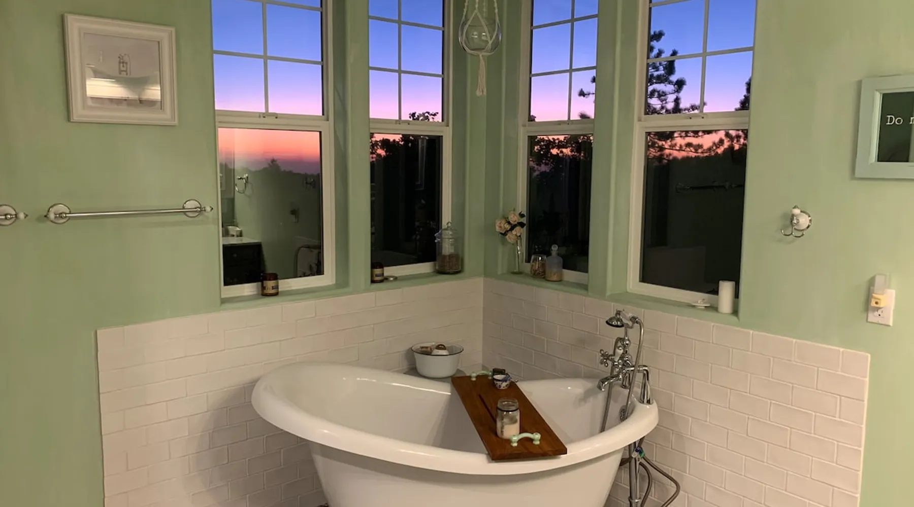 See our home featured in February 2018 San Diego Magazine. Search internet with quotes: "Inside an Idyllic Julian Farmhouse" (AirBnB doesn't allow the link). The Crooked Pine Farmhouse is a peaceful escape only 3 blocks from Main St, but atop a steep hill with amazing views and isolation from the crowds of downtown Julian. Perfectly positioned with beautiful mountain/desert views from the front, and ocean views from the 2nd floor deck (on a clear day)! Built in 2017, this property sleeps 6-8. The space The Crooked Pine Farmhouse is a peaceful escape only 3 blocks from town, but atop a steep hill with amazing views and isolation from the crowds of downtown Julian. The acre of land is perfectly positioned with beautiful mountain views from the front, and actual ocean sunset views from the 2nd floor deck (on a clear day)! It is a charming farmhouse style home, 2000 square feet with reclaimed barnwood floors from Pennsylvania, porcelain tile floors from France, vaulted ceilings, and shiplap walls. It has three beautifully furnished bedrooms, two full bathrooms(both with showers and tubs), kitchen with all brand new appliances, rustic and inviting dining room, living room with large screen TV (internet enabled for your Netflix account) and cable, mudroom, small reading nook (with hundreds of books to borrow) and upstairs deck. The wraparound porch is equipped with Adirondack chairs and a porch swing from which to enjoy the amazing sunrise or nighttime star gazing. We have plenty of both outdoor and indoor games to enjoy in the evenings when the town shuts down including a hand shuffleboard table and big jenga! The acre of land provides plenty of space and trees. The area surrounding the house has been tastefully landscaped with terrain, stone, and plants that are native to Julian in order to maintain its authenticity. The secluded upstairs master bedroom is an escape in itself. Very spacious room with a King bed, and with a large antique desk to work (if you must), a window seat to relax with beautiful mountain and sunrise views. There is a gas fireplace with seating area as well. Also plenty of extra room to do yoga with a view. The reclaimed barn wood sliding door leads to a a private bath with claw foot tub and separate shower room and double marble sink. The house is furnished with antiques and modern farmhouse style decor, as well as high end finishes, mattresses, linens, bedding, etc. It is equipped with heat (from both heater and wood burning stove), AC, Wireless Internet, Cable TV, full kitchen appliances and all of the details you would need to cook, bake pies, play games, read, picnic, hike, yoga, wireless speakers, etc. High end amenities, coffee, and cooking essentials also provided. This is truly a special place, we have worked very hard over the last 2 years building and designing and decorating what we believe is the utmost escape. The serenity and seclusion and silent evenings and mornings are amazing, but being able to walk just a couple of blocks for shopping, coffee, dining, wine and beer tasting, etc. is extremely convenient. Due to previous damage, please seek approval for small children prior to booking. Please check our San Diego listing for more reviews. You can search “cozy cottage steps to beach and bay.” Look for our Farmhouse and our story in the February 2018 issue of San Diego Magazine! Please note that there are security cameras on premises. There are no cameras inside! Other things to note It is regret that we feel like we have to say this: due to prior disrespectful guests and damage, if you show up with any pets without prior authorization from us, you will be asked to leave immediately without any refund.