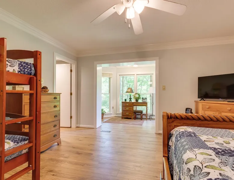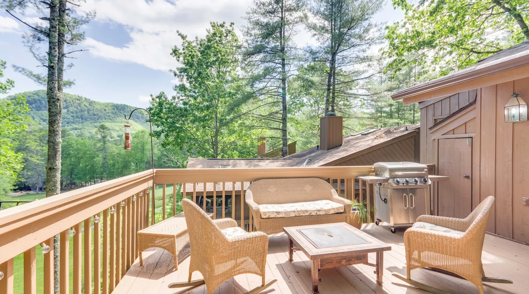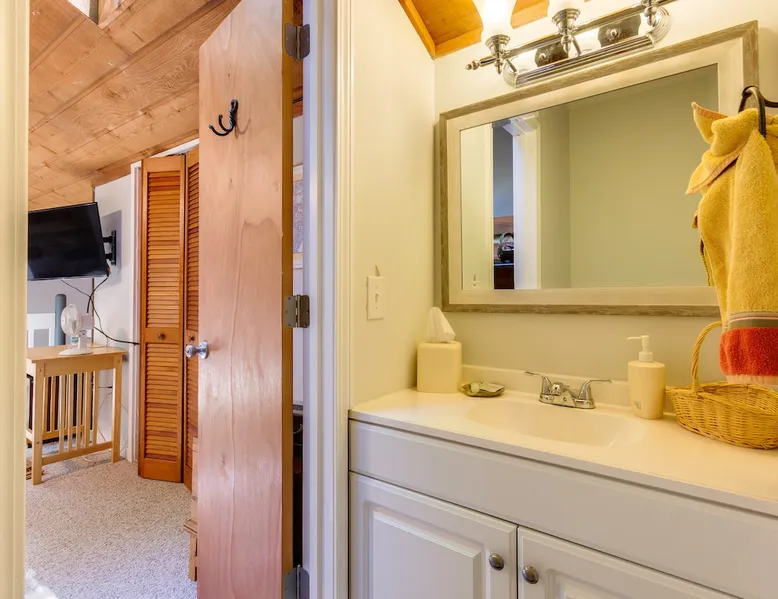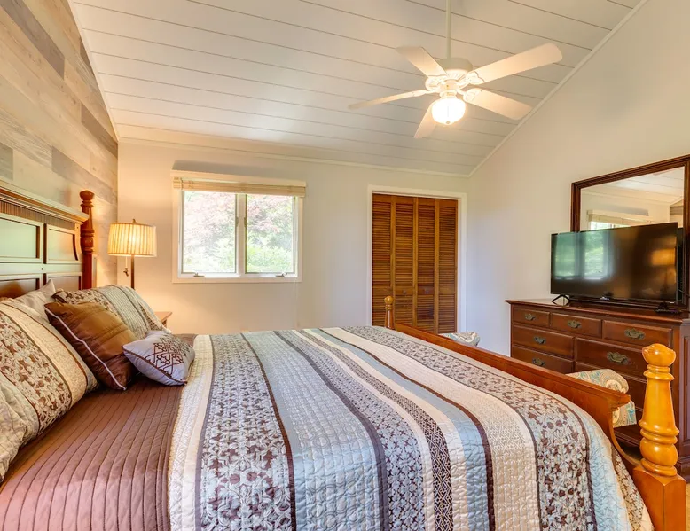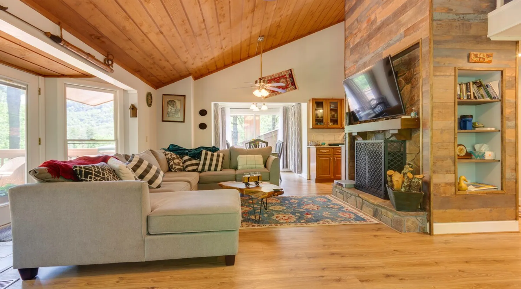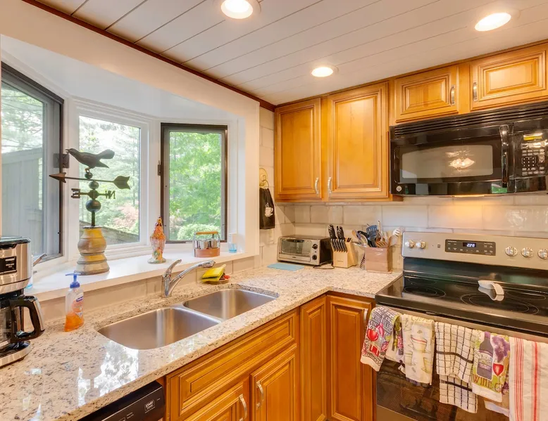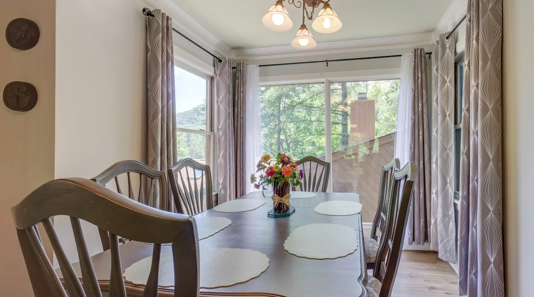 Mountain Villa #6 is located in a resort area, with great amenities like golf course, ski resort, club house with covered heated pool and playing area featuring arcades, pool table, and mini golf. The beach at the lake it’s just a short walk and you can enjoy the nature or kayak your way through the lake. We fell in love with this area when we spend our own vacations. We decided to buy a house not only for our enjoyment but also to give other people and their families the same opportunity. The space The house offers a big living room area with a wooden fire place, and a 65” tv, comfortable sectional and two recliner chairs. In this main floor you will also find a washer and dryer. The kitchen, fully renovated has everything it’s needed if you wish to cook, there is also a grill available for any grill lovers out there. Dining room is big and spacious for any big family to enjoy time gathered together. This home features a master bedroom that can accommodate a couple, downstairs bedroom with a queen size and a bunk bed that can accommodate a family of 4. This room features also a beautiful spa bath tub, shower and separate bathroom/powder room. There is also a stackable washer and dryer for your washing needs in one of the closets. The 3rd floor is a loft area where it can accommodate three adults or four children, A half bathroom. You can also find a lot of games so that your little ones can spend time playing and bonding with their siblings or their cousins. Every bedroom features a TV that you can enjoy in the evenings. you can enjoy a cup of coffee/tea/wine in the porch overlooking the golf course and the mountains that offer a beautiful and magnificent view no matter what season.
