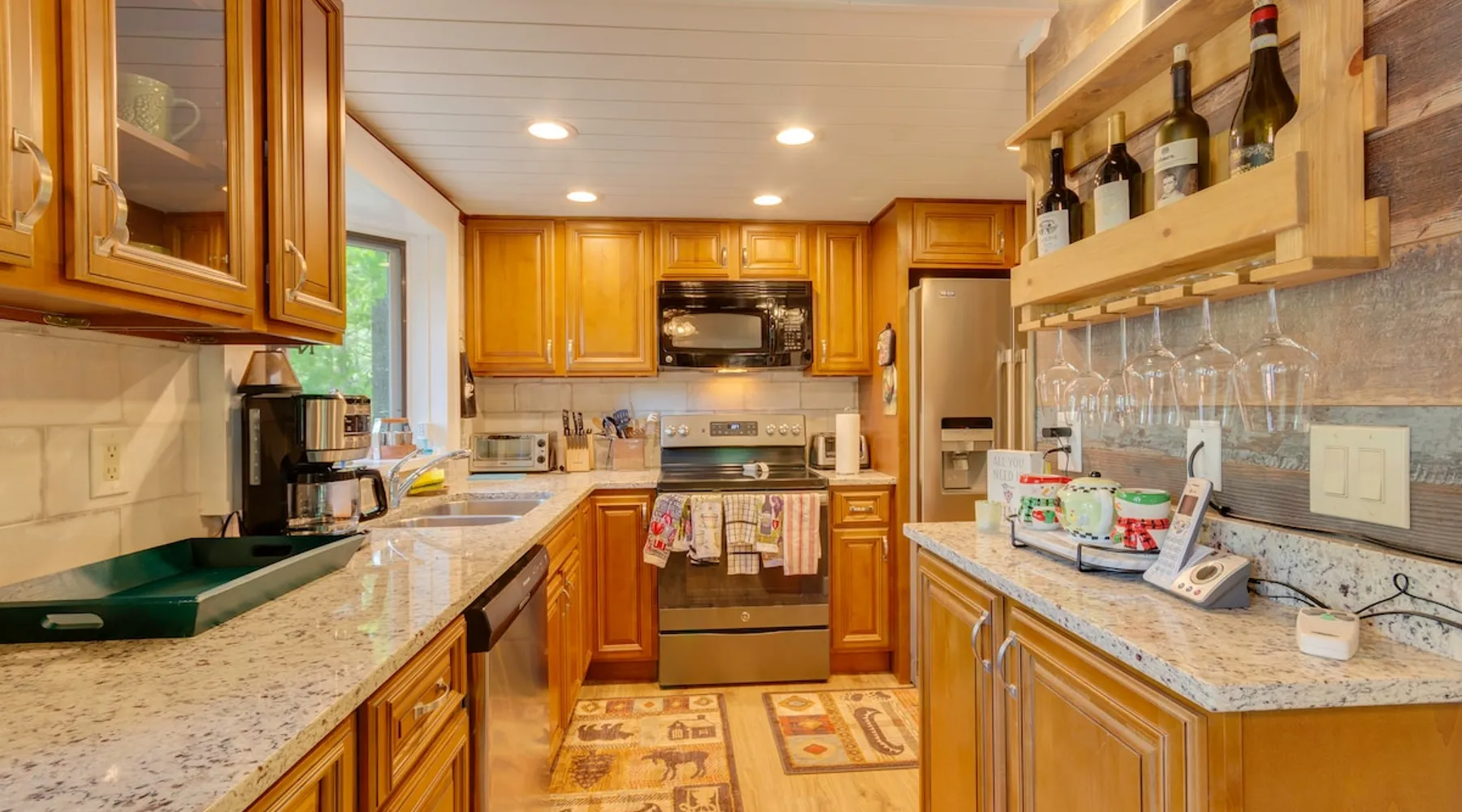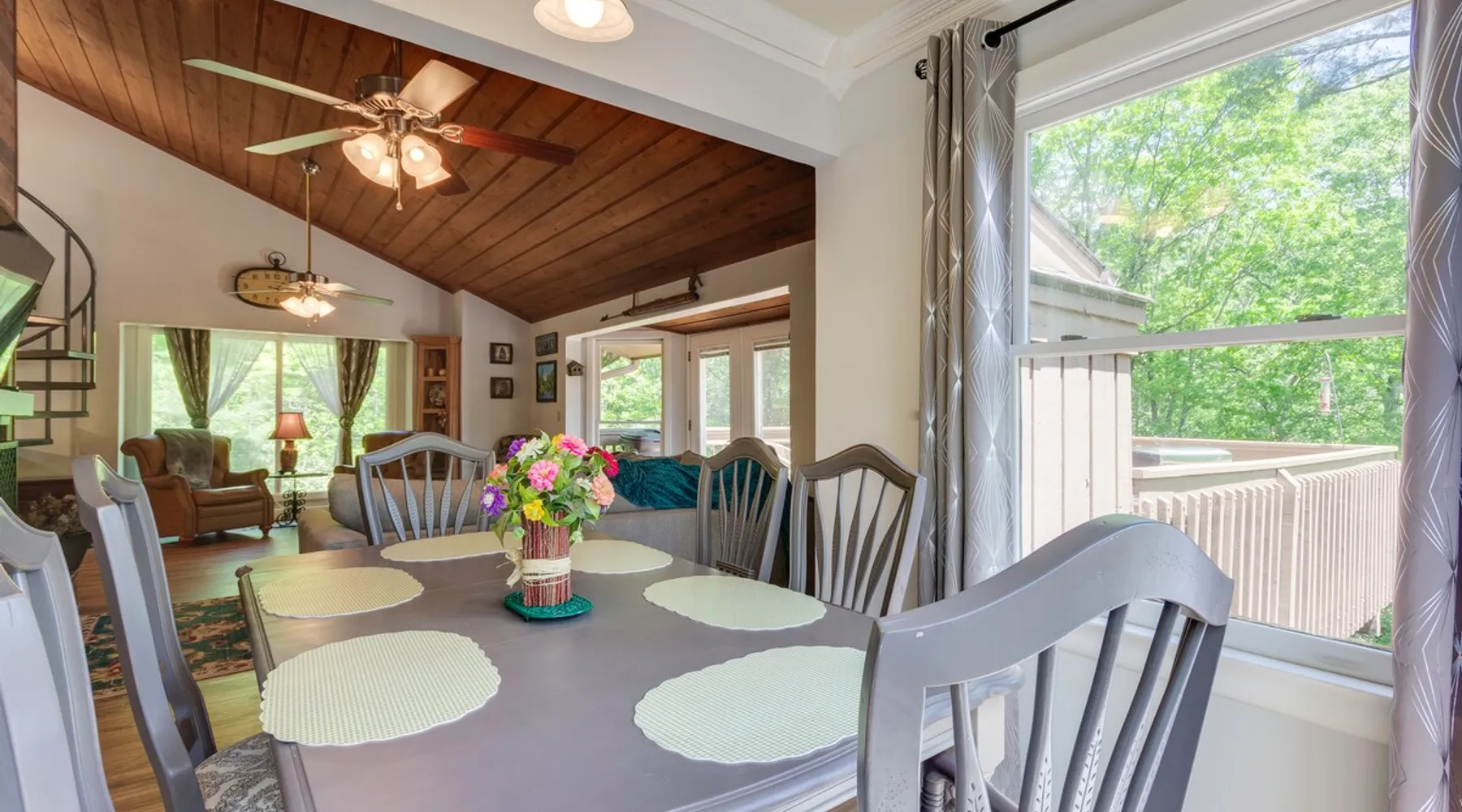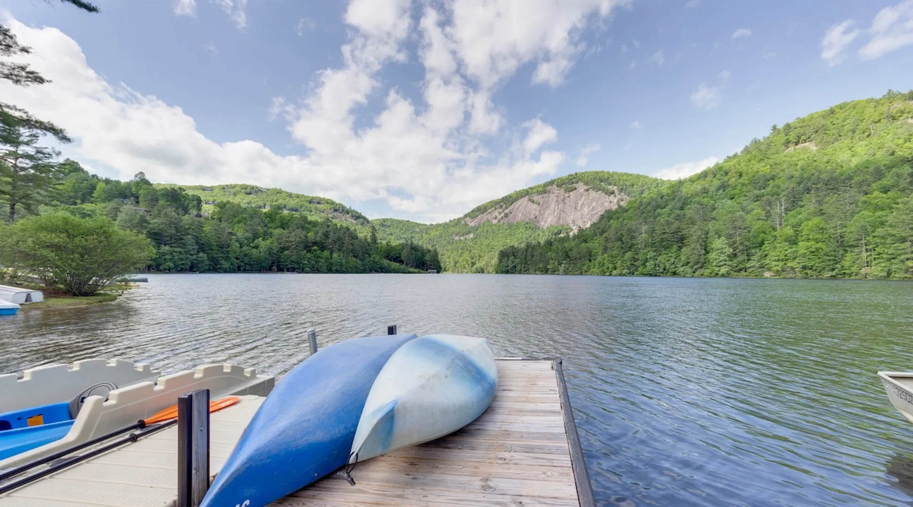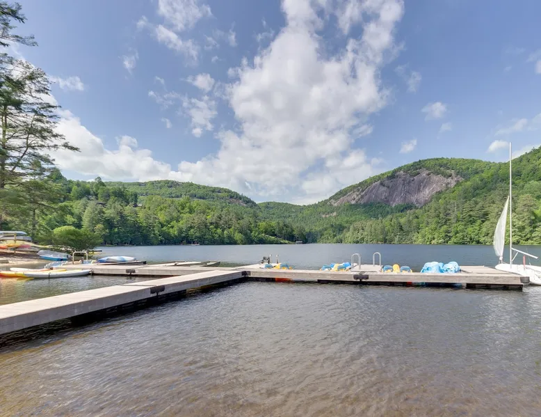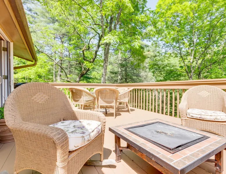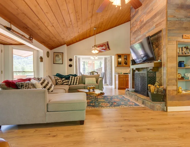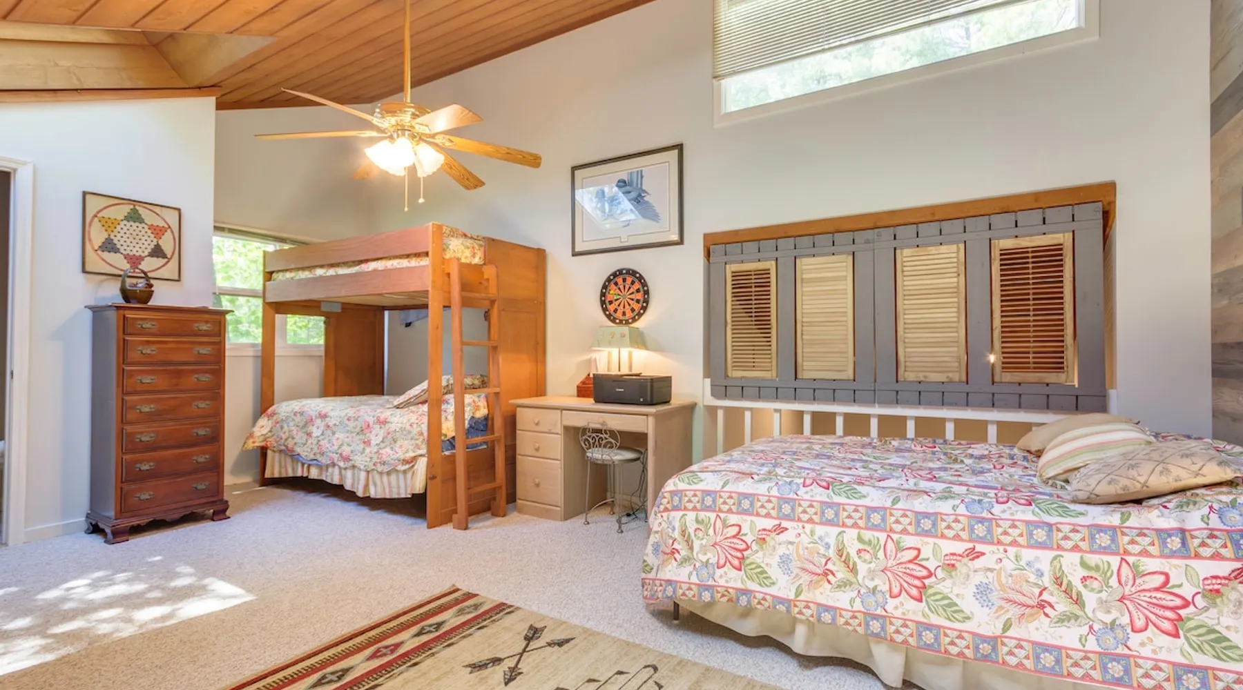 Mountain Villa #6 is located in a resort area, with great amenities like golf course, ski resort, club house with covered heated pool and playing area featuring arcades, pool table, and mini golf. The beach at the lake it’s just a short walk and you can enjoy the nature or kayak your way through the lake. We fell in love with this area when we spend our own vacations. We decided to buy a house not only for our enjoyment but also to give other people and their families the same opportunity. The space The house offers a big living room area with a wooden fire place, and a 65” tv, comfortable sectional and two recliner chairs. In this main floor you will also find a washer and dryer. The kitchen, fully renovated has everything it’s needed if you wish to cook, there is also a grill available for any grill lovers out there. Dining room is big and spacious for any big family to enjoy time gathered together. This home features a master bedroom that can accommodate a couple, downstairs bedroom with a queen size and a bunk bed that can accommodate a family of 4. This room features also a beautiful spa bath tub, shower and separate bathroom/powder room. There is also a stackable washer and dryer for your washing needs in one of the closets. The 3rd floor is a loft area where it can accommodate three adults or four children, A half bathroom. You can also find a lot of games so that your little ones can spend time playing and bonding with their siblings or their cousins. Every bedroom features a TV that you can enjoy in the evenings. you can enjoy a cup of coffee/tea/wine in the porch overlooking the golf course and the mountains that offer a beautiful and magnificent view no matter what season.