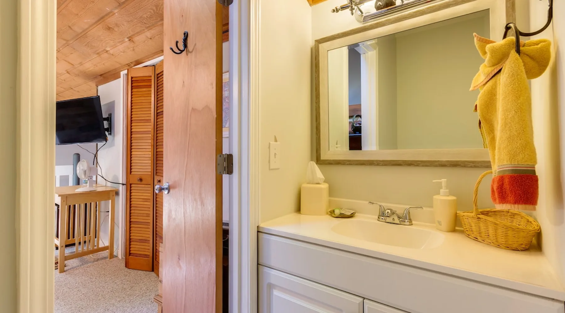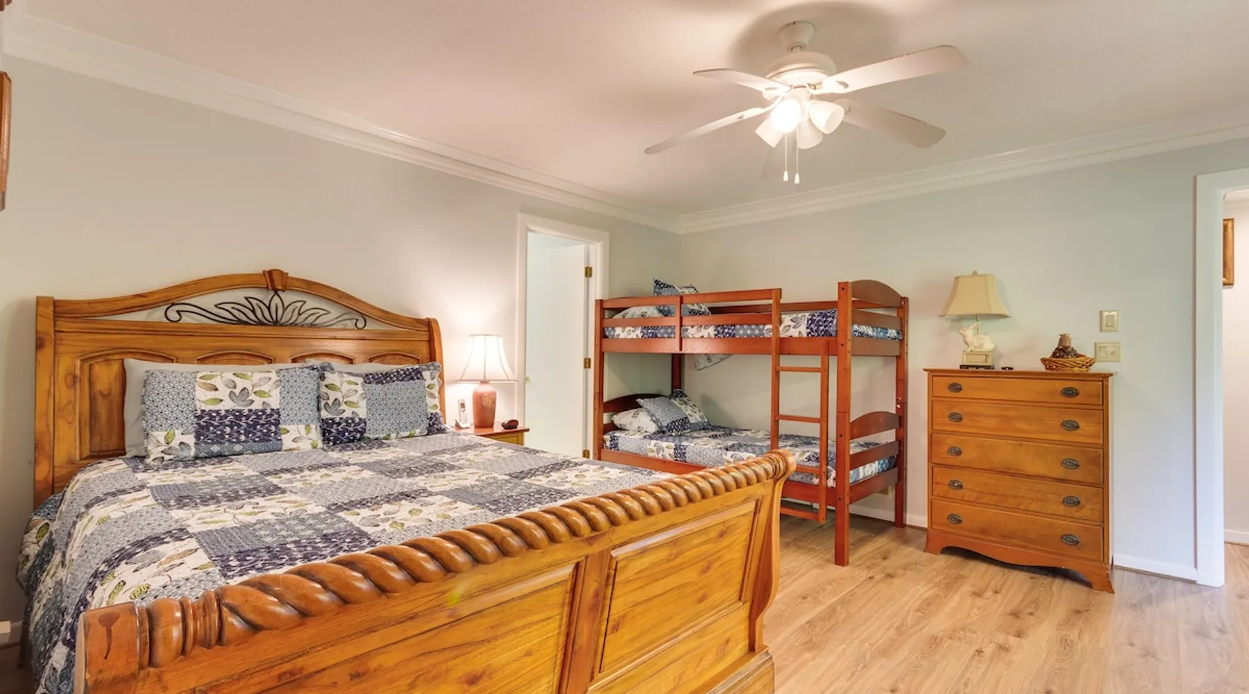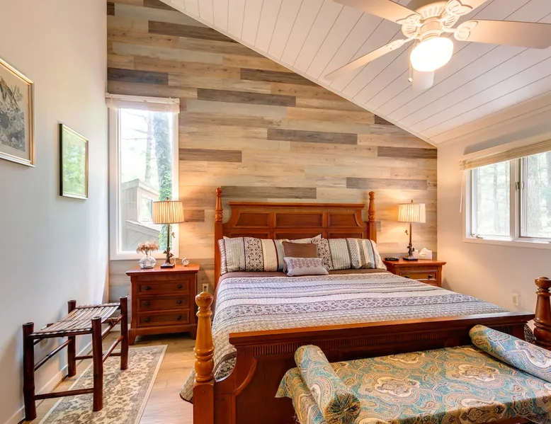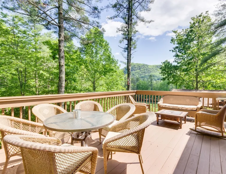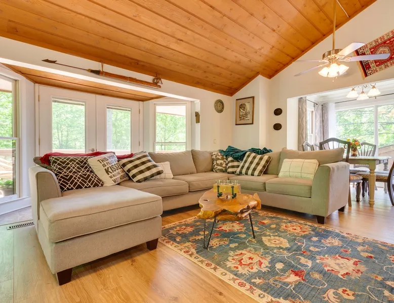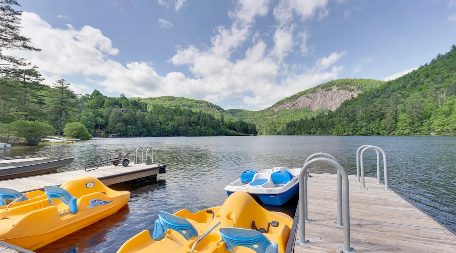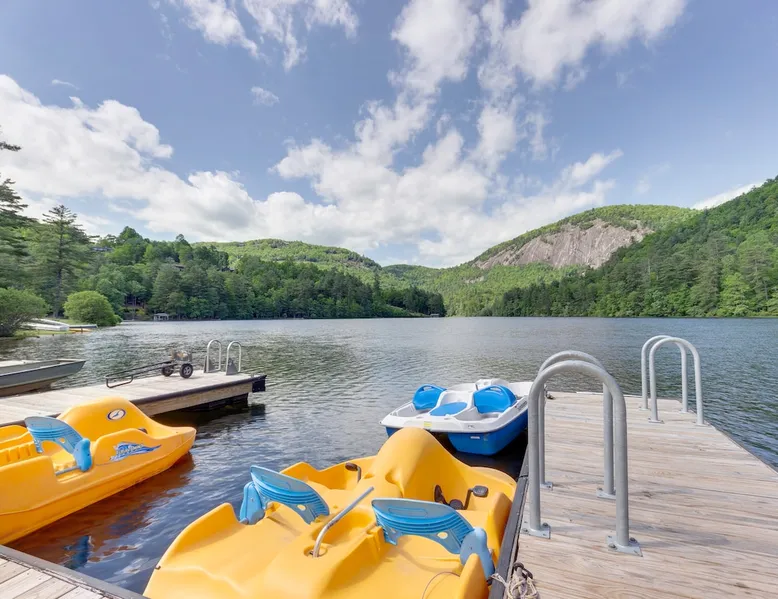 Mountain Villa #6 is located in a resort area, with great amenities like golf course, ski resort, club house with covered heated pool and playing area featuring arcades, pool table, and mini golf. The beach at the lake it’s just a short walk and you can enjoy the nature or kayak your way through the lake. We fell in love with this area when we spend our own vacations. We decided to buy a house not only for our enjoyment but also to give other people and their families the same opportunity. The space The house offers a big living room area with a wooden fire place, and a 65” tv, comfortable sectional and two recliner chairs. In this main floor you will also find a washer and dryer. The kitchen, fully renovated has everything it’s needed if you wish to cook, there is also a grill available for any grill lovers out there. Dining room is big and spacious for any big family to enjoy time gathered together. This home features a master bedroom that can accommodate a couple, downstairs bedroom with a queen size and a bunk bed that can accommodate a family of 4. This room features also a beautiful spa bath tub, shower and separate bathroom/powder room. There is also a stackable washer and dryer for your washing needs in one of the closets. The 3rd floor is a loft area where it can accommodate three adults or four children, A half bathroom. You can also find a lot of games so that your little ones can spend time playing and bonding with their siblings or their cousins. Every bedroom features a TV that you can enjoy in the evenings. you can enjoy a cup of coffee/tea/wine in the porch overlooking the golf course and the mountains that offer a beautiful and magnificent view no matter what season.