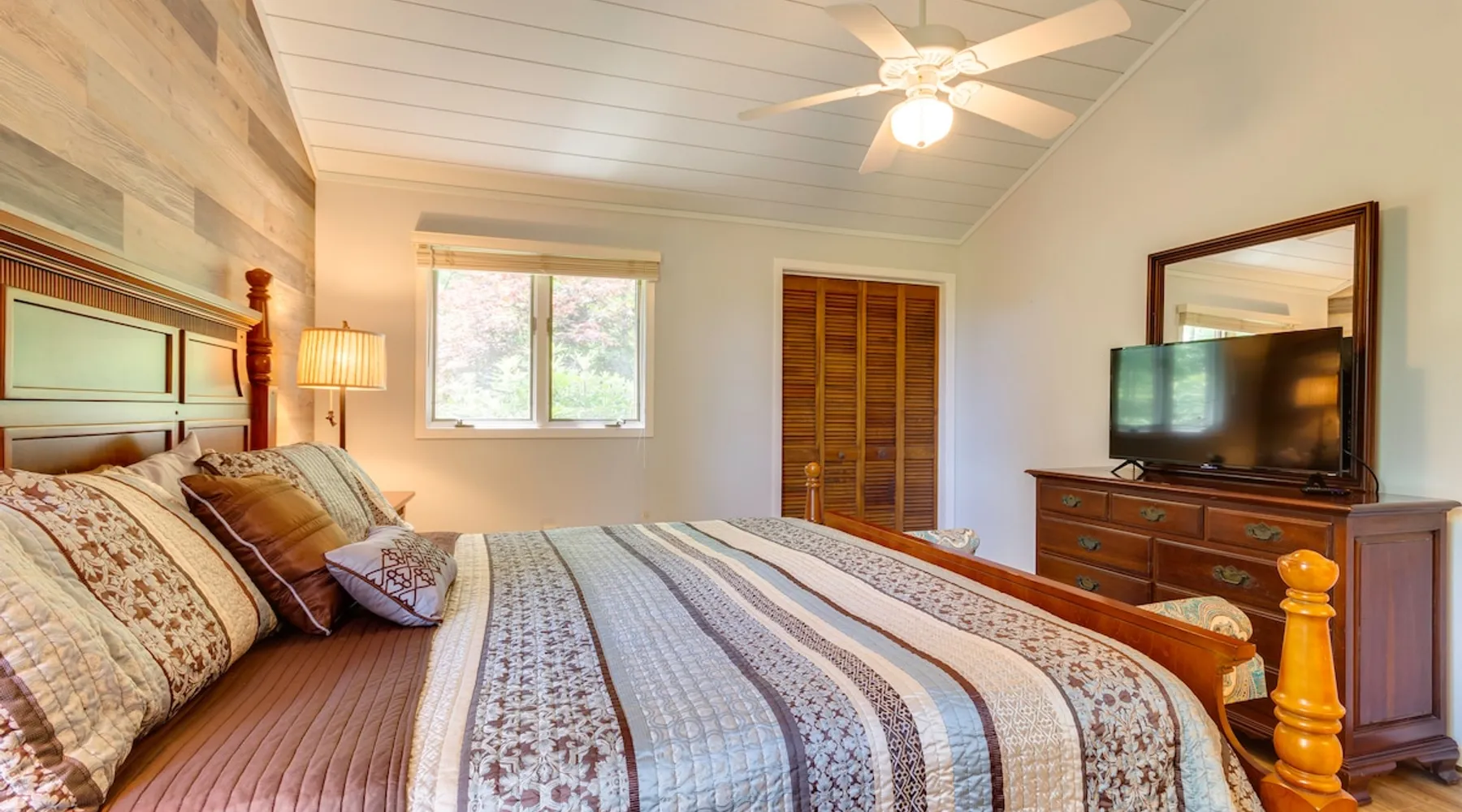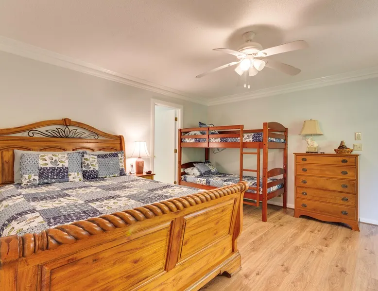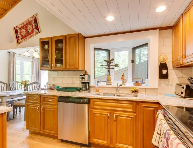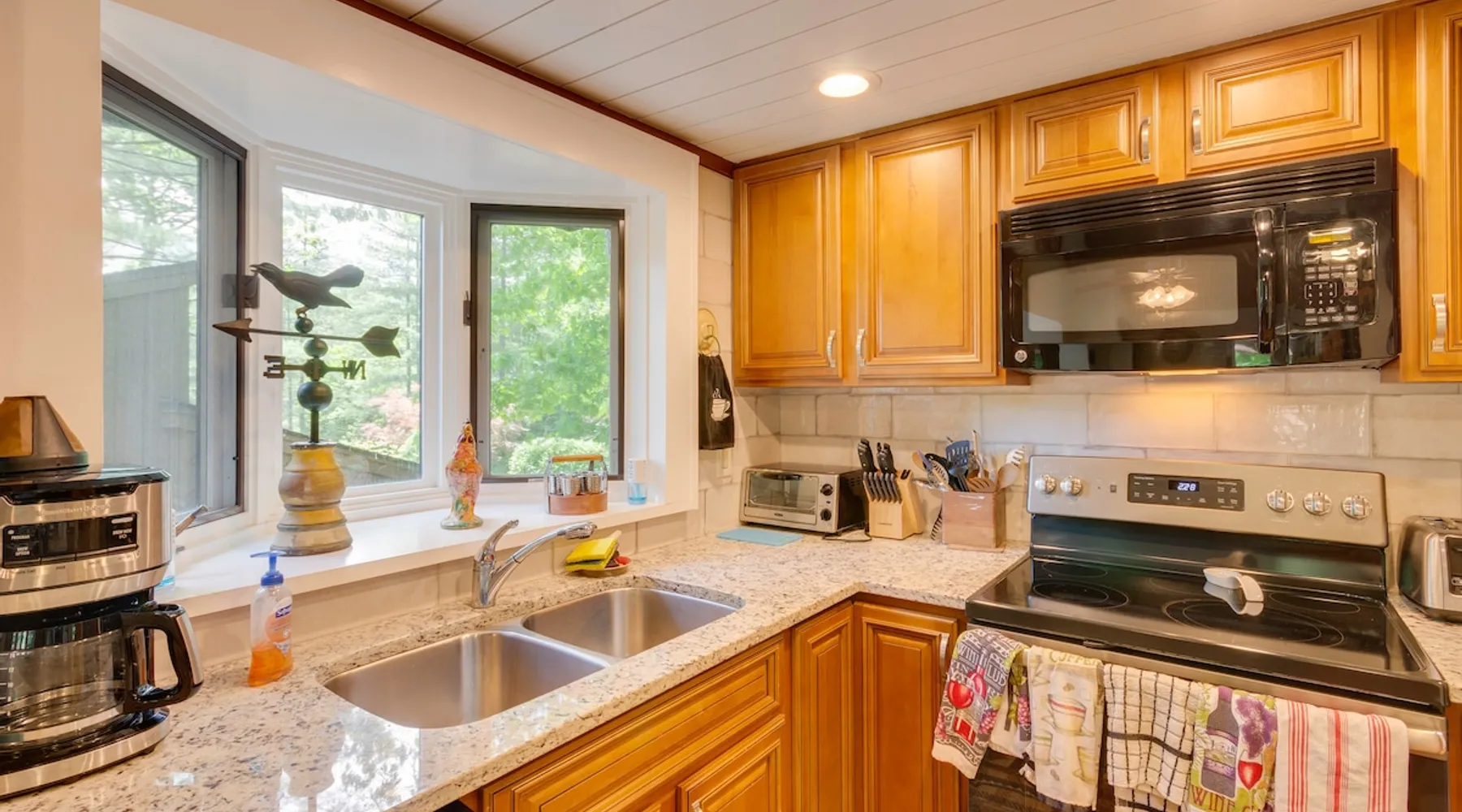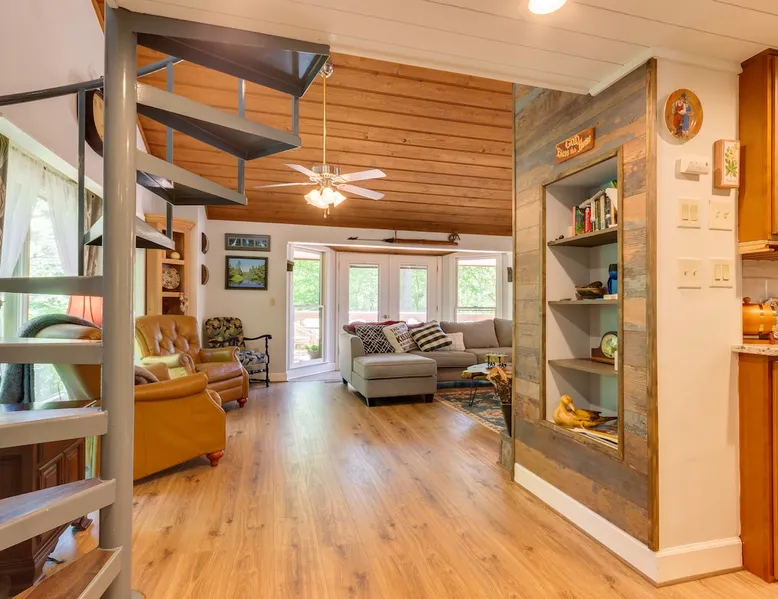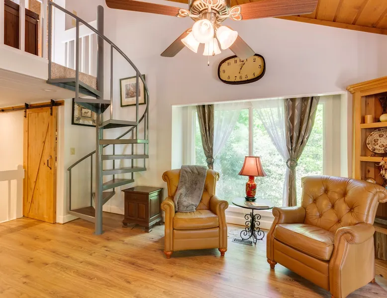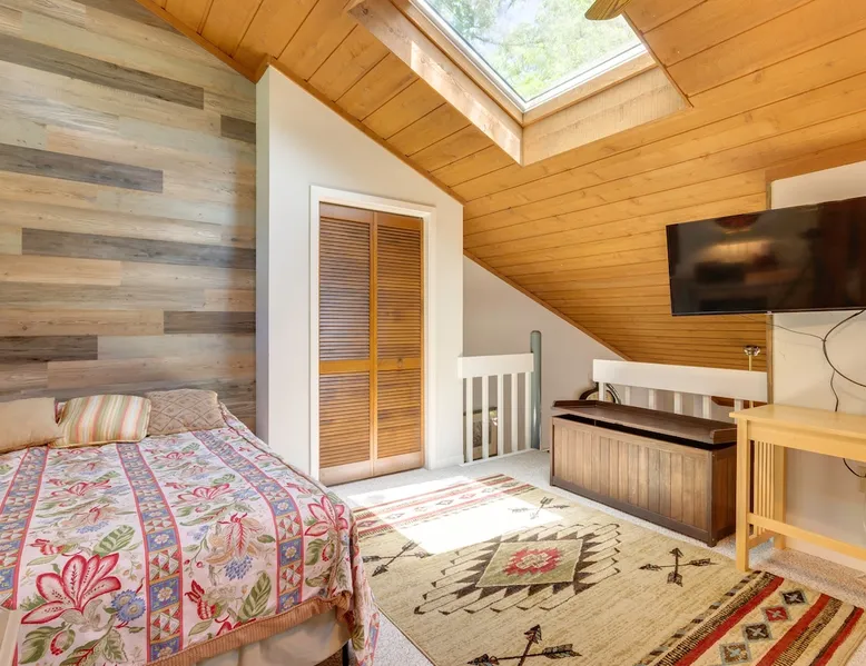 Mountain Villa #6 is located in a resort area, with great amenities like golf course, ski resort, club house with covered heated pool and playing area featuring arcades, pool table, and mini golf. The beach at the lake it’s just a short walk and you can enjoy the nature or kayak your way through the lake. We fell in love with this area when we spend our own vacations. We decided to buy a house not only for our enjoyment but also to give other people and their families the same opportunity. The space The house offers a big living room area with a wooden fire place, and a 65” tv, comfortable sectional and two recliner chairs. In this main floor you will also find a washer and dryer. The kitchen, fully renovated has everything it’s needed if you wish to cook, there is also a grill available for any grill lovers out there. Dining room is big and spacious for any big family to enjoy time gathered together. This home features a master bedroom that can accommodate a couple, downstairs bedroom with a queen size and a bunk bed that can accommodate a family of 4. This room features also a beautiful spa bath tub, shower and separate bathroom/powder room. There is also a stackable washer and dryer for your washing needs in one of the closets. The 3rd floor is a loft area where it can accommodate three adults or four children, A half bathroom. You can also find a lot of games so that your little ones can spend time playing and bonding with their siblings or their cousins. Every bedroom features a TV that you can enjoy in the evenings. you can enjoy a cup of coffee/tea/wine in the porch overlooking the golf course and the mountains that offer a beautiful and magnificent view no matter what season.