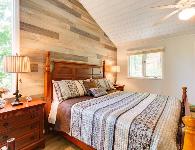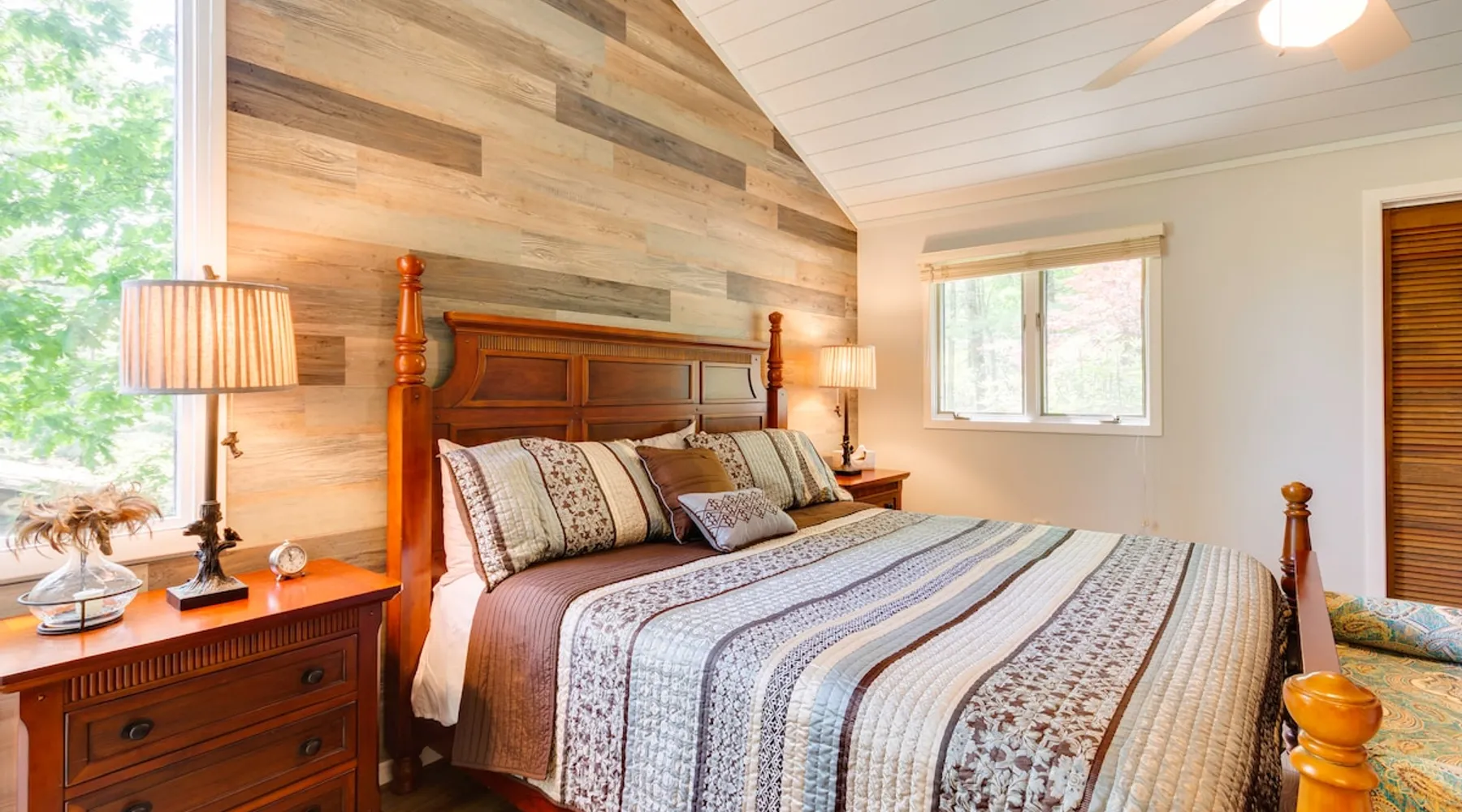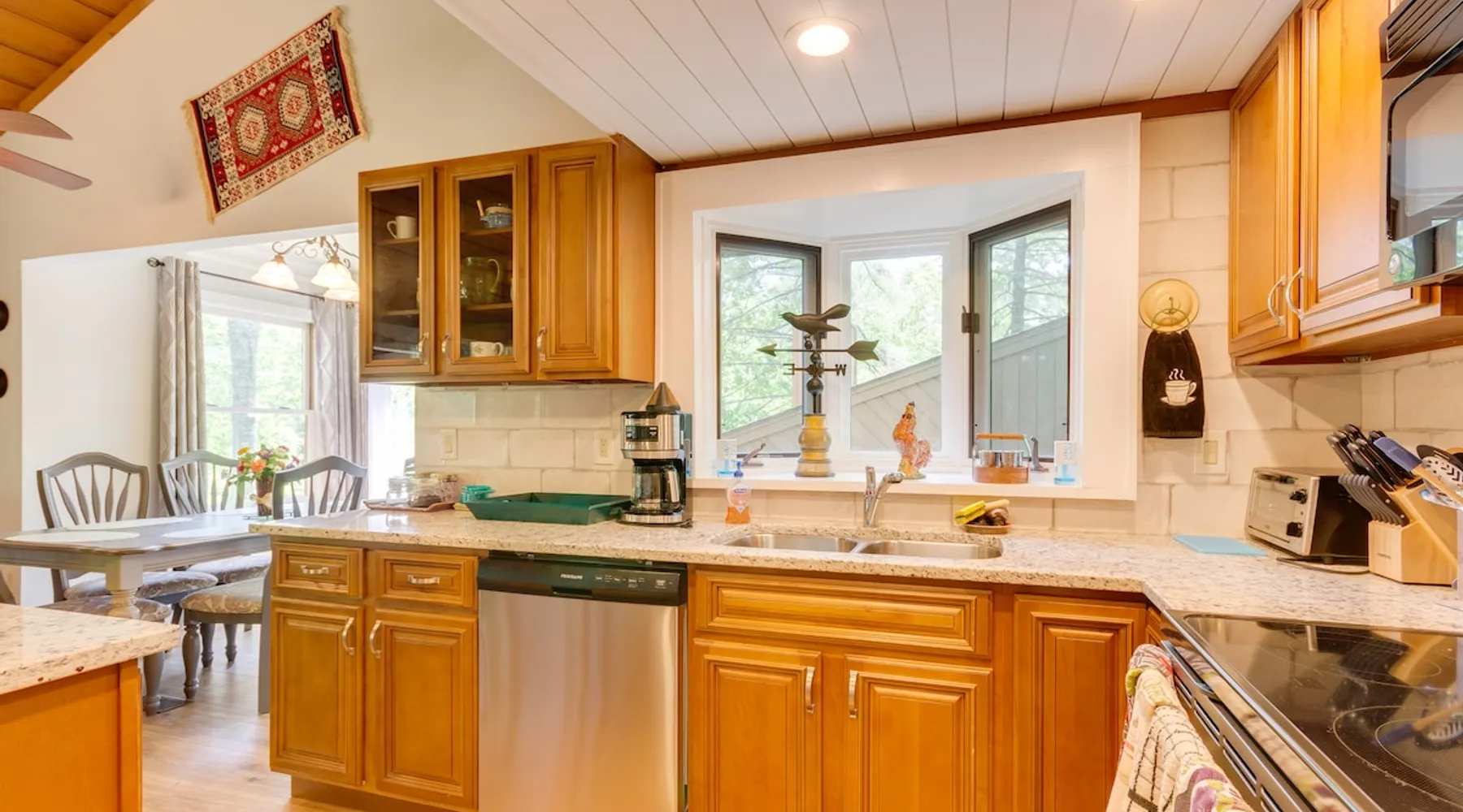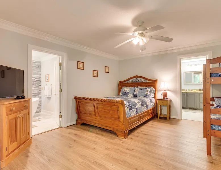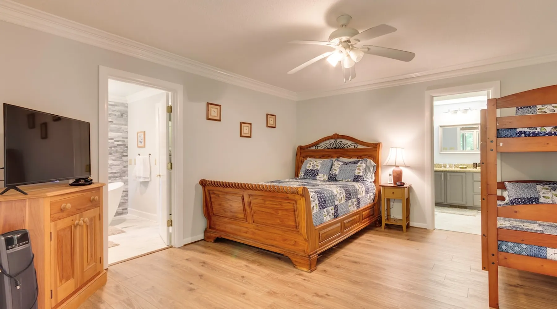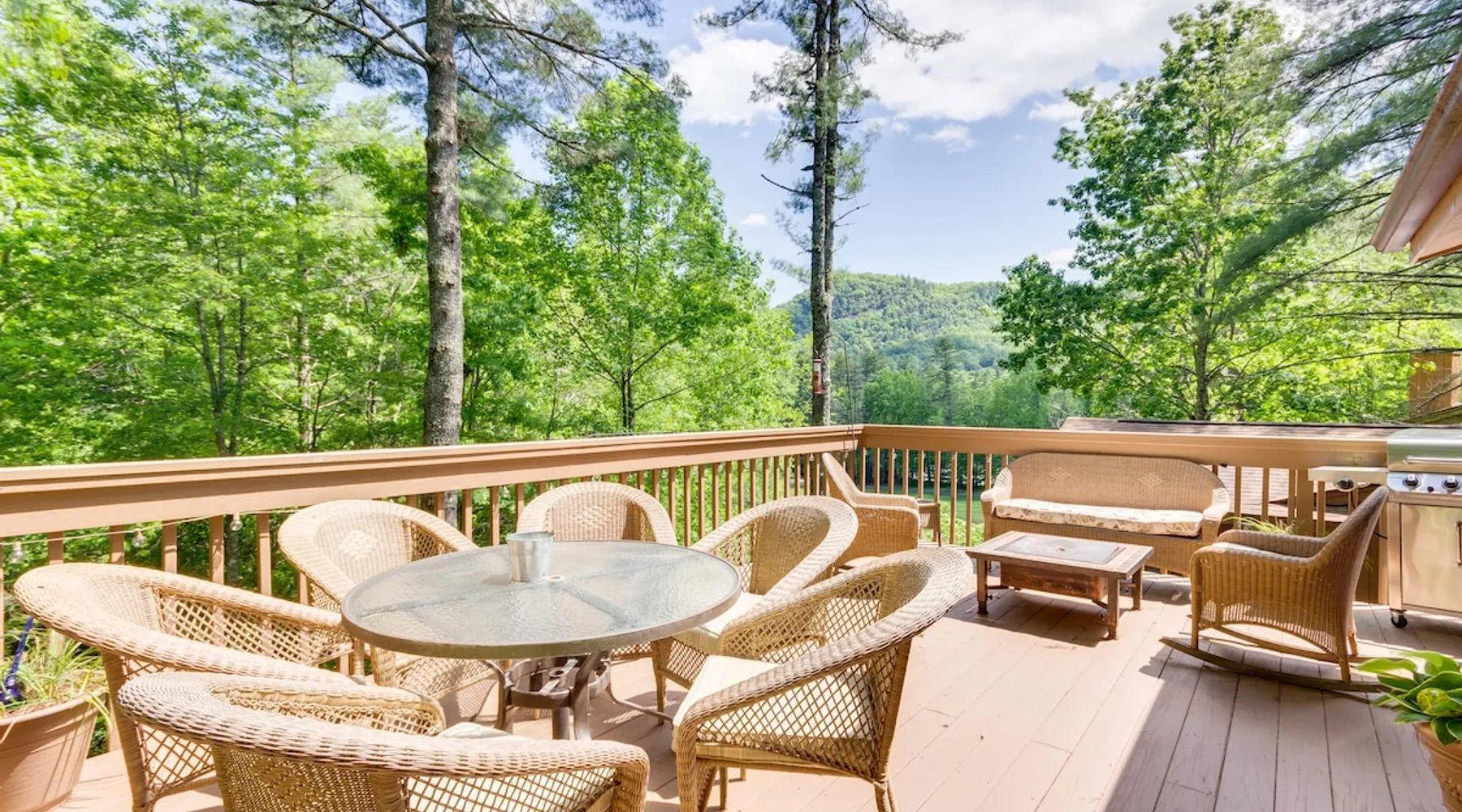 Mountain Villa #6 is located in a resort area, with great amenities like golf course, ski resort, club house with covered heated pool and playing area featuring arcades, pool table, and mini golf. The beach at the lake it’s just a short walk and you can enjoy the nature or kayak your way through the lake. We fell in love with this area when we spend our own vacations. We decided to buy a house not only for our enjoyment but also to give other people and their families the same opportunity. The space The house offers a big living room area with a wooden fire place, and a 65” tv, comfortable sectional and two recliner chairs. In this main floor you will also find a washer and dryer. The kitchen, fully renovated has everything it’s needed if you wish to cook, there is also a grill available for any grill lovers out there. Dining room is big and spacious for any big family to enjoy time gathered together. This home features a master bedroom that can accommodate a couple, downstairs bedroom with a queen size and a bunk bed that can accommodate a family of 4. This room features also a beautiful spa bath tub, shower and separate bathroom/powder room. There is also a stackable washer and dryer for your washing needs in one of the closets. The 3rd floor is a loft area where it can accommodate three adults or four children, A half bathroom. You can also find a lot of games so that your little ones can spend time playing and bonding with their siblings or their cousins. Every bedroom features a TV that you can enjoy in the evenings. you can enjoy a cup of coffee/tea/wine in the porch overlooking the golf course and the mountains that offer a beautiful and magnificent view no matter what season.