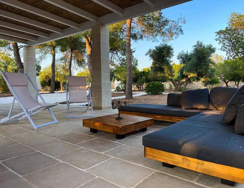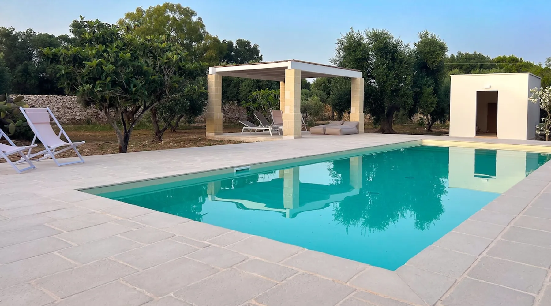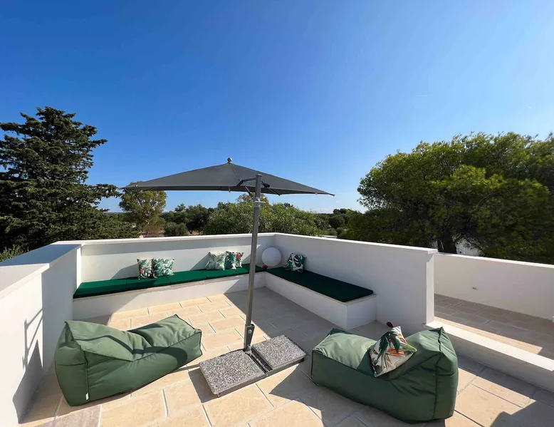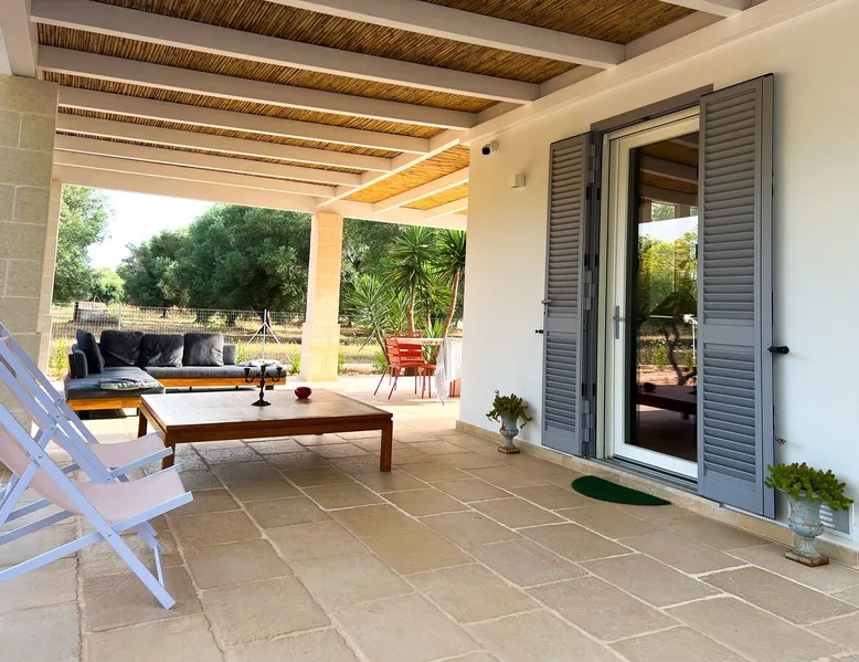 Villa with private pool 10 minutes walk from the beautiful white sand beaches of Campomarino. The elegantly curated interior has star vaults typical of Apulian houses. The outdoor shaded by 2 frescoes has: dining area, conversation area and solarium area that also continues on terraces to enjoy sunsets surrounded by 5,000 square meters of Mediterranean garden with centuries-old olive trees that also make the pool area perfect for aperitifs and morning swims The space The interior consists of a living area consisting of: 1 living room, dining room with kitchen perfectly equipped with refrigerator and freezer induction plates, oven, oven, microwave, coffee maker, dishwasher, sleeping area consisting of: 3 bedrooms with ensuite bathroom, (2 double 1 single beds) Outside in addition to the patio, terraces, the pool has 1 outdoor bathroom with laundry (washing machine and dryer), an outdoor shower necessary to remove the sand/ground, before entering the pool Registration Details IT073014C200073436