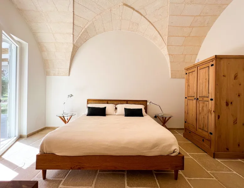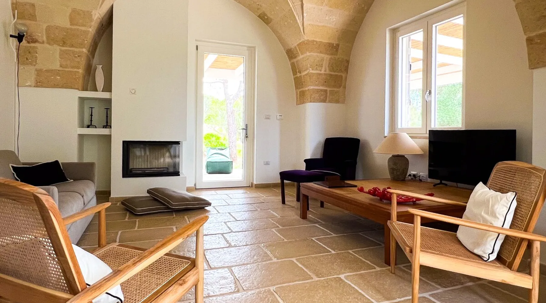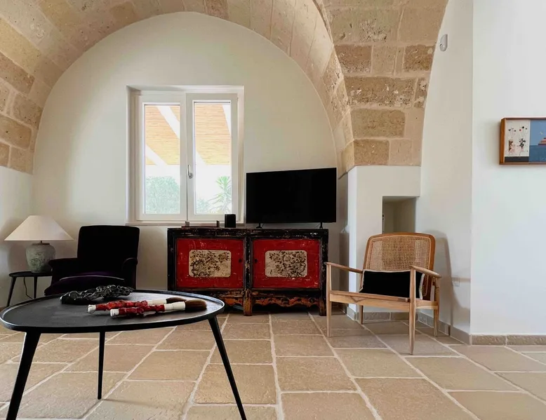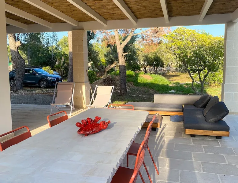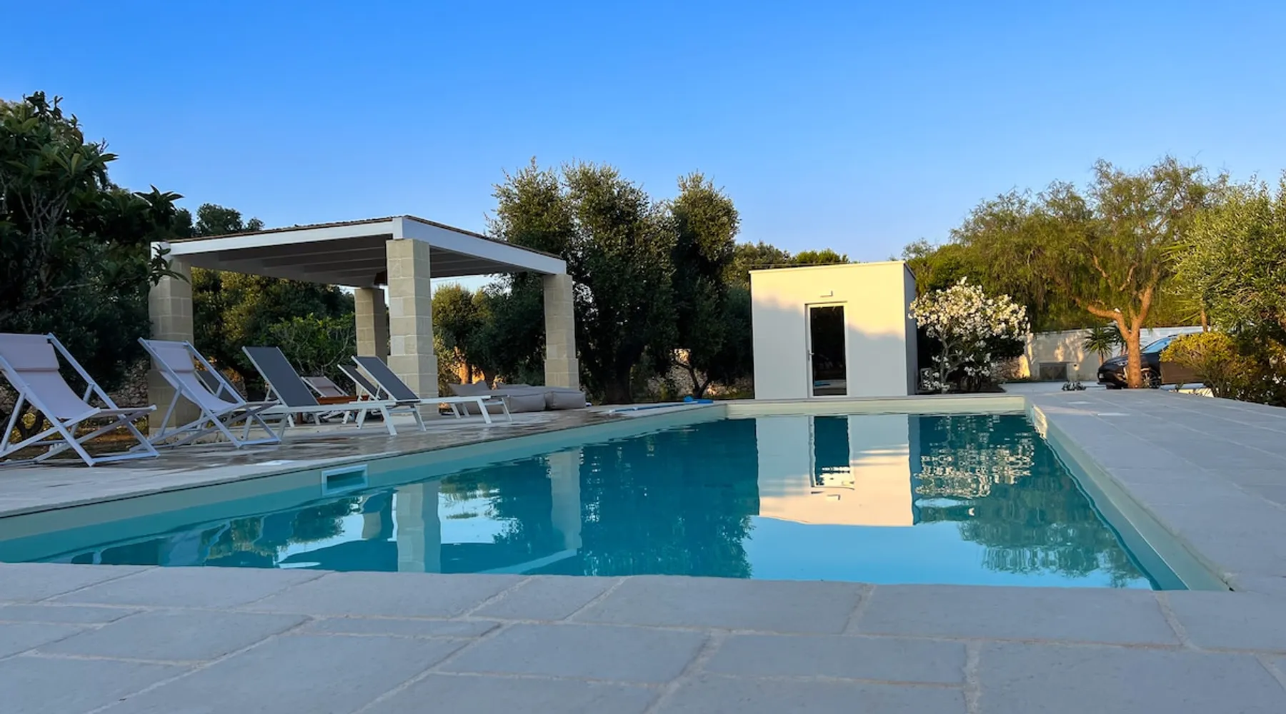 Villa with private pool 10 minutes walk from the beautiful white sand beaches of Campomarino. The elegantly curated interior has star vaults typical of Apulian houses. The outdoor shaded by 2 frescoes has: dining area, conversation area and solarium area that also continues on terraces to enjoy sunsets surrounded by 5,000 square meters of Mediterranean garden with centuries-old olive trees that also make the pool area perfect for aperitifs and morning swims The space The interior consists of a living area consisting of: 1 living room, dining room with kitchen perfectly equipped with refrigerator and freezer induction plates, oven, oven, microwave, coffee maker, dishwasher, sleeping area consisting of: 3 bedrooms with ensuite bathroom, (2 double 1 single beds) Outside in addition to the patio, terraces, the pool has 1 outdoor bathroom with laundry (washing machine and dryer), an outdoor shower necessary to remove the sand/ground, before entering the pool Registration Details IT073014C200073436