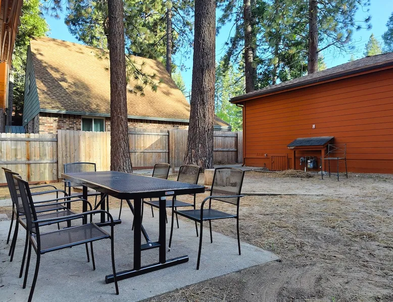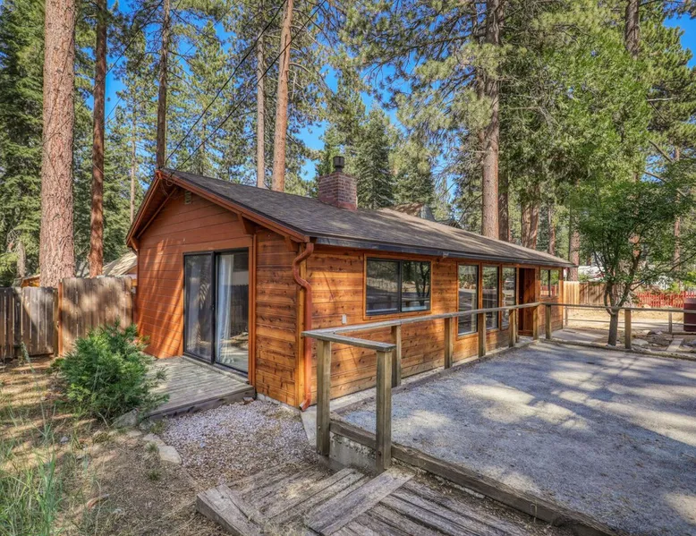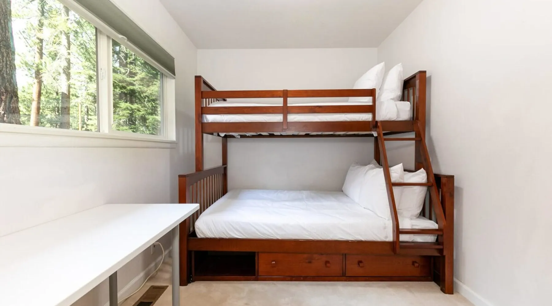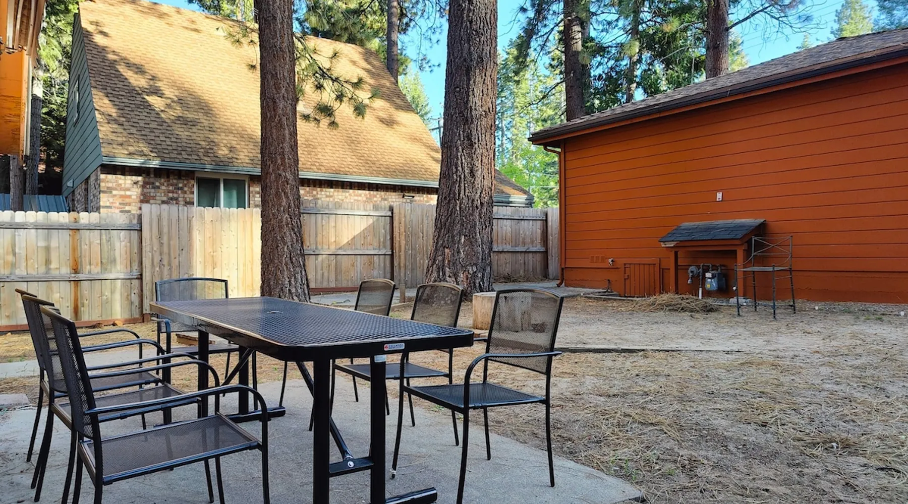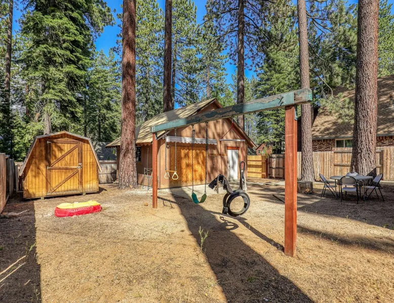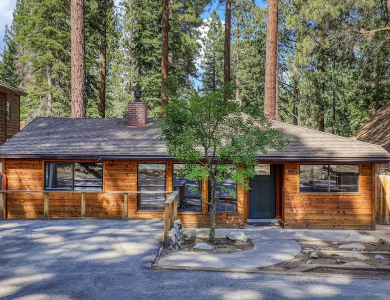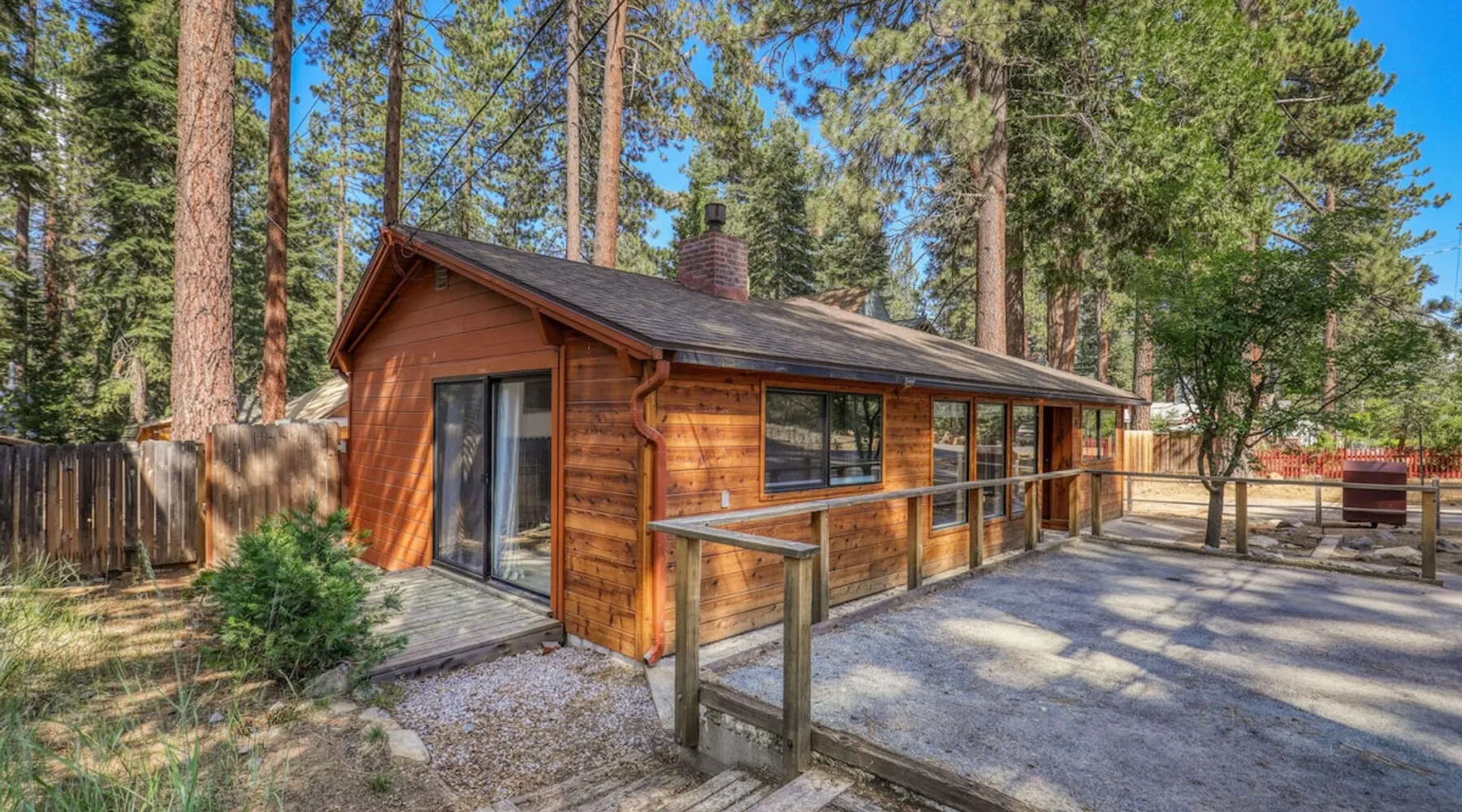 This family-friendly 3-bedroom Tahoe cabin is filled with a cozy atmosphere and peaceful surroundings tucked among the trees. Located just a 10-minute drive to Northstar Ski Resort, 1 minute from the beach, & within 25 minutes of 3 other ski resorts, endless outdoor activities are just outside your door! The home boasts 2 living rooms and a fenced backyard, providing plenty of space to relax & recharge after a busy day of exploring all that Tahoe has to offer. The space This charming 3-bedroom cabin in Agate Bay is a lovely family-friendly retreat, ideally located in the heart of all that Tahoe has to offer! Return from a busy day to this warm and cozy home where you will find 3 private bedrooms, two living rooms, and a spacious fenced backyard. There is plenty of space for your group to spread out and be comfortable at this lovely home! Off the front porch of the home, you will find a storage room perfect for storing all your outdoor gear before entering the home. When you first arrive at the home, you will find the dining area and kitchen to your right and the first living room to your left. A cozy dining nook is tucked into the corner just off the front door of the home, where you will find a wood table with built-in bench seating for five. Connected to the dining area is the fully equipped kitchen, in which you’ll find plenty of counter space and easy-to-use appliances, plus all of the kitchenware you’ll need for home cooked meals. Head into the living room and cozy up with family and friends while you warm up by the electric fireplace, which is situated in a lovely red brick stone hearth. Make yourself comfortable on the leather sofa as you enjoy a movie on the mounted TV, or chat with your group about the day’s adventures as you relax in this open space. Off the living room, you will find a hallway with three large windows flooding the space with natural light. The hallway takes you to a bonus living area, a cozy room with plush carpeting, an exposed red brick wall, and a sliding glass door leading outside. The room includes a comfortable sofa and two reading chairs situated around a TV, making a great space for family movie nights or an extra area to spread out and relax. When you are ready to settle in for the night the home has 3 private bedrooms located down a second hallway from the other side of the living room providing a quiet separation of space for a good night's rest. The master bedroom features a comfortable king-size bed with a bed frame providing storage space, two nightstands, and a closet. The second bedroom is a great bedroom for the kids in the group, with a bunk bed featuring a twin-over-full bed. The bedroom also includes a desk underneath a window overlooking the surrounding trees and a closet. The third bedroom boasts a queen-size bed and a closet and includes a stacked washer and dryer unit, so you can keep with up any laundry needs during your stay. The home includes a full-size bathroom that features a spacious double sink vanity and a bathtub/shower combo. Rounding out the home is the great backyard, a spacious area that is fully fenced, providing additional privacy. In the backyard, you will find a patio table and chairs and a swing set, so you can relax while the little ones in your group run around and play. STR License Number: STR23-8160 Max Occupancy: 7 Parking Info: There are 3 spaces available in the front driveway of the home. Guest access Guests will have access to the entire home, a fenced backyard, and three parking places in the driveway in the front of the home. Other things to note Please note that, like most homes in the area, this home does not have A/C. Please keep in mind that if you plan to ski, you are responsible for verifying the ski resorts' opening and closing dates. Charcoal grills are strictly forbidden in this county and will result in a $1,500 citation if used. 4-wheel drive or 2-wheel drive tires with snow chains may be necessary for safe travel to this property, even if it hasn’t snowed in a few days.