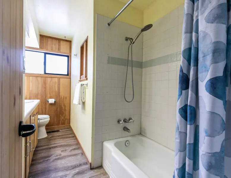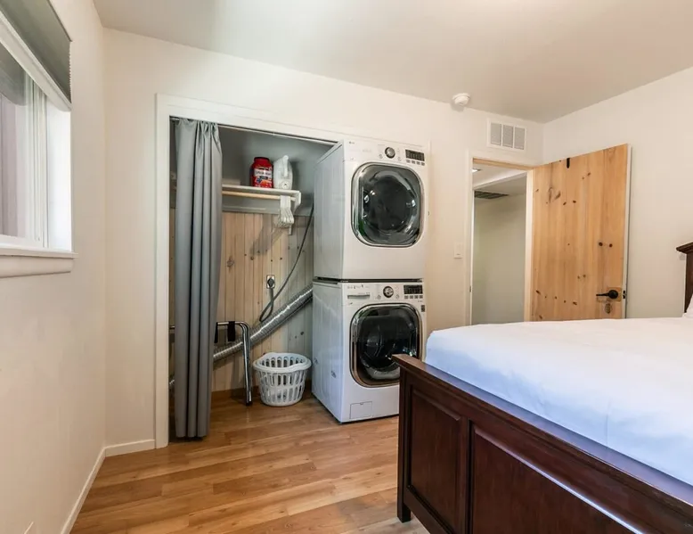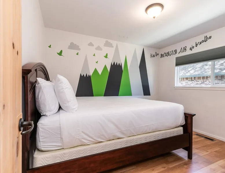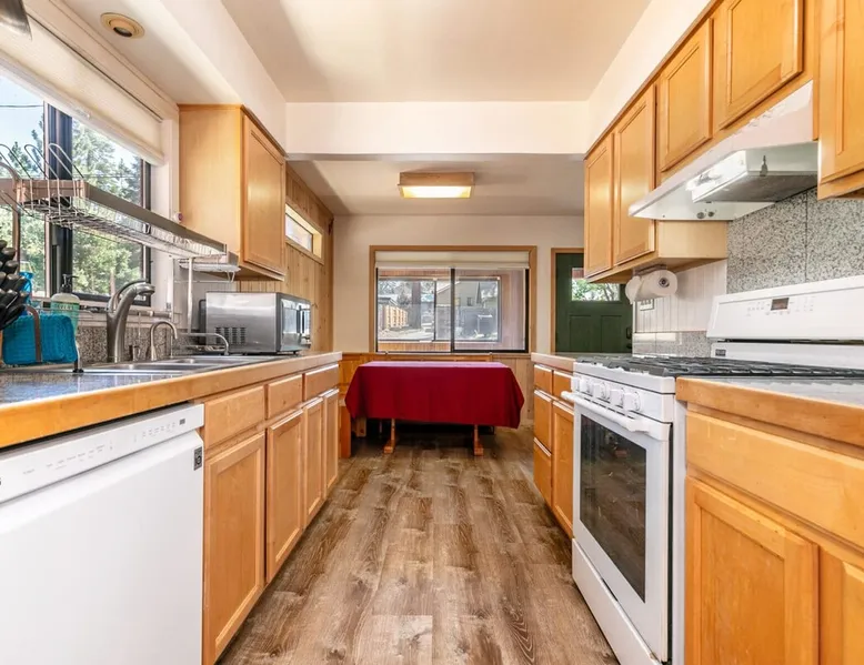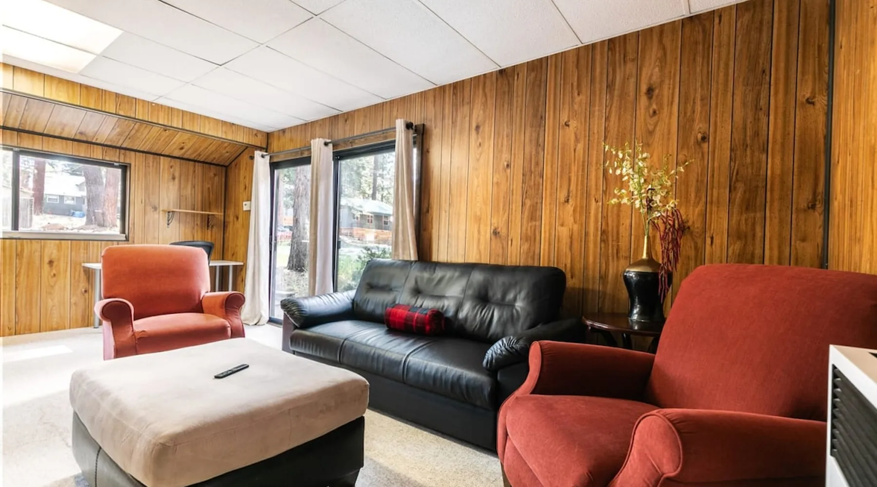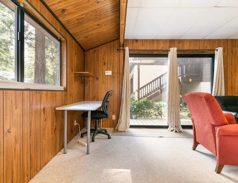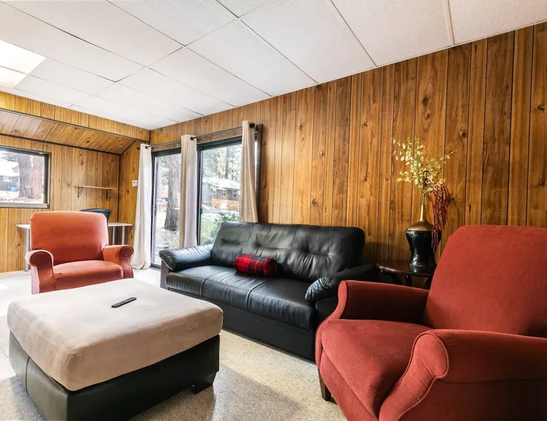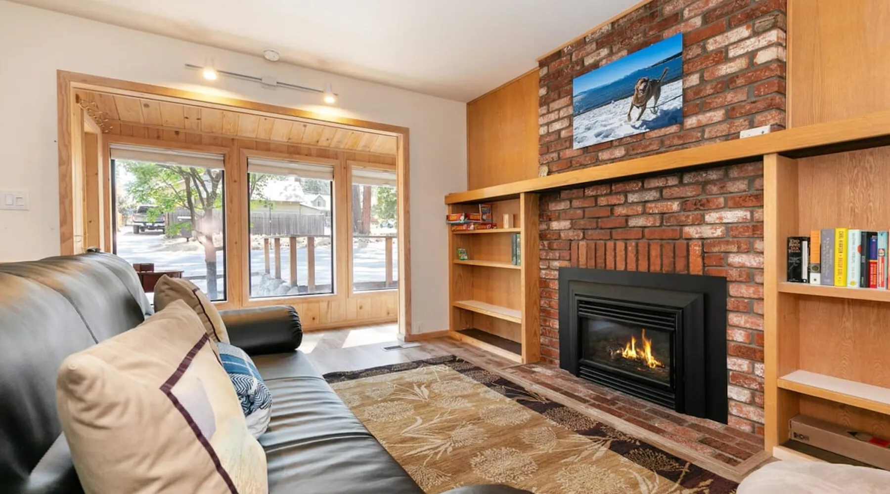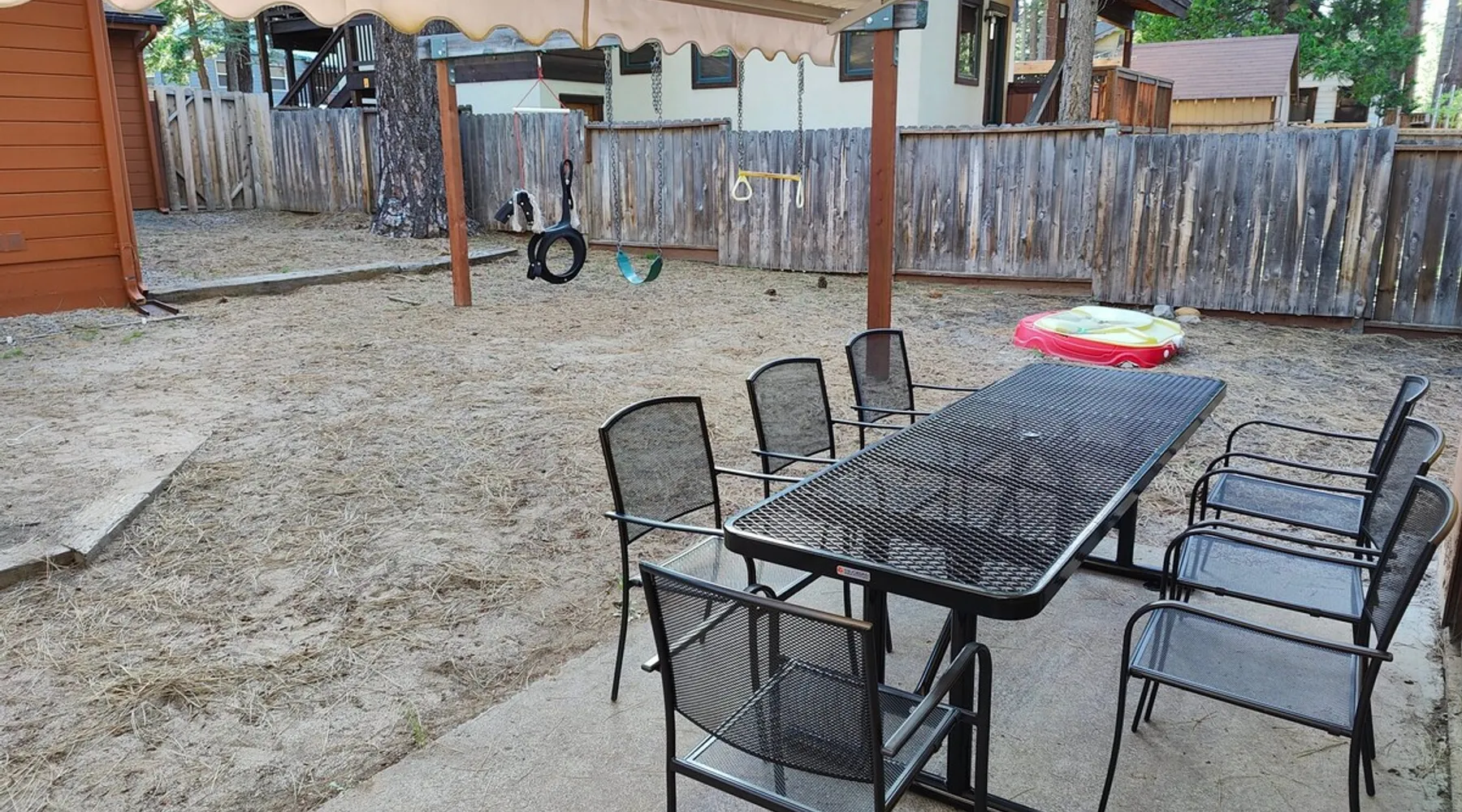 This family-friendly 3-bedroom Tahoe cabin is filled with a cozy atmosphere and peaceful surroundings tucked among the trees. Located just a 10-minute drive to Northstar Ski Resort, 1 minute from the beach, & within 25 minutes of 3 other ski resorts, endless outdoor activities are just outside your door! The home boasts 2 living rooms and a fenced backyard, providing plenty of space to relax & recharge after a busy day of exploring all that Tahoe has to offer. The space This charming 3-bedroom cabin in Agate Bay is a lovely family-friendly retreat, ideally located in the heart of all that Tahoe has to offer! Return from a busy day to this warm and cozy home where you will find 3 private bedrooms, two living rooms, and a spacious fenced backyard. There is plenty of space for your group to spread out and be comfortable at this lovely home! Off the front porch of the home, you will find a storage room perfect for storing all your outdoor gear before entering the home. When you first arrive at the home, you will find the dining area and kitchen to your right and the first living room to your left. A cozy dining nook is tucked into the corner just off the front door of the home, where you will find a wood table with built-in bench seating for five. Connected to the dining area is the fully equipped kitchen, in which you’ll find plenty of counter space and easy-to-use appliances, plus all of the kitchenware you’ll need for home cooked meals. Head into the living room and cozy up with family and friends while you warm up by the electric fireplace, which is situated in a lovely red brick stone hearth. Make yourself comfortable on the leather sofa as you enjoy a movie on the mounted TV, or chat with your group about the day’s adventures as you relax in this open space. Off the living room, you will find a hallway with three large windows flooding the space with natural light. The hallway takes you to a bonus living area, a cozy room with plush carpeting, an exposed red brick wall, and a sliding glass door leading outside. The room includes a comfortable sofa and two reading chairs situated around a TV, making a great space for family movie nights or an extra area to spread out and relax. When you are ready to settle in for the night the home has 3 private bedrooms located down a second hallway from the other side of the living room providing a quiet separation of space for a good night's rest. The master bedroom features a comfortable king-size bed with a bed frame providing storage space, two nightstands, and a closet. The second bedroom is a great bedroom for the kids in the group, with a bunk bed featuring a twin-over-full bed. The bedroom also includes a desk underneath a window overlooking the surrounding trees and a closet. The third bedroom boasts a queen-size bed and a closet and includes a stacked washer and dryer unit, so you can keep with up any laundry needs during your stay. The home includes a full-size bathroom that features a spacious double sink vanity and a bathtub/shower combo. Rounding out the home is the great backyard, a spacious area that is fully fenced, providing additional privacy. In the backyard, you will find a patio table and chairs and a swing set, so you can relax while the little ones in your group run around and play. STR License Number: STR23-8160 Max Occupancy: 7 Parking Info: There are 3 spaces available in the front driveway of the home. Guest access Guests will have access to the entire home, a fenced backyard, and three parking places in the driveway in the front of the home. Other things to note Please note that, like most homes in the area, this home does not have A/C. Please keep in mind that if you plan to ski, you are responsible for verifying the ski resorts' opening and closing dates. Charcoal grills are strictly forbidden in this county and will result in a $1,500 citation if used. 4-wheel drive or 2-wheel drive tires with snow chains may be necessary for safe travel to this property, even if it hasn’t snowed in a few days.