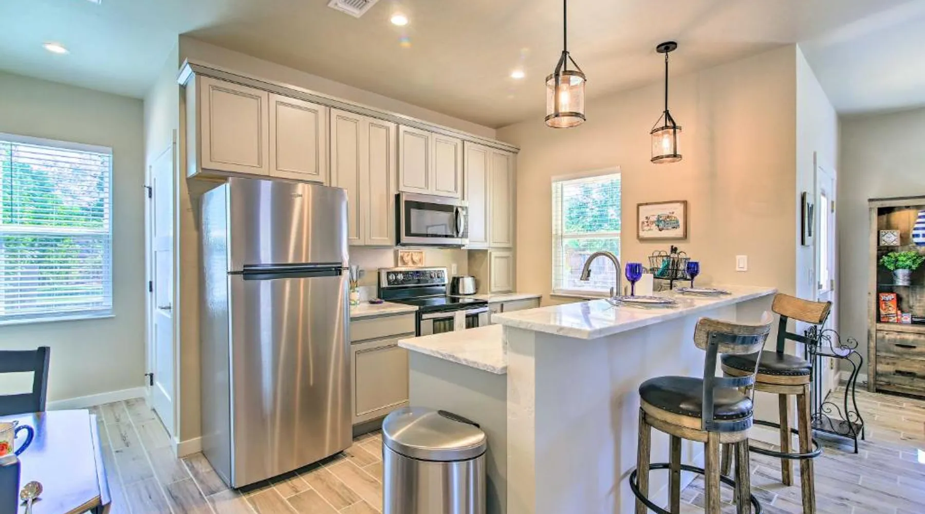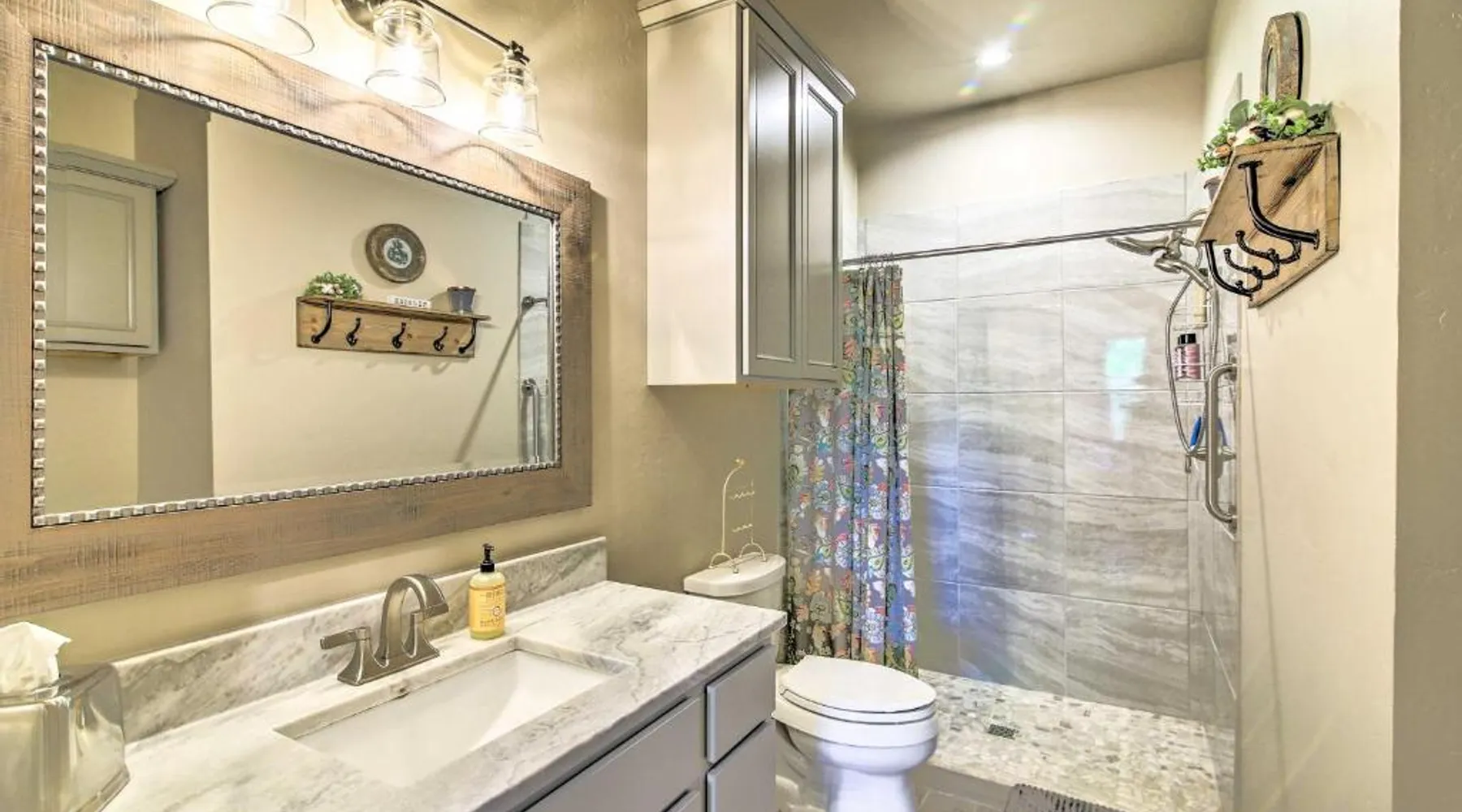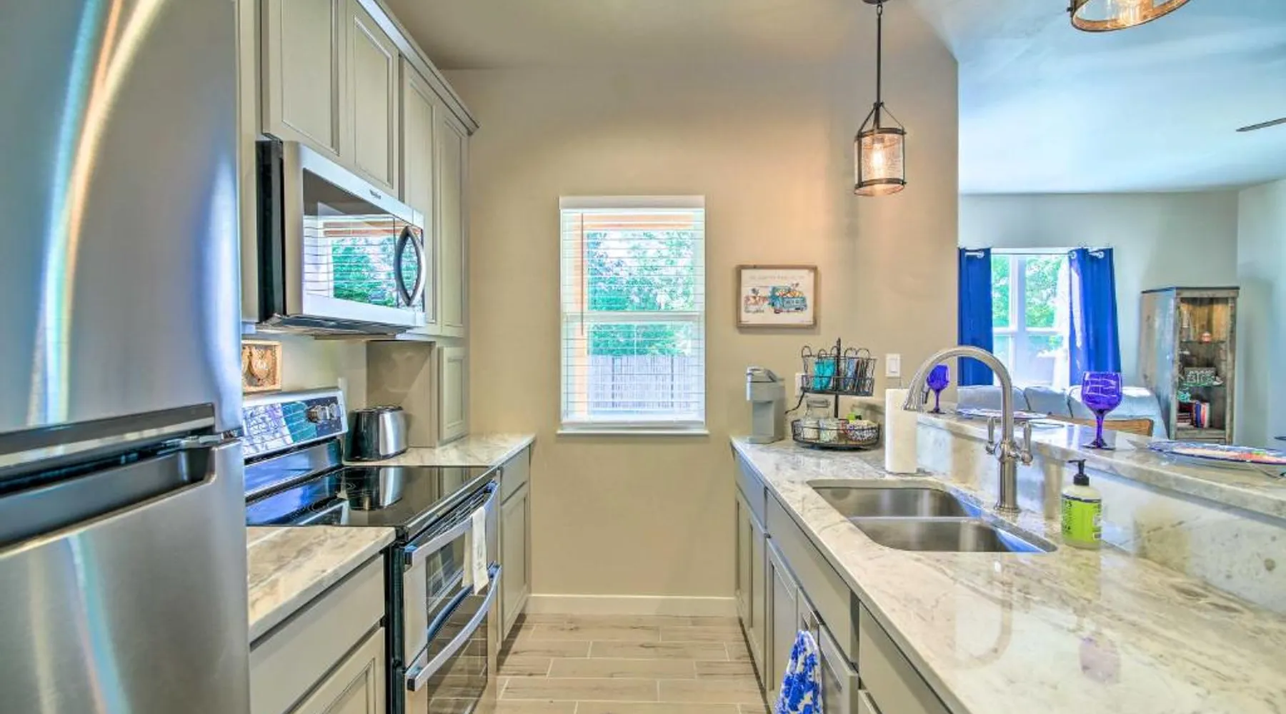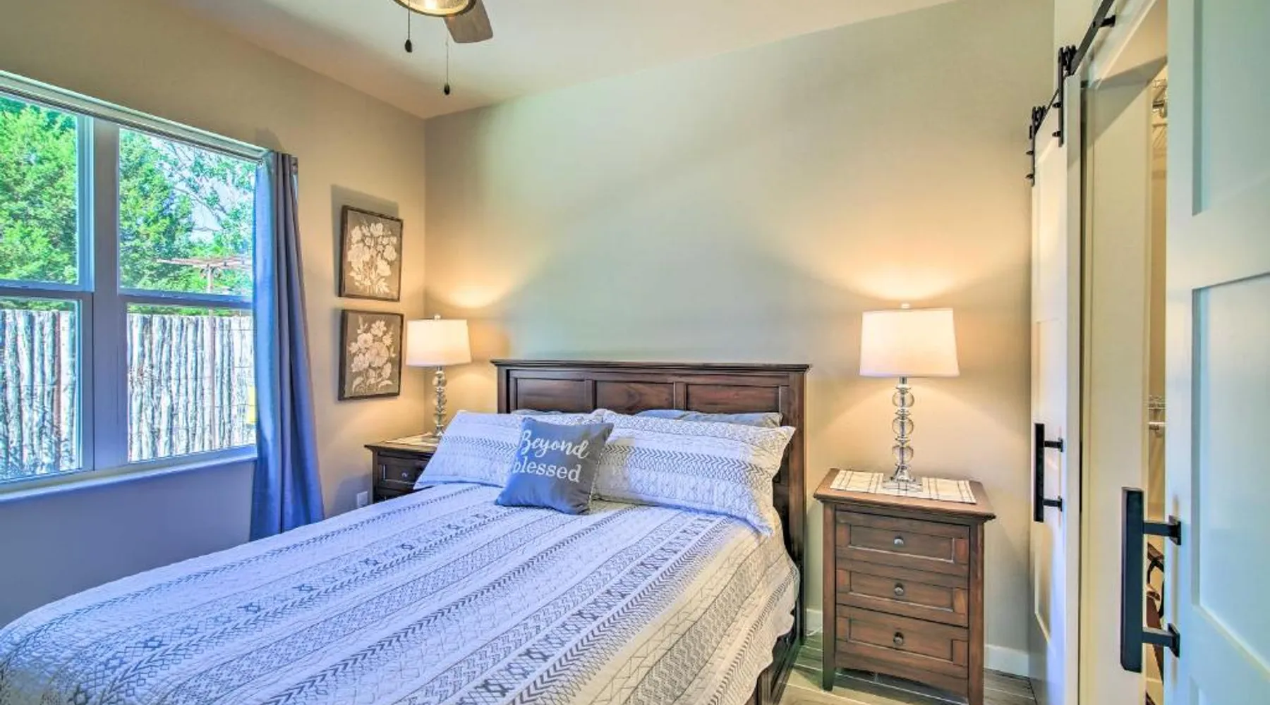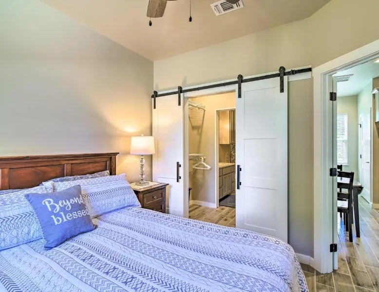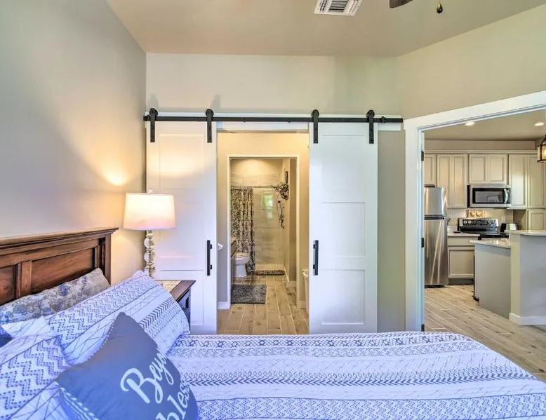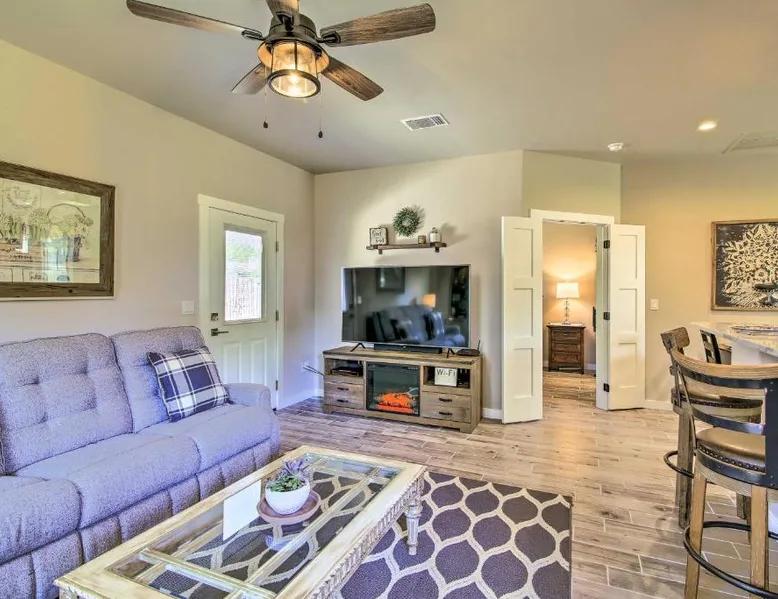 Comfortable Living: Hill Country Escape Hike, Swim, and Drink Wine in Fredericksburg offers a holiday home with one bedroom and two bathrooms. The property includes a spa and wellness center and free WiFi. Modern Amenities: Guests enjoy air-conditioning, a patio, and a fully equipped kitchen with a coffee machine, oven, stovetop, and toaster. Additional amenities include a fireplace, TV, and free toiletries. Outdoor Spaces: The holiday home features an outdoor dining area and a private entrance. Paid on-site parking is available. Local Attractions: Enchanted Rock State Natural Area is 17 mi away, and San Antonio International Airport is 69 mi from the property. The fireplace is a top feature of this holiday home. Boasting a private entrance, this air-conditioned holiday home comes with 1 living room, 1 separate bedroom and 2 bathrooms with a shower and a hairdryer. The fully equipped kitchen has a stovetop, a refrigerator, kitchenware and an oven. Featuring a patio, this holiday home also features a coffee machine, tumble dryer and a flat-screen TV with cable channels. The unit has 1 bed.