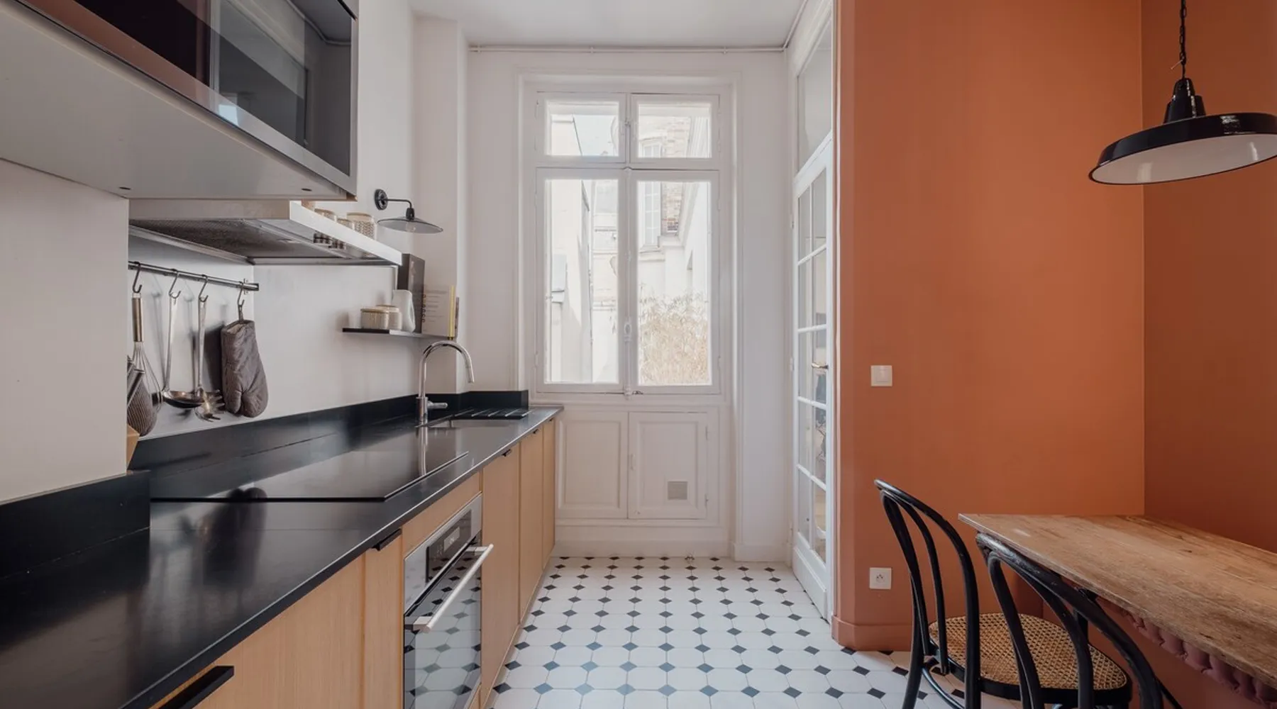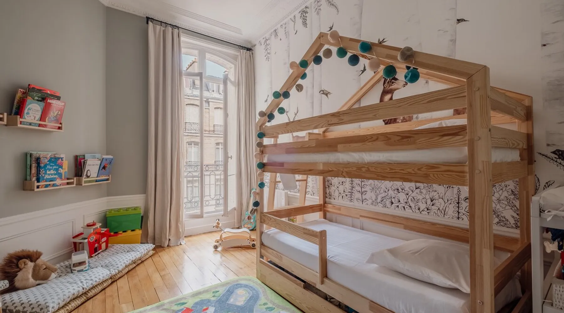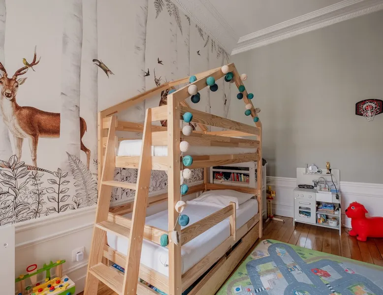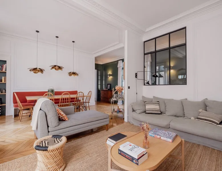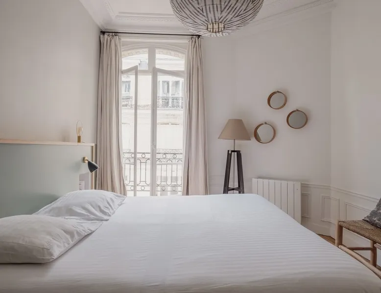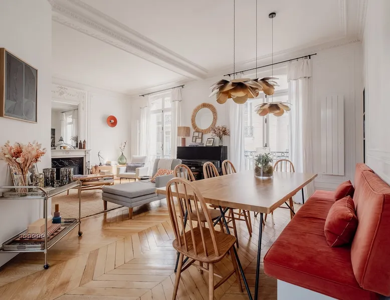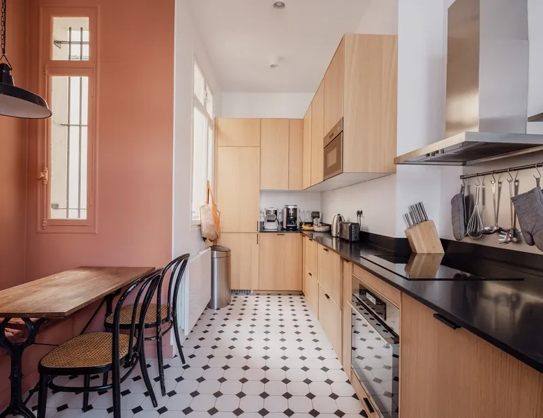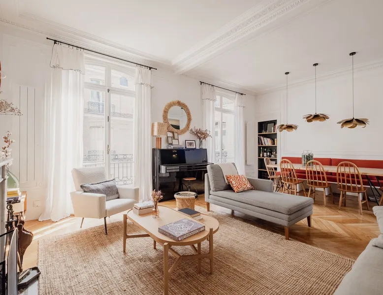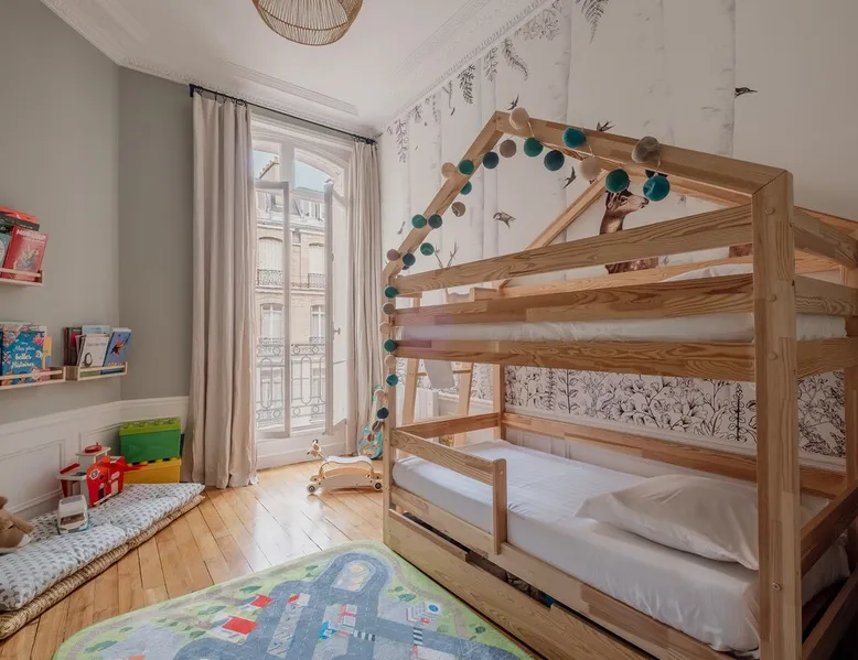 Heavenly Elegance The space Paying exquisite lip service to Paris’ enduring reputation as the City of Light, this remarkably lucent apartment manifests warmth and conviviality with its clean lines and boundless open-plan design. The majestic interiors are equally matched by this home’s peerless location on a refined street between the Arc de Triomphe and Parc Monceau. A family-friendly neighbourhood with a distinctly relaxed feel and some of the city’s finest examples of Haussmann architecture, the 17th arrondissement also plays host to bohemian Batignolles, a trendy hotspot teeming with bars and bistros... LIVING AREA & DINING SPACE Breathtaking light, the living area is an ode to creativity with its impressive merger of contemporary and traditional design with intelligent zoning. High ceilings and French doors enrich the exquisite period detail within, while the lounge is lovingly furnished with contemporary sofas and chairs. An ivory piano brings a touch of grandeur to this irresistibly debonair space, while modern pendant lights above the dining table demonstrate this property’s unerring confidence in transcending design eras. KITCHEN A lustrous dark olive green hallway gently guides you towards the voluminous modern kitchen. Equally captivating in its ambitious mingling of texture and tone, shades of coral paired with checkerboard floors and light wood units combine to create a rousing mood. Fully equipped with all key amenities and intelligently structured to satisfy even the most ambitious of chefs, a breakfast bar adds a final flourish to this impressive space. BEDROOMS Delightfully airy, the principal bedroom is the essence of genteel serenity with its high ceilings, whitewashed walls and slumbrous large double bed. The peaceful pistachio hues of the two-tone wall ably complement the ethereal atmosphere that otherwise permeates the room. The second bedroom takes a walk on the wild side with its wood bunk bed, fern hues and enchanting woodland wallpaper. Perfect for small children, it also boasts a small play area. BATHROOM Skilfully retaining the apartment’s inherent luminescence, the bathroom comprises a bath and double wash basin, and houses a washing machine and dryer. A separate WC can also be found in the apartment. WE LOVE The astute layout of the visually arresting living area, deftly capturing the light from the street below to amplify this property’s period splendour. **To rent this property, the minimum age requirement is 25 years old.** This apartment is located on the fifth floor and can be accessed by a lift. A portable air conditioning unit is available at this property, keep in mind an exhaust tube needs to be placed out the window, leaving these slightly open during use. The bunk bed in the second bedroom is suitable for small children only. The WC is separate from the bathroom. Please note, the fireplace in the living room is purely decorative. Guest access Check-in is between 3pm and 9pm. Check-ins outside of this window may incur additional fees. Unless otherwise specified, a greeter will meet you on arrival. Guests are free to enjoy the entire space as depicted on the listing. Other things to note No smoking, no parties! Pets are not allowed in Veeve homes unless agreed directly with a member of our Team, and on a strictly case by case basis. The lead guest must be at least 25 years old. Veeve reserves the right to refuse a booking if it thinks the property may be used for a party. Please be aware, once a booking is confirmed you will be required to complete a Rental Agreement, as well as ID verification via our partners Truvi. This is mandatory for all of our stays. Registration Details 7511709151270