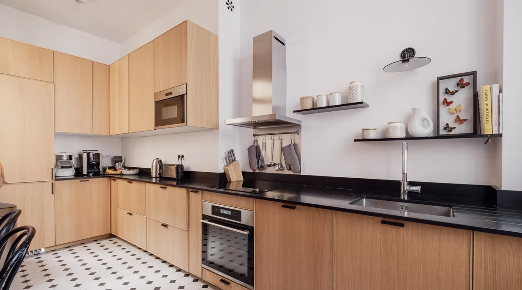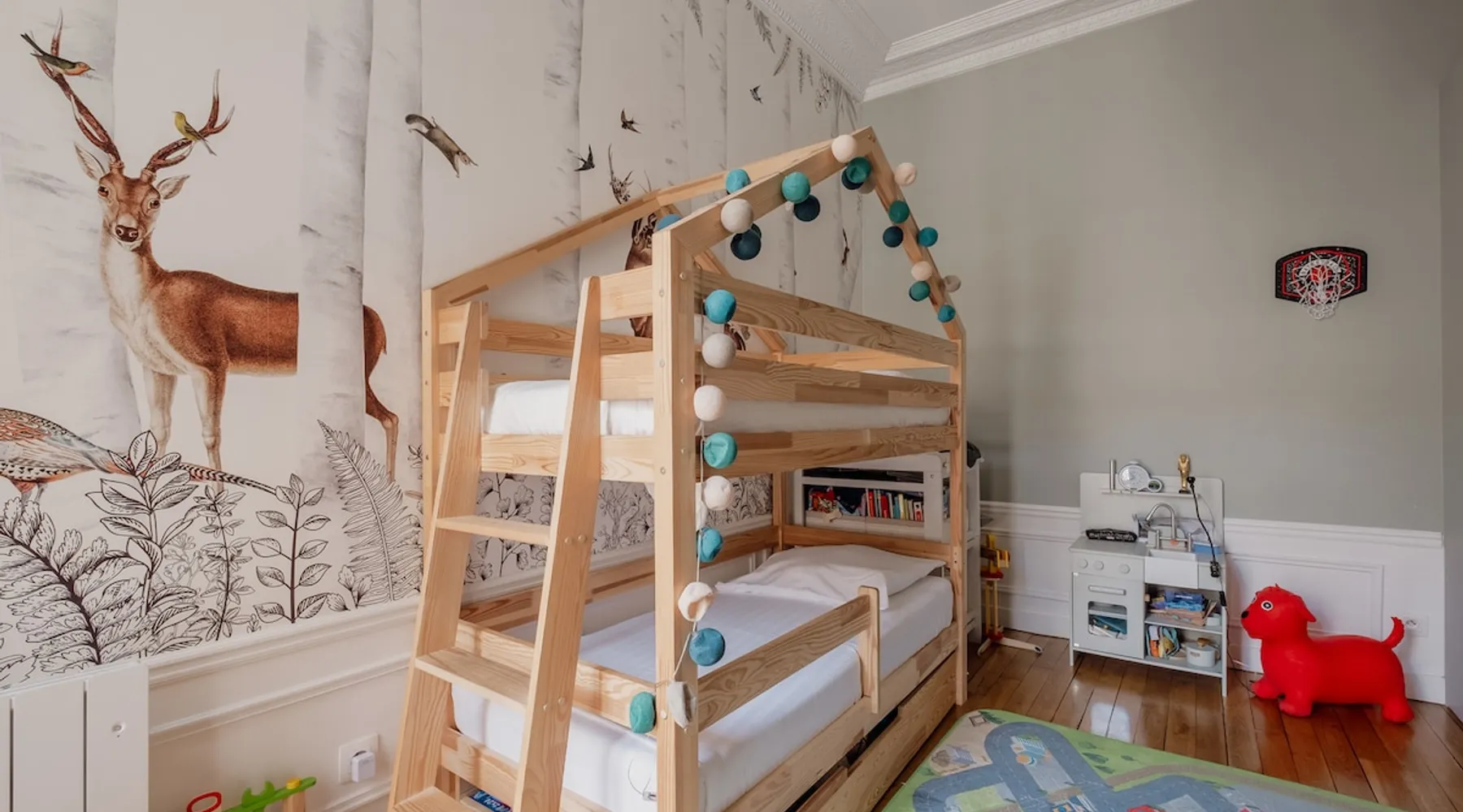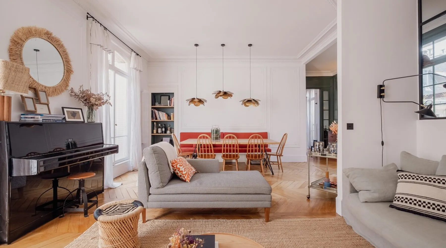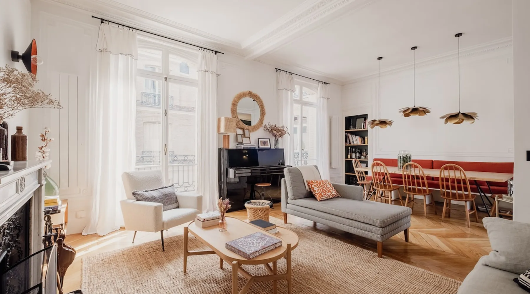 Heavenly Elegance The space Paying exquisite lip service to Paris’ enduring reputation as the City of Light, this remarkably lucent apartment manifests warmth and conviviality with its clean lines and boundless open-plan design. The majestic interiors are equally matched by this home’s peerless location on a refined street between the Arc de Triomphe and Parc Monceau. A family-friendly neighbourhood with a distinctly relaxed feel and some of the city’s finest examples of Haussmann architecture, the 17th arrondissement also plays host to bohemian Batignolles, a trendy hotspot teeming with bars and bistros... LIVING AREA & DINING SPACE Breathtaking light, the living area is an ode to creativity with its impressive merger of contemporary and traditional design with intelligent zoning. High ceilings and French doors enrich the exquisite period detail within, while the lounge is lovingly furnished with contemporary sofas and chairs. An ivory piano brings a touch of grandeur to this irresistibly debonair space, while modern pendant lights above the dining table demonstrate this property’s unerring confidence in transcending design eras. KITCHEN A lustrous dark olive green hallway gently guides you towards the voluminous modern kitchen. Equally captivating in its ambitious mingling of texture and tone, shades of coral paired with checkerboard floors and light wood units combine to create a rousing mood. Fully equipped with all key amenities and intelligently structured to satisfy even the most ambitious of chefs, a breakfast bar adds a final flourish to this impressive space. BEDROOMS Delightfully airy, the principal bedroom is the essence of genteel serenity with its high ceilings, whitewashed walls and slumbrous large double bed. The peaceful pistachio hues of the two-tone wall ably complement the ethereal atmosphere that otherwise permeates the room. The second bedroom takes a walk on the wild side with its wood bunk bed, fern hues and enchanting woodland wallpaper. Perfect for small children, it also boasts a small play area. BATHROOM Skilfully retaining the apartment’s inherent luminescence, the bathroom comprises a bath and double wash basin, and houses a washing machine and dryer. A separate WC can also be found in the apartment. WE LOVE The astute layout of the visually arresting living area, deftly capturing the light from the street below to amplify this property’s period splendour. **To rent this property, the minimum age requirement is 25 years old.** This apartment is located on the fifth floor and can be accessed by a lift. A portable air conditioning unit is available at this property, keep in mind an exhaust tube needs to be placed out the window, leaving these slightly open during use. The bunk bed in the second bedroom is suitable for small children only. The WC is separate from the bathroom. Please note, the fireplace in the living room is purely decorative. Guest access Check-in is between 3pm and 9pm. Check-ins outside of this window may incur additional fees. Unless otherwise specified, a greeter will meet you on arrival. Guests are free to enjoy the entire space as depicted on the listing. Other things to note No smoking, no parties! Pets are not allowed in Veeve homes unless agreed directly with a member of our Team, and on a strictly case by case basis. The lead guest must be at least 25 years old. Veeve reserves the right to refuse a booking if it thinks the property may be used for a party. Please be aware, once a booking is confirmed you will be required to complete a Rental Agreement, as well as ID verification via our partners Truvi. This is mandatory for all of our stays. Registration Details 7511709151270