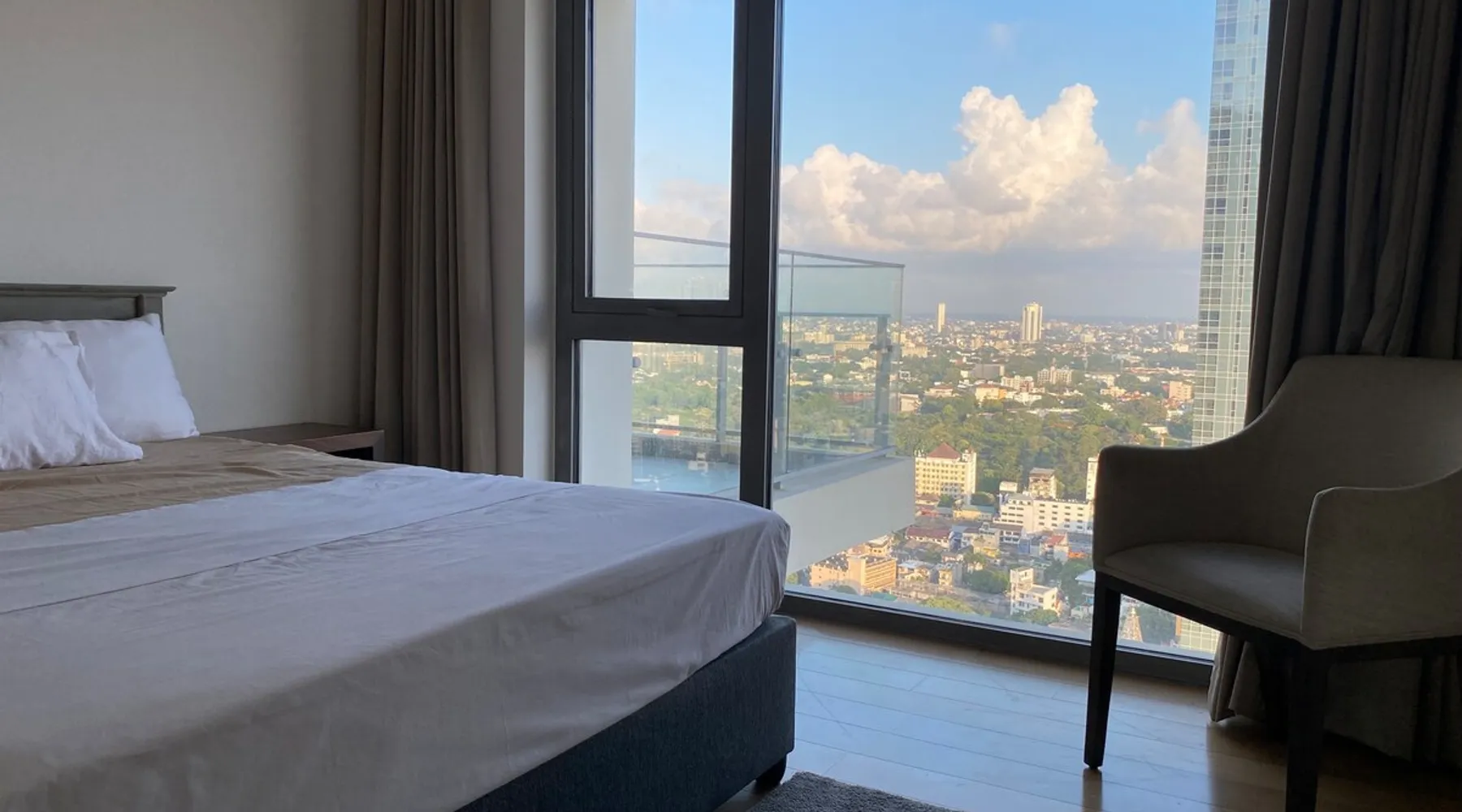 Altair - Sri Lanka's architectural landmark - ultra luxury condominium with world class amenities, mesmerizing views in the heart of town. Ocean views from all rooms. Super close to shopping, fine dining, and hospitals. Fiber high speed internet with WIFI and LAN connection in all rooms. Furnished with American luxury. Full featured kitchen with oven, microwave, dishwasher. Very private residence approximately 1500 sqft/ 139 m² with only 4 units per floor with ample distance in between. The space Master Bedroom - King bed Second Bedroom - Queen bed Third Bedroom - Double bed