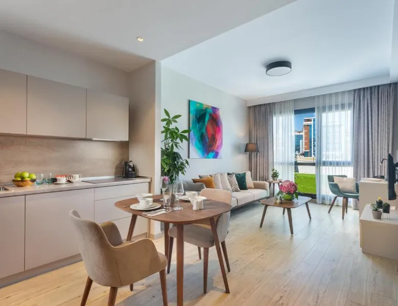 Comfortable Accommodations: Antwell Suites in Istanbul offers family rooms with air-conditioning, private bathrooms, and city views. Each room includes a walk-in shower, refrigerator, and TV. Exceptional Facilities: Guests can enjoy spa facilities, a sauna, fitness center, indoor swimming pool, sun terrace, and garden. Additional amenities include a steam room, hot tub, and hammam. Dining Experience: The family-friendly restaurant serves Mediterranean, Turkish, and international cuisines with halal, vegetarian, vegan, and gluten-free options. Breakfast includes American, buffet, Italian, and Turkish styles. Prime Location: Located 19 mi from Istanbul Sabiha Gokcen International Airport, the hotel is near attractions such as Maiden's Tower (5.6 mi) and Dolmabahce Palace (7.5 mi). Free WiFi is available throughout the property. The well-fitted kitchen features a stovetop, a refrigerator, a dishwasher and kitchenware. The spacious air-conditioned suite provides a flat-screen TV, a washing machine, a private entrance, a seating area as well as city views. The unit offers 2 beds.