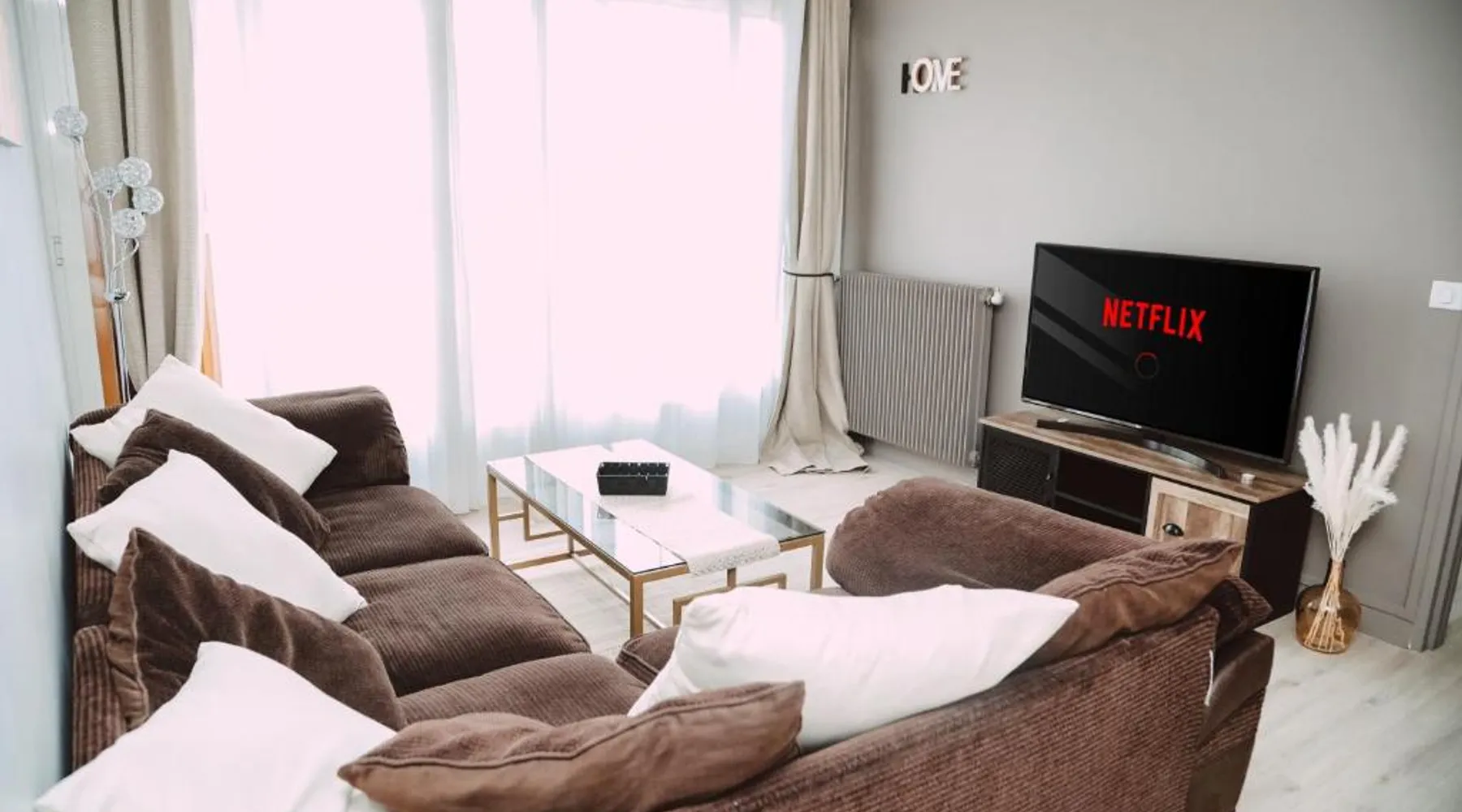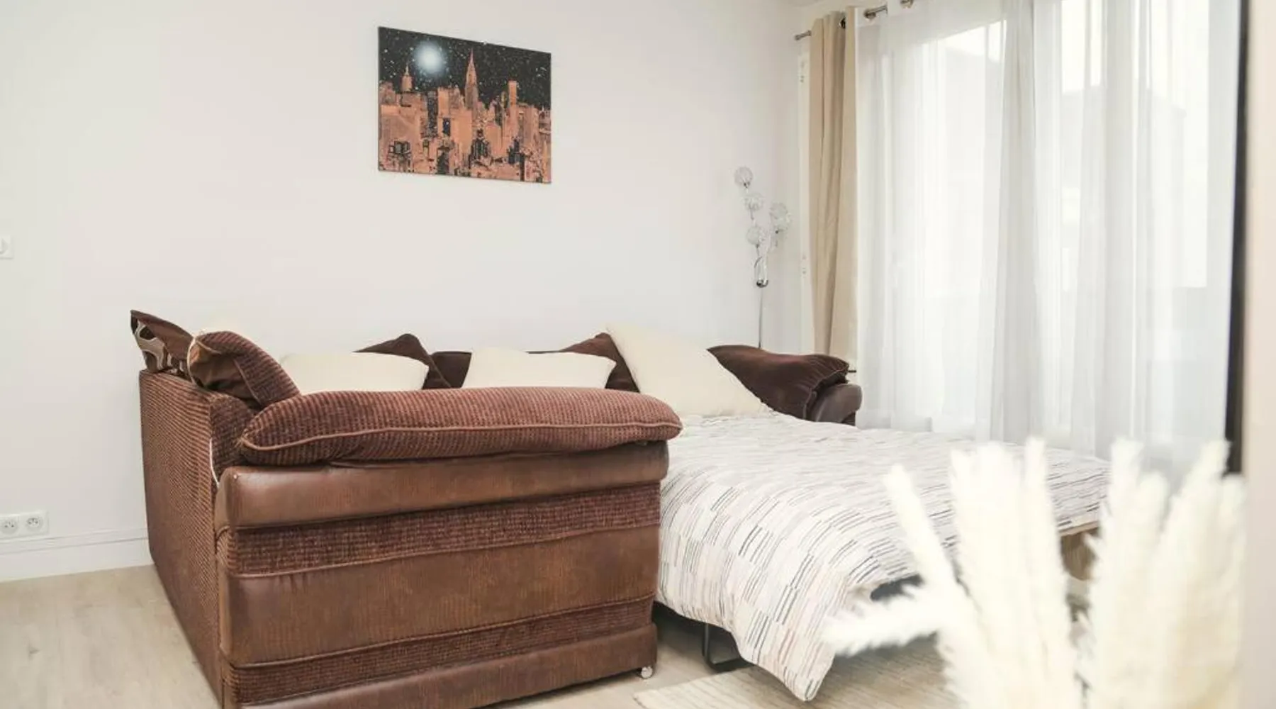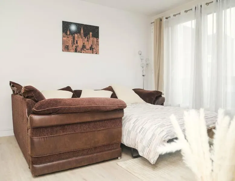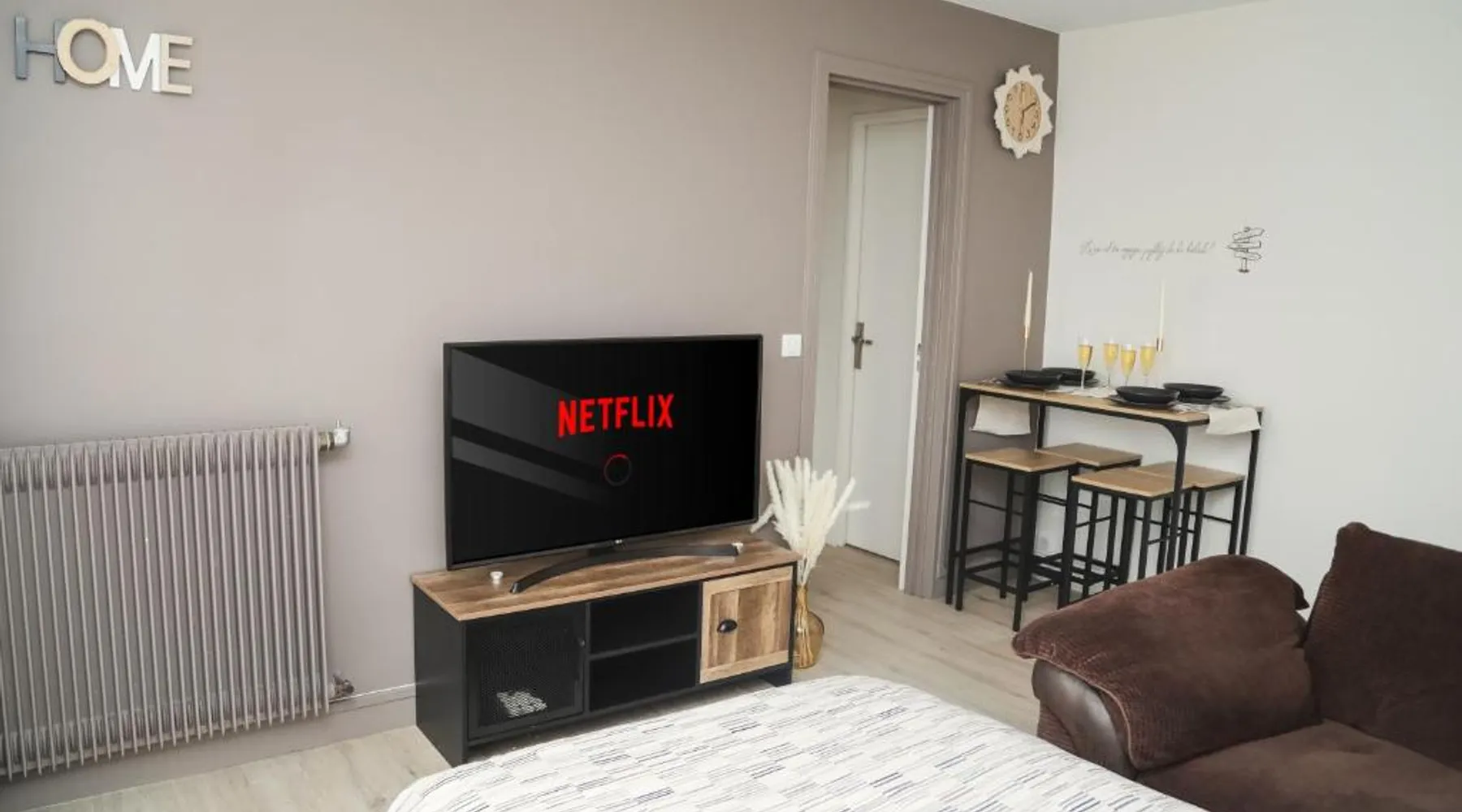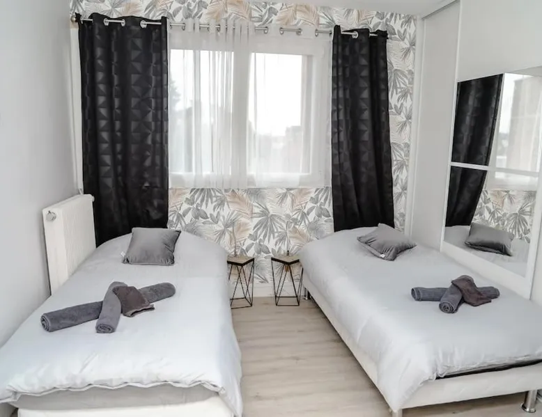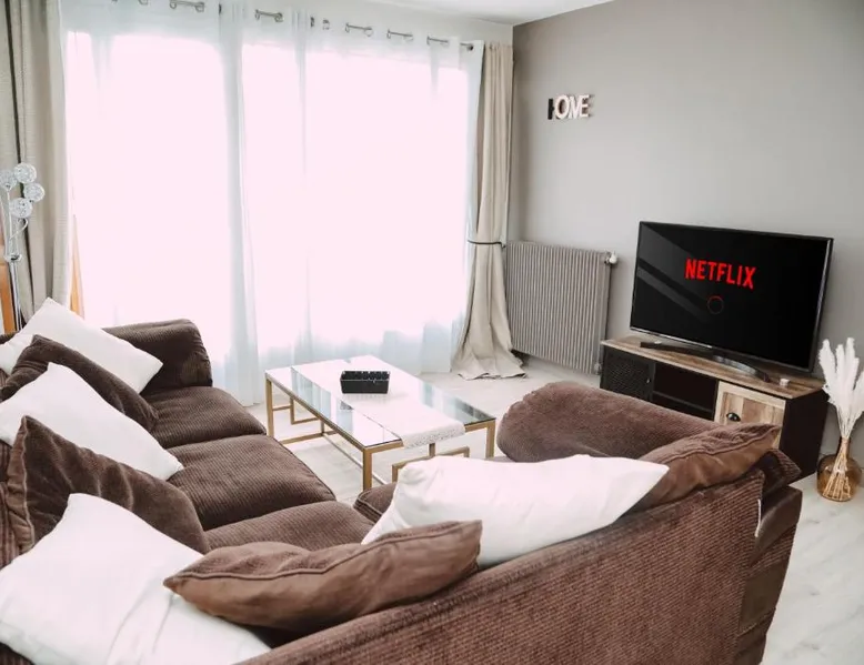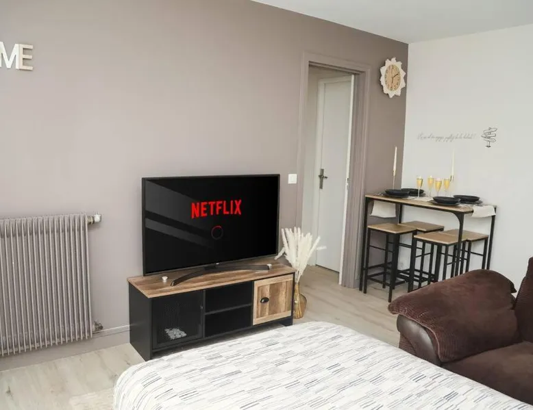 Comfortable Living: Le nid douillet in Villemomble offers a one-bedroom apartment with a living room. The property features family rooms, a balcony with garden views, and a fully equipped kitchen. Modern Amenities: Guests enjoy free WiFi, streaming services, a washing machine, and a dishwasher. Additional amenities include a microwave, refrigerator, and parquet floors. Convenient Location: Located 11 mi from Paris Charles de Gaulle Airport, the apartment is close to Stade de France (8.1 mi) and Noter Dame Cathedral (11 mi). An ice-skating rink is also nearby. Meals can be prepared in the kitchen, which has a stovetop, a refrigerator, a dishwasher and kitchenware. This apartment has a washing machine, flat-screen TV with streaming services, garden views, as well as chocolate for guests. The unit has 2 beds.