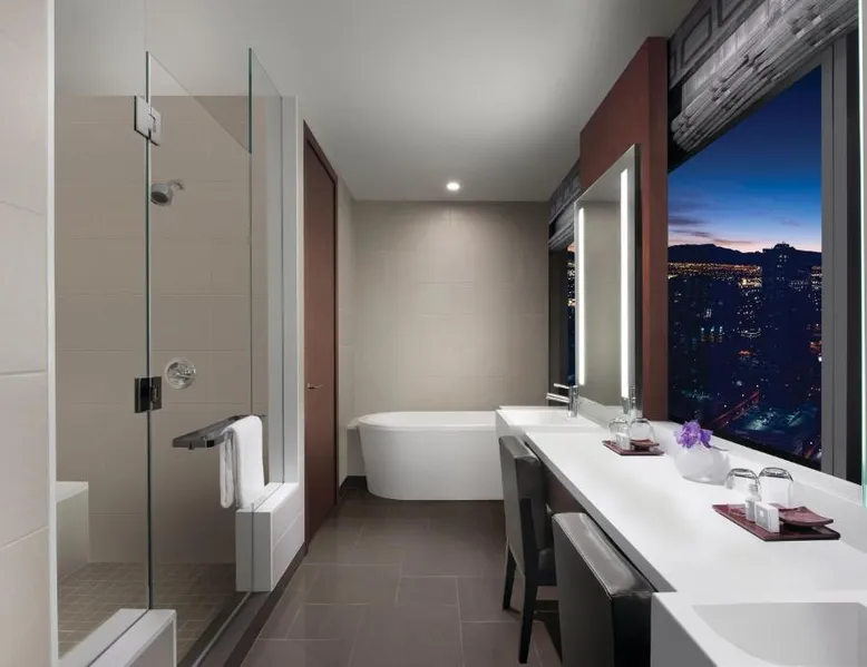 This resort is located on the Las Vegas Strip and features suites with a 50-inch flat-screen TV. The modern suites at Vdara Hotel & Spa at ARIA Las Vegas include a kitchenette. A dining area is provided. This all-suite non-gaming, nonsmoking resort offers special suites for dog owners and their dogs. Vdara Hotel & Spa at ARIA Las Vegas features a rooftop pool surrounded by plunge pools. Vdara Hotel & Spa at ARIA Las Vegas features the Market Cafe, a boutique grocery store and cafe, providing the option to grab a quick bite or purchase fresh items. Vise Versa Patio and Lounge at Vdara serves cocktails in a contemporary lounge setting by night. Vdara Hotel & Spa at ARIA Las Vegas, walking distance to ARIA Resort & Casino and Bellagio,has a variety of dining, casino and shopping venues just minutes away. The spacious double room features air conditioning, a mini-bar, as well as a private bathroom boasting a walk-in shower and a bath. Guests can make meals in the kitchenette that features a stovetop, a refrigerator and a microwave. The double room has tiled floors, a seating area with a flat-screen TV with cable channels, a dining area, an iPad, as well as a wardrobe. The unit has 2 beds.