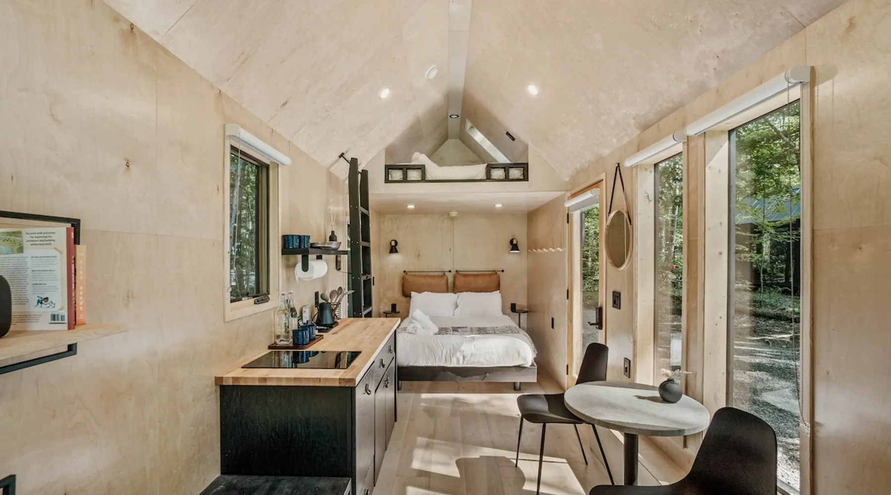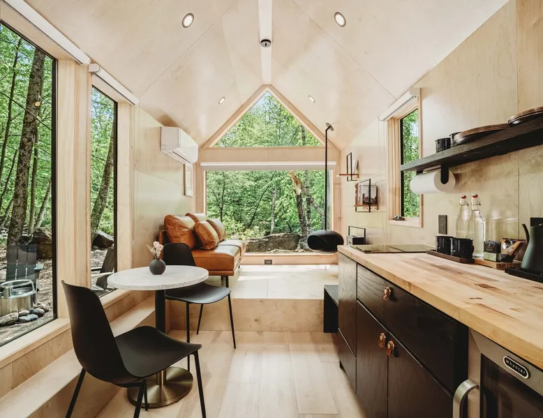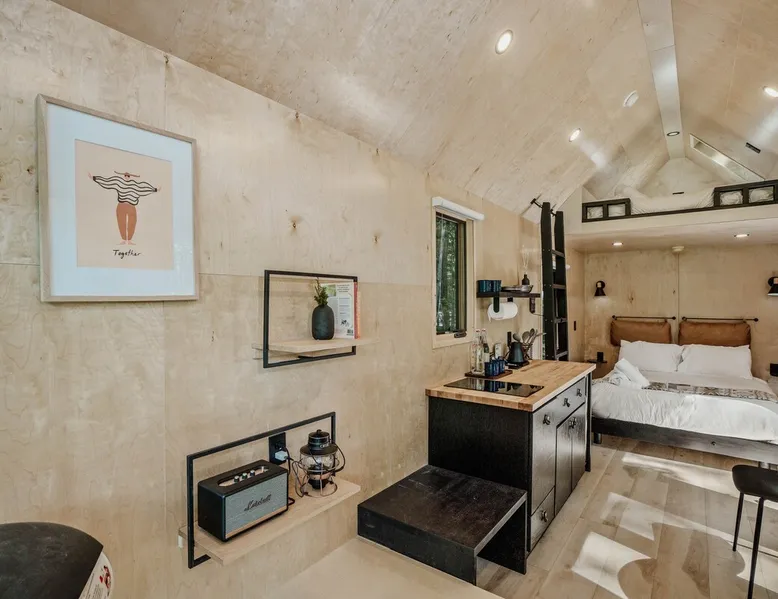 HYGGE (pronounced as "hoo-guh") is a Danish word that describes a mood of coziness, connection, and contentment. The moment you come to Lumen and enter Cabin Hygge, we hope you will feel just that. Everything you need to be comfortable and cozy -- nothing you don't. It is the perfect setting for you to spend quality time with your family or friends in a gorgeous, peaceful natural environment. The space Our Nordic-inspired Cabin HYGGE provides you with a bedroom-in-nature concept featuring a full-wall window, cozy fireplace and a relaxation nook, full kitchenette, along with a luxury, hotel-quality queen bed and a loft bed. Within just a 2-3 minute walk, you’ll have access to our just-renovated, climate-controlled bathhouse with designer finishes, high-end toiletries, hot showers, and everything you need for your comfort while you’re staying with us. At Lumen, we’ve wanted to design a magical experience – combining the peace and enjoyment of spending time in nature, sitting around the fire with your friends or family, and falling asleep to a million stars above you, while at the same time, offering the comfort of a boutique hotel. Every detail is handled and you don’t need to bring a thing other than yourself and your group. Other things to note Please note that you are booking a Luxury Nordic Cabin in nature. We’ve worked hard to make the experience as comfortable and enjoyable as possible. Every cabin is set on its own private site and they are separated from each other by trees, but you will see other guests around you. Check-in is at 4 pm, and check-out is at 10 am. We offer an early check-in option for an additional fee, this fee must be paid and approved before the arrival. If any of the guests within the group Check-in earlier or check out later outside of the official check-in and check-out time, there will be a fine of $50 automatically charged to the payment method used for the reservation. Quiet hours are from 10:00pm - 6:30am. Please respect all of our guests and refrain from playing loud music and disrupting other guests during these hours. BIOFUEL for the indoor fireplace is sold on-site. Campfires are authorized by management. We adhere to all County, State and Federal fire bans and as a private campground, we reserve the right to ban fires at any time. Fires are only permitted in designated fire rings and pits. Do not move the fire rings. All fires must be attended to at ALL TIMES and must be fully extinguished at bedtime or when not present. Guests are required to use fireplaces, firepits, stoves, and burners strictly according to the provided instructions. Use of these items is entirely at the guest’s own risk. By using them, guests acknowledge and accept that Lumen Nature Retreat assumes no responsibility or liability for any injuries, damages, or accidents resulting from their use. Guests are advised to exercise caution and follow all safety guidelines. Lumen Nature Retreat is a dog-friendly Campground. All dogs must be announced prior to the stay and the $50 fee for up to 2 dogs must be paid prior to the arrival. A maximum of 2 dogs are allowed per site. Other animals are not permitted. All dogs must be on a leash and under your control at all times. Any dangerous behavior on behalf of the dogs towards other guests can lead to a cancellation of the remainder of your stay without a refund. Please clean up after your dog. Failure to do so will result in a $100 fine and will be strictly enforced. Never leave your dog(s) unattended in a tent, your trailer or at your site. You are financially responsible for any damage done by your dog(s). Lastly, please note that we are not responsible for the discomforts of nature (including but not limited to weather, bugs, etc). Wear long sleeves, protect yourself against sunburn and bugs, and drink plenty of liquids while you’re here.