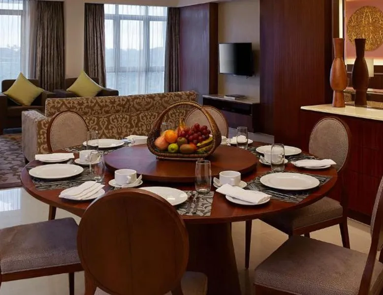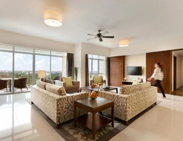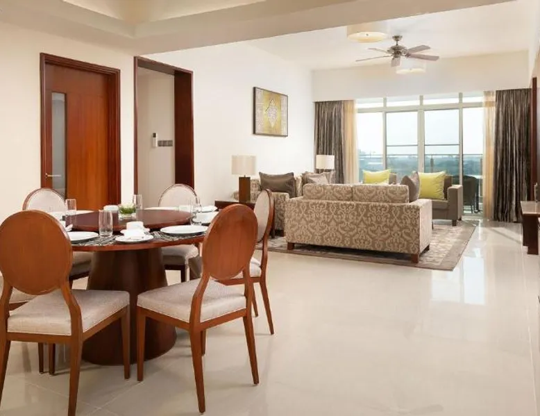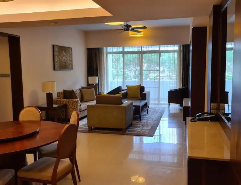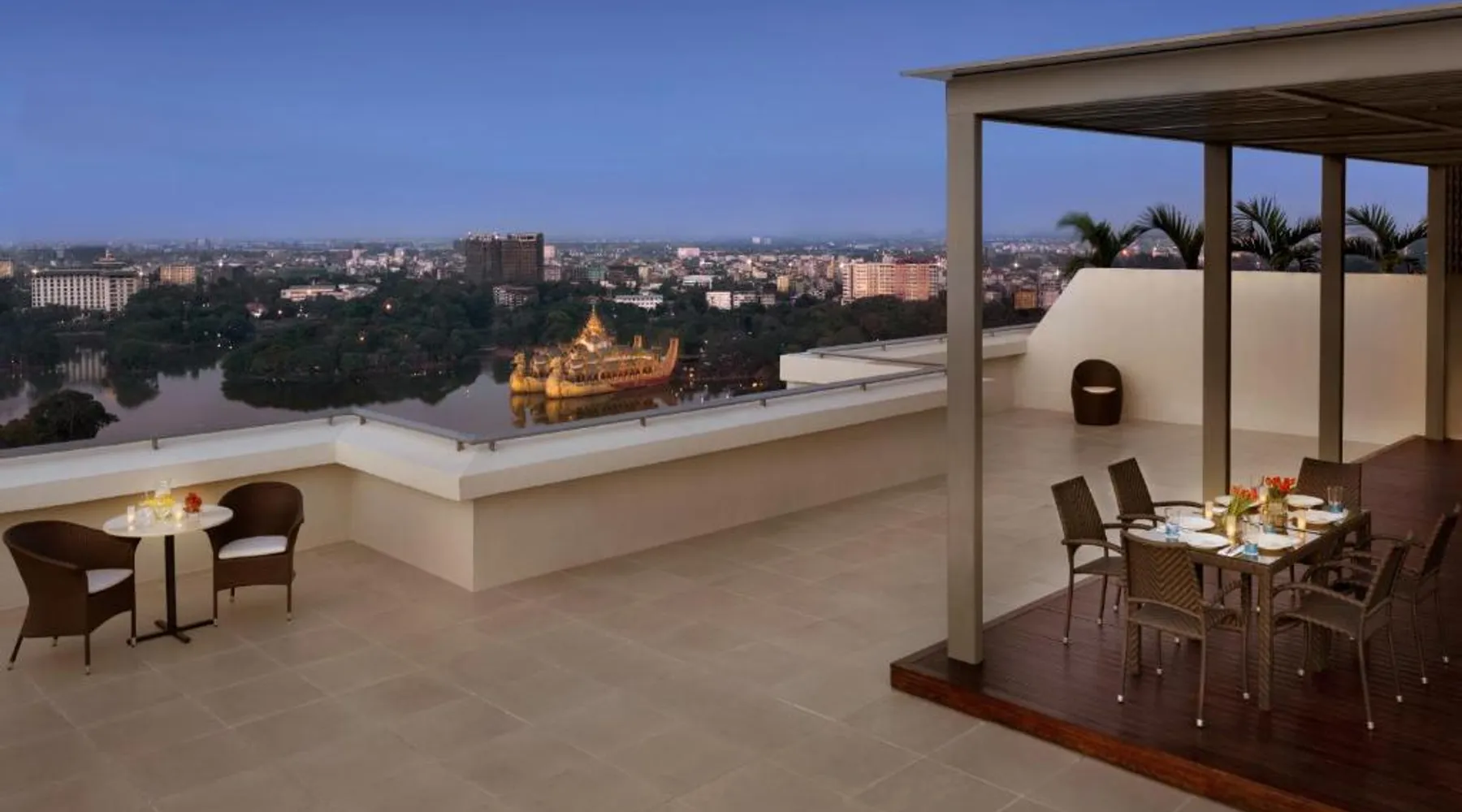 Elegant Accommodations: Shangri-La Serviced Apartments in Yangon offers a 5-star experience with a saltwater swimming pool, fitness center, and lush gardens. Guests enjoy a terrace, open-air bath, and free WiFi throughout the property. Comfortable Amenities: The apartment features private check-in and check-out, a fitness room, and a 24-hour front desk. Additional services include a concierge, kids' club, and a minimarket. Prime Location: Located 9.3 mi from Yangon International Airport, the property is close to attractions such as Kandawgyi Lake (1312 feet) and Sule Pagoda (1.6 mi). Guests appreciate the scenic views and proximity to local landmarks. This apartment's special features are the pool with a view and the hot tub. Featuring a private entrance, this air-conditioned apartment consists of 1 living room, 3 separate bedrooms and 2 bathrooms with a walk-in shower and a bath. Guests will find a stovetop, a refrigerator, a dishwasher and kitchenware in the fully equipped kitchen. The apartment also provides guests with a barbecue. The spacious apartment provides a flat-screen TV with streaming services, a washing machine, a tea and coffee maker, a seating area as well as lake views. The unit offers 5 beds.