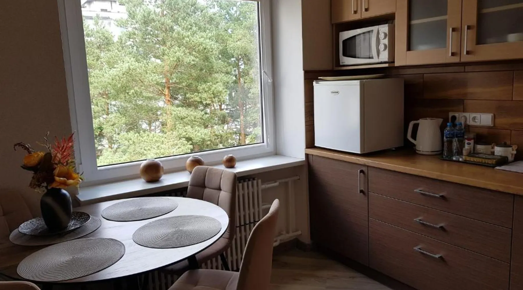 Beachfront Location: Patogus poilsis prie ežero in Visaginas offers direct beachfront access and stunning garden views. Guests can relax on the balcony and enjoy the serene surroundings. Comfortable Living: The spacious apartment features one bedroom, one bathroom, and a comfortable living room. A fully equipped kitchen and washing machine ensure convenience. Modern Amenities: Free WiFi is available throughout the property. Additional amenities include a TV, balcony, and free on-site parking. Nearby Attractions: Vilnius International Airport is 102 mi away. Points of interest such as Bunker Gallery and Daugavpils University are 31 mi from the apartment. Guest Satisfaction: Highly rated for room cleanliness, convenient location, and comfortable accommodations. The apartment's kitchen is available for cooking and storing food. Featuring a balcony with garden views, this apartment also offers a washing machine and a flat-screen TV. The unit offers 2 beds.