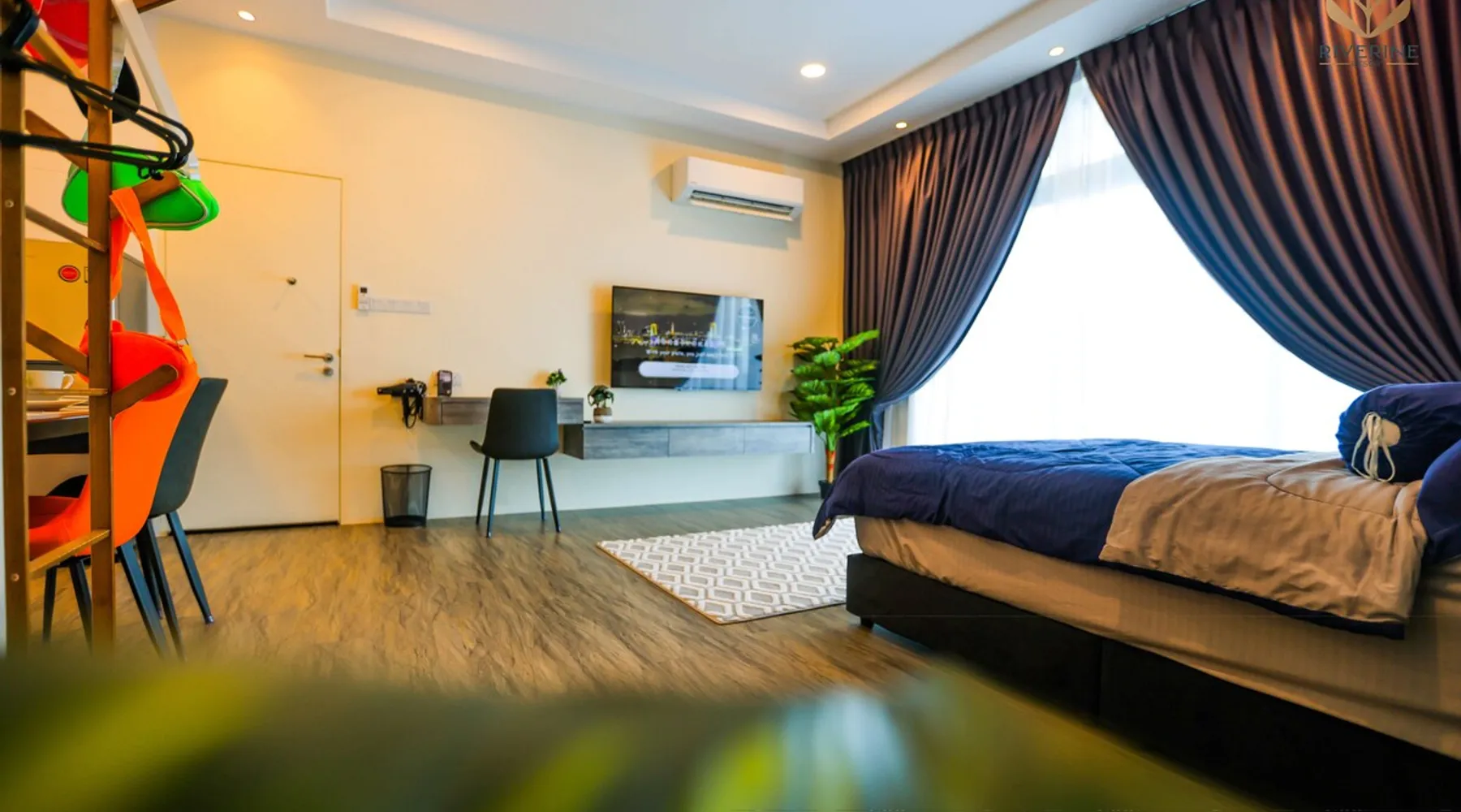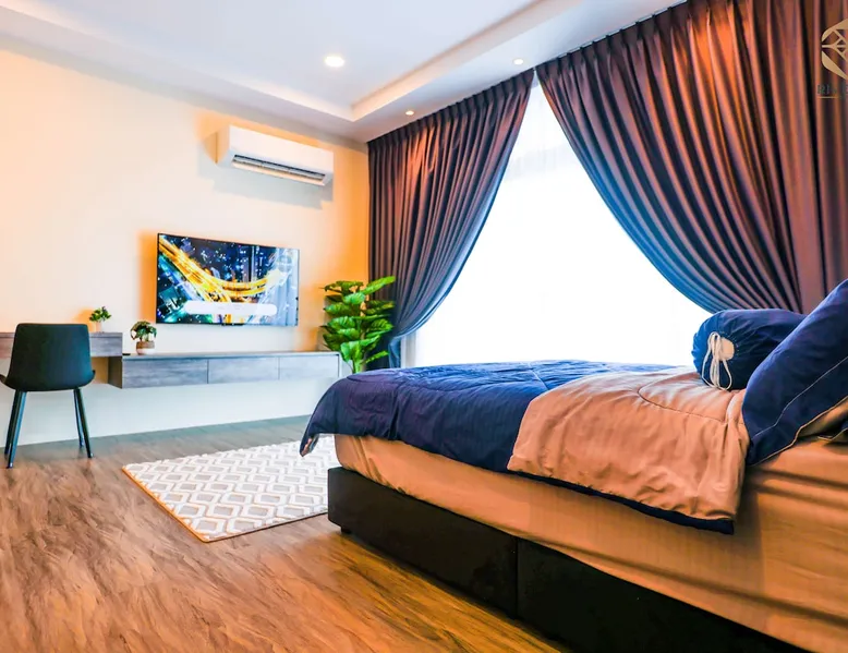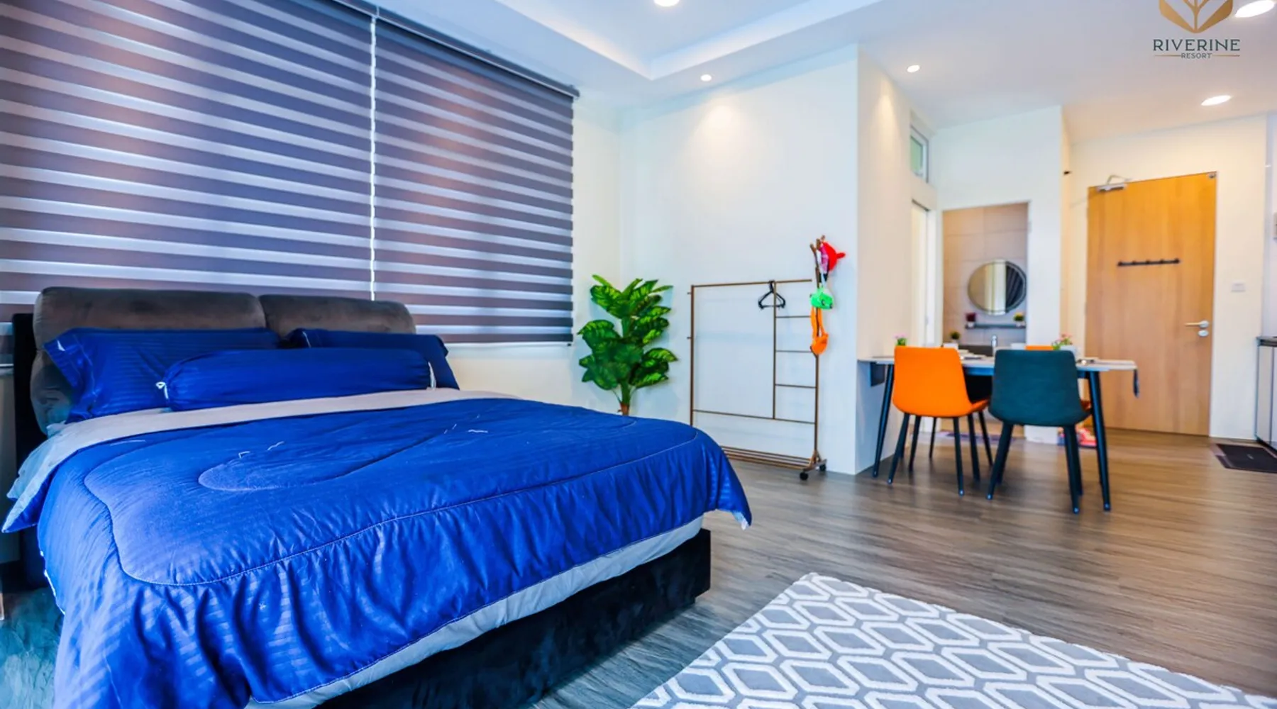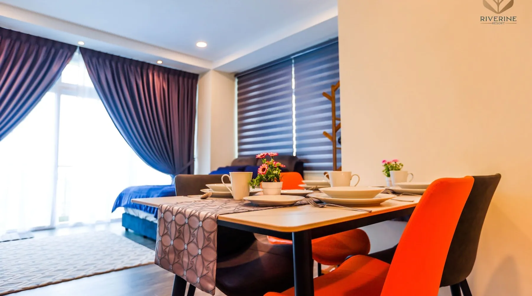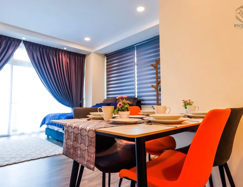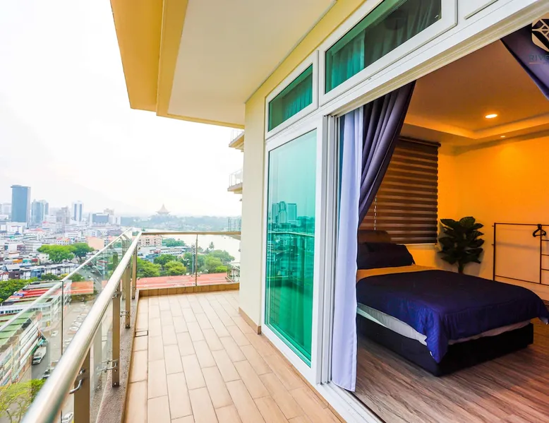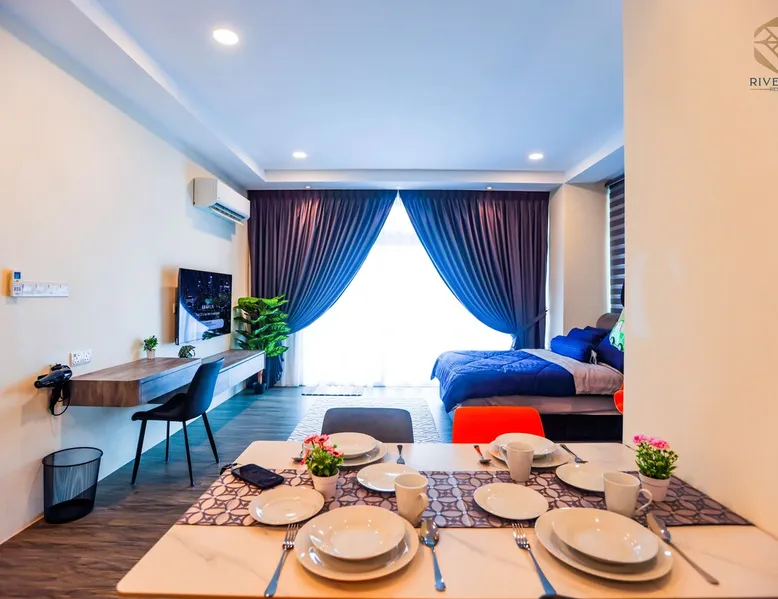Kuching Riverine Resort owns a scenic waterfront esplanade, located along the Sarawak River at Jalan Petanak in the Central Business District of the City. The Riverine Diamond comes with new and luxurious layouts that feature semi-detached and bungalow in the sky units over 22 floors overlooking the Kuching City and the Sarawak River. A perfect place for a staycation with your partner or your small family! Other things to note Before check in, customer should pay RM200 damage deposit by online transfer/cash and will be refund on the day they check out. The account number will be given by whats/app . Note: 1. You must provide your phone number in your profile so we can reach you by whats/app. 2. Damage deposit does not include in your room rate