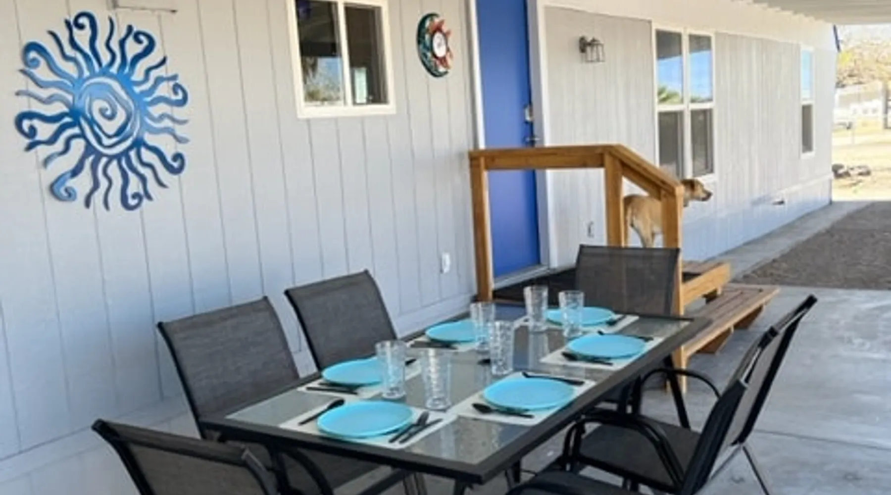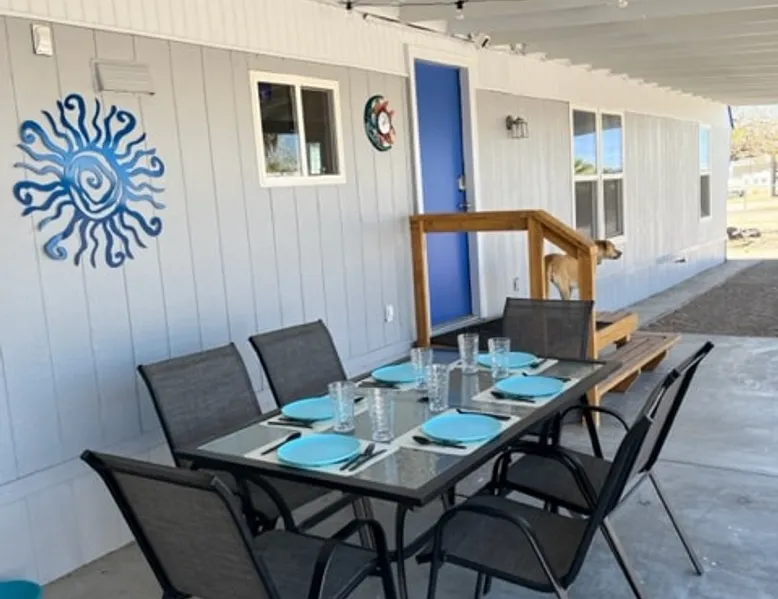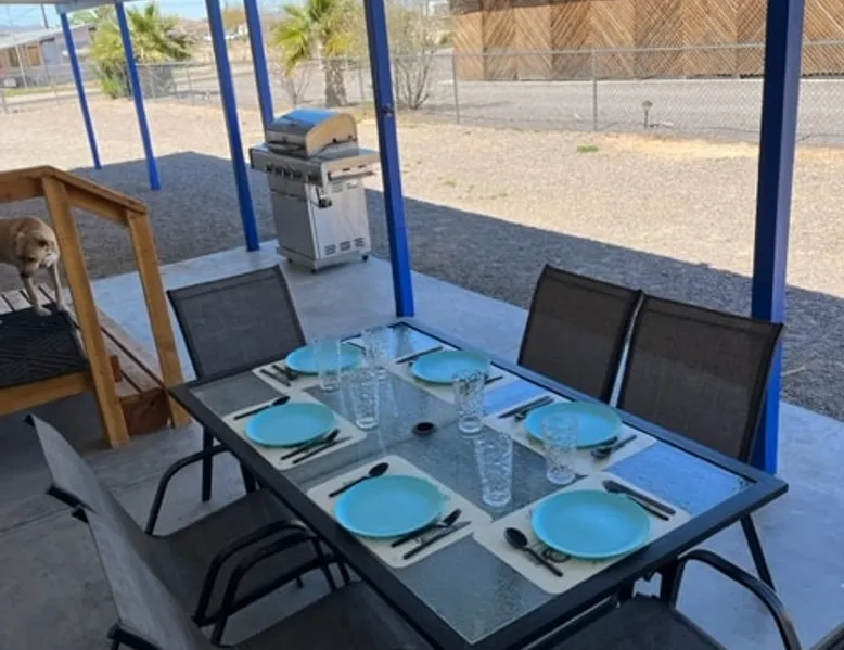 Bring your toys and enjoy our comfortable place to stay. Our newly updated 2bd 2ba home on fully fenced property has plenty of parking for all your vehicles, boat and/or toys, including carport. Our covered patio is a nice spot to enjoy outdoor dining or just hang out in the shade. 10 min to Topock 66 Marina, 15 to Pirates Cove and off roading trails galore just outside the door. Nearby restaurants, gas station, dollar store and general store. Dog friendly, additional fee. No cats, birds, etc The space Our home has 2 bedrooms and 2 full bathrooms, sleeps 4 comfortably, we also have an air mattress available for up to 2 additional guests. The kitchen has all the cooking essentials, and the refrigerator is equipped with an ice maker. We also have a BBQ or if you prefer to let someone else do the cooking, we have nearby restaurants. Guest access Guests will have access to the entire home with exception of 1 closet in the primary bedroom, the detached shed and the garages.