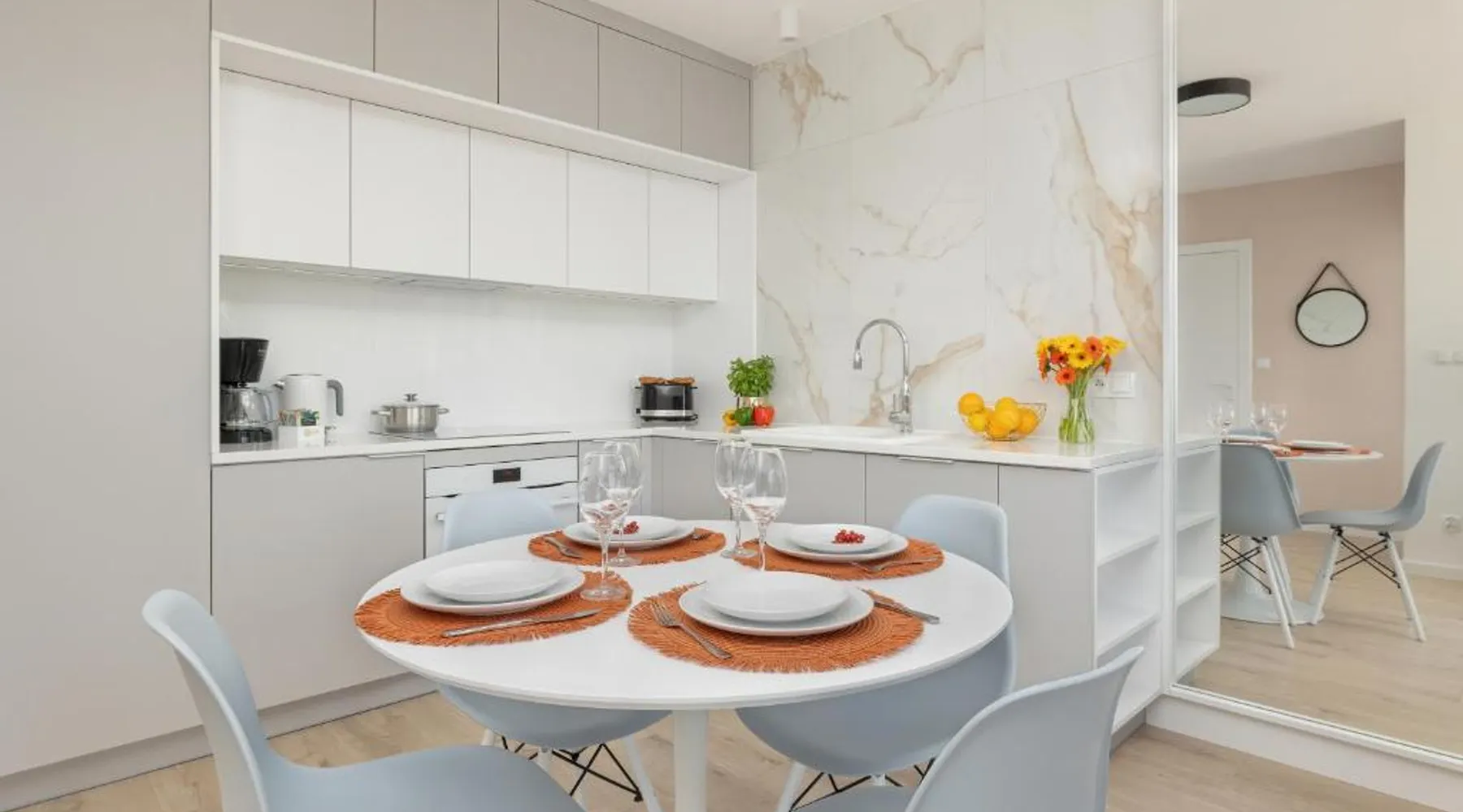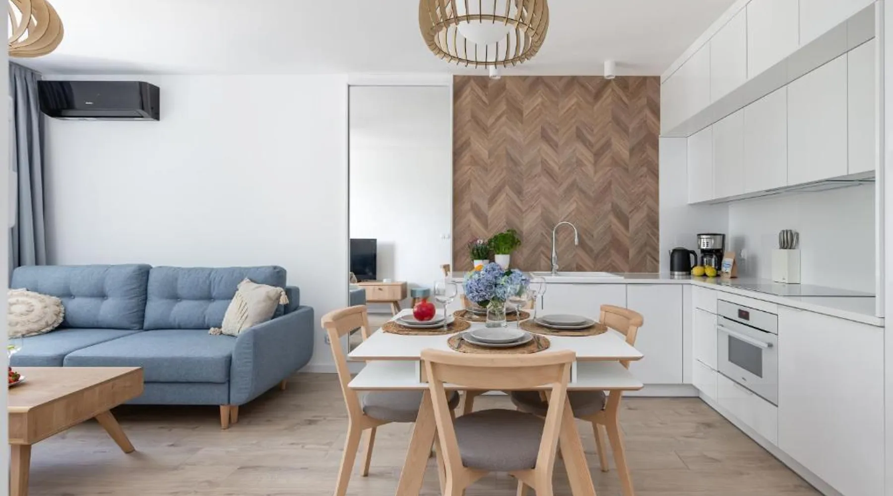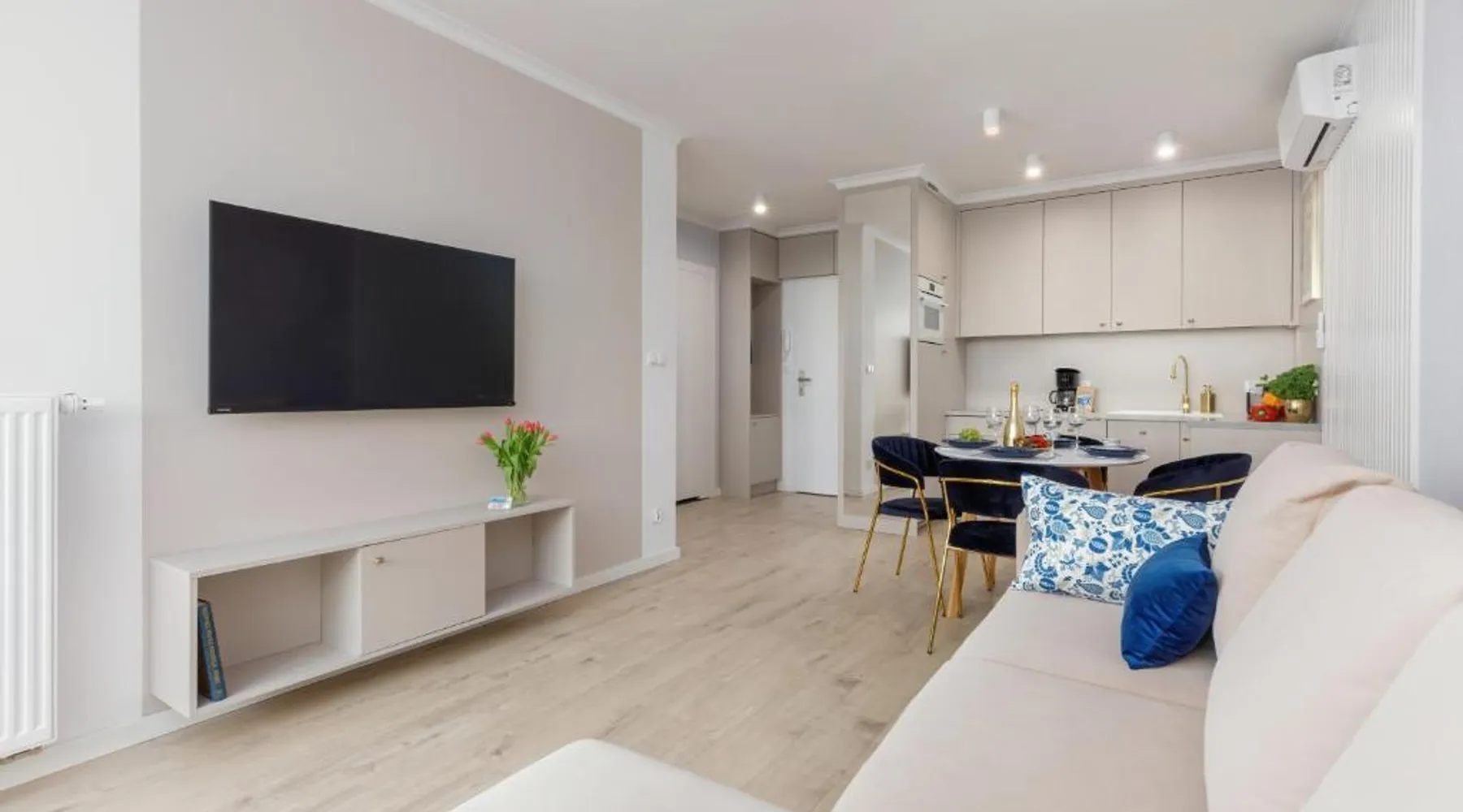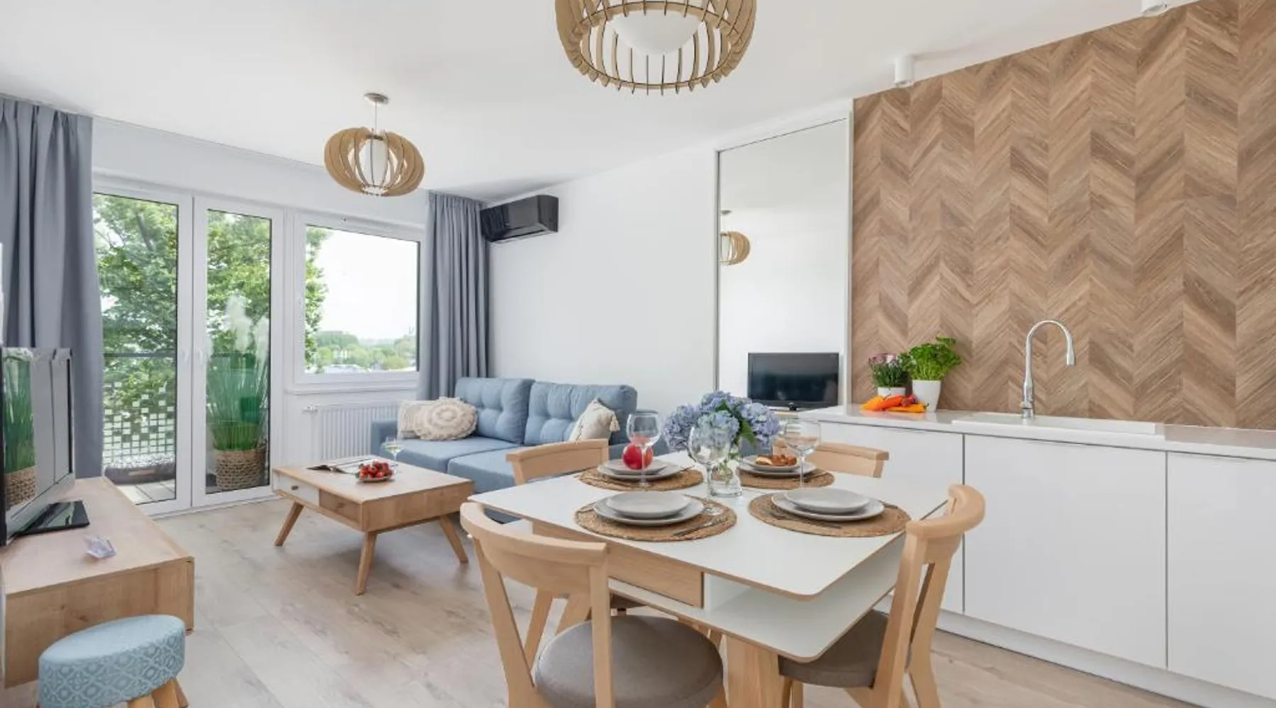 Comfortable Accommodations: Seaside Apartamenty Bałtycka 22 Kołobrzeg in Kołobrzeg offers a sun terrace and free WiFi. Guests enjoy private check-in and check-out services, a paid shuttle, elevator, outdoor seating area, family rooms, bicycle parking, and bike hire. Modern Amenities: Each apartment features a kitchenette, balcony, private bathroom, tea and coffee maker, city view, dining table, outdoor furniture, and a sofa bed. Additional amenities include air-conditioning, washing machine, fireplace, and parquet floors. Prime Location: Located 64 mi from Solidarity Szczecin-Goleniów Airport, the property is near West Beach (1.1 mi), Kołobrzeg Railway Station (1.1 mi), Kolberg Fortress (1.1 mi), and St. Mary's Basilica (1.2 mi). Boating is available in the surroundings. Highly rated for room cleanliness, terrace, and kitchen. Boasting a private entrance, this apartment features 1 living room, 1 separate bedroom and 1 bathroom with a walk-in shower and a hairdryer. In the well-equipped kitchenette, guests will find a stovetop, a refrigerator, a dishwasher and kitchenware. The apartment features a flat-screen TV, a washing machine, soundproof walls, a tea and coffee maker as well as sea views. The unit has 2 beds.