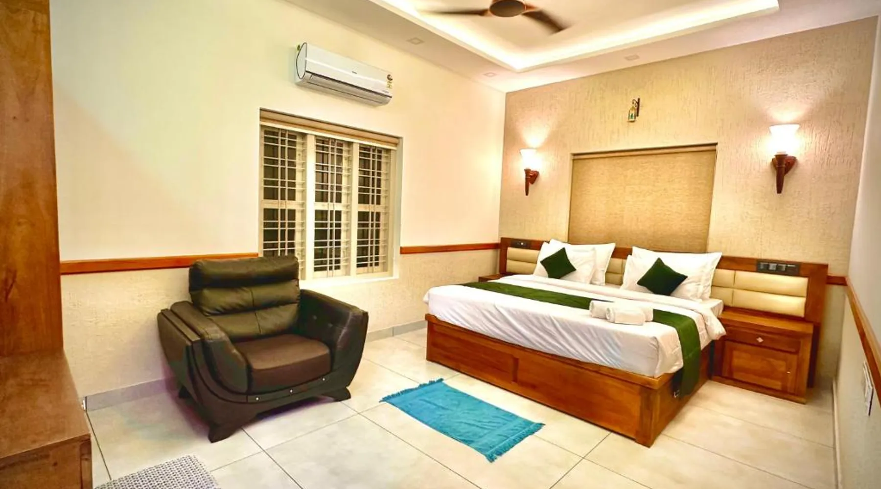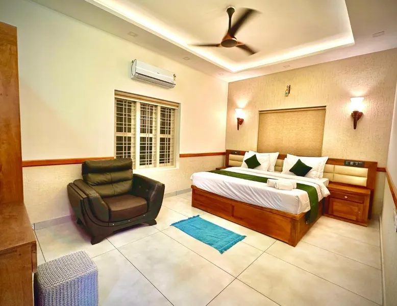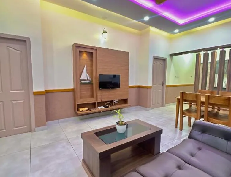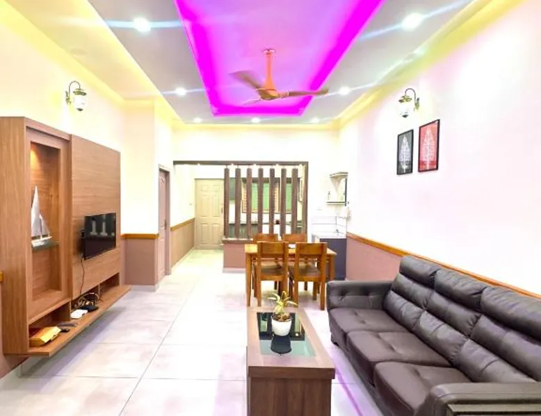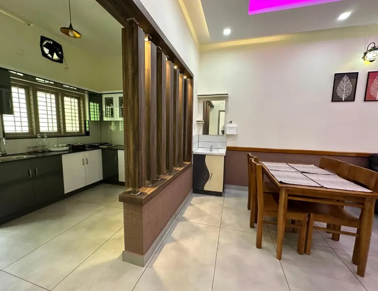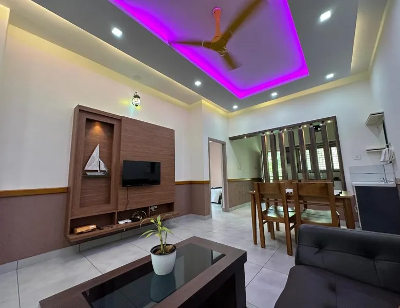 Rivera Suites Vythiri offers accommodations in Vythiri, 14 miles from Thusharagiri Falls and 14 miles from Kanthanpara Waterfalls. The property is around 2.3 miles from Pookode Lake, 4.7 miles from Lakkidi Viewpoint, and 11 miles from Karlad Lake. The apartment provides rooms with air conditioning, free private parking, and free Wifi. All units feature a private bathroom, flat-screen TV, and fully equipped kitchenette. Banasura Sagar Dam is 15 miles from the apartment, while Chembra Peak is 16 miles away. The nearest airport is Calicut International Airport, 48 miles from Rivera Suites Vythiri. The air-conditioned holiday home has 2 bedrooms, 2 bathrooms and a kitchenette. The holiday home's kitchenette is available for cooking and storing food. This holiday home offers a flat-screen TV. The unit has 2 beds and 2 futons.
