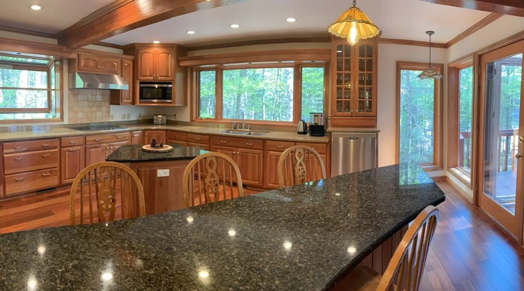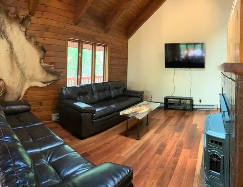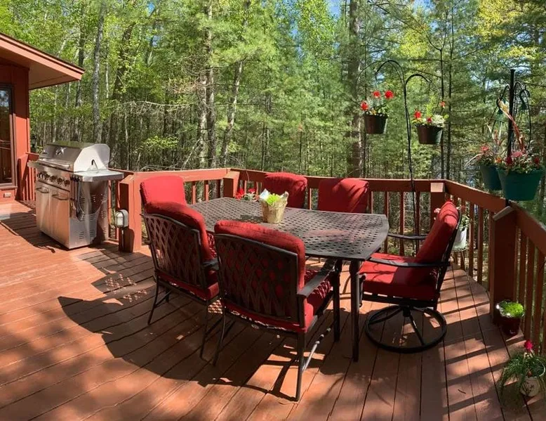 Located on small and quite Wakefield Lake, in the middle of woods and steps away from snowmobile/ATV, bike trails. On 5 acres of wooded privacy with 284 feet of frontage lake. Our home features firewood hot tub, cedar sauna, fireplace, Pellet stove, Lakeshore fire pit, Pier Kayaks, Paddleboat, Playground, water slide, basketball, Grill, 3 in 1 Game Table: Air Hockey, Billiards and Table Tennis. Rustic wood interior with new handmade furniture that will make You feel like in the Real Northwoods.