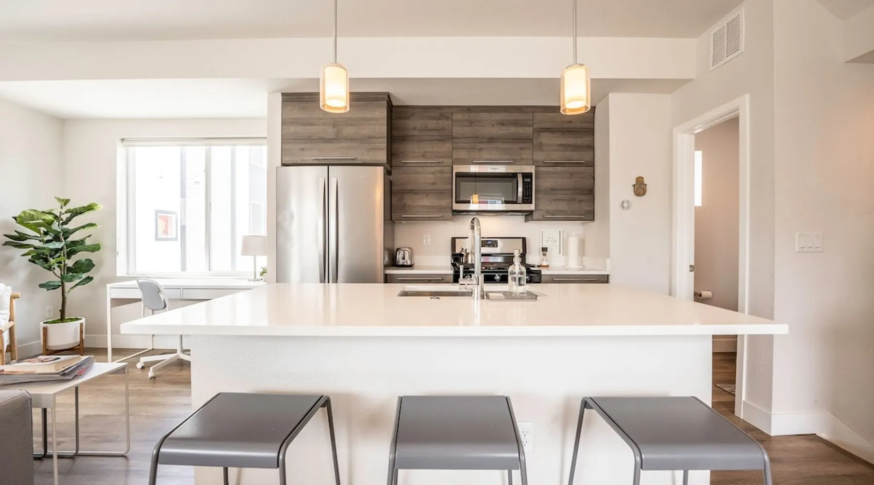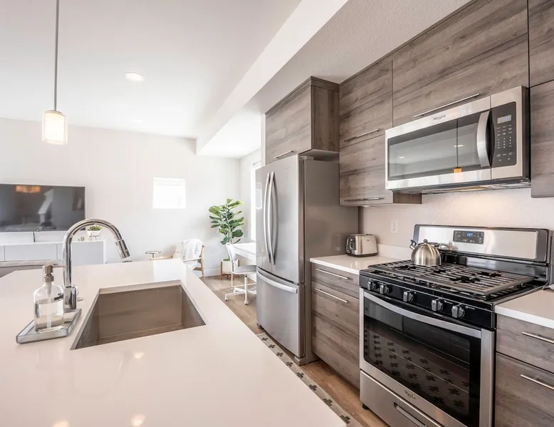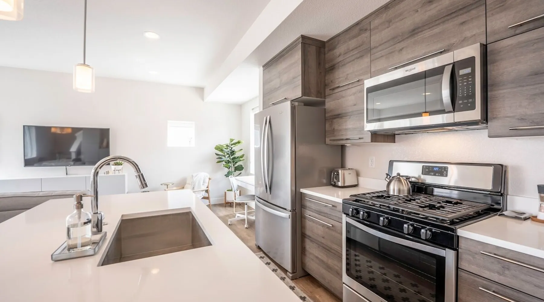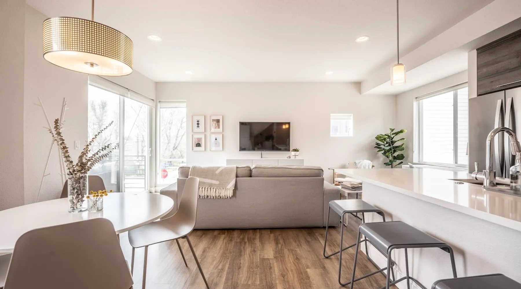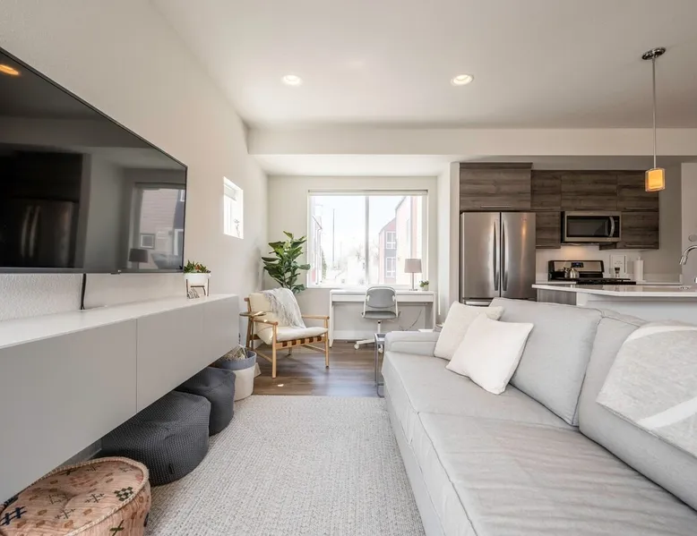 Welcome to Colorado! You are going to LOVE this BRAND NEW centrally located Townhome in Lakewood → Netflix / Smart TV → Fast internet → Self Check-in → Street Parking → 5-15 min drive to Highlands/Tennyson/Coors Field/Downtown/RiNo → 10 min train ride to Downtown, Union station, Empower Field, Meow Wolf → Convenient access to light rail (10 min walk to sheridan station) Easy access to the Highlands, Sunnyside, Tennyson Business district, Red Rocks, the foothills & i-70. The space Welcome to our stunning three-story Townhome. you step inside, you'll be captivated by the luxurious layout and thoughtful design. Let's take a closer look at each floor. On the ground level, you'll discover a cozy bedroom featuring a comfortable full-size bed. It comes complete with a stylish ensuite bathroom equipped with a refreshing shower, ensuring your utmost convenience and privacy. As you ascend to the second level, you'll be welcomed by a delightful open floor plan. This area boasts a brand new, fully-equipped kitchen where you can unleash your culinary skills. The spacious living room invites you to relax and unwind, while the adjacent dining room offers a perfect setting for shared meals and memorable conversations. Additionally, a convenient half bathroom is conveniently located on this level. Venture up to the top floor, and you'll encounter pure luxury. The master bedroom awaits you, adorned with a lavish king-size bed, guaranteeing a restful and rejuvenating sleep. Attached to the master bedroom is a sophisticated ensuite bathroom, adding an extra touch of opulence to your stay. Moreover, there is a second bedroom furnished with a comfortable queen bed. For added convenience, a full bathroom with a shower/bathtub combo is situated just across the hall from the second bedroom. Our Airbnb space is meticulously designed to offer you a truly remarkable experience, combining comfort, style, and convenience across all three floors. We can't wait to welcome you and ensure your stay is nothing short of extraordinary! Guest access You'll have access to the entire house, including the garage. Other things to note There is ONE parking spot in the garage (if you bring more than one care you'll need to park on the street - ample parking)
