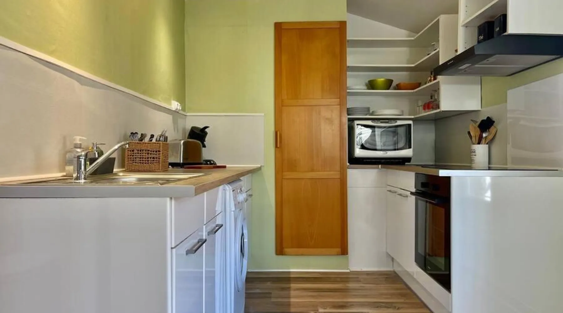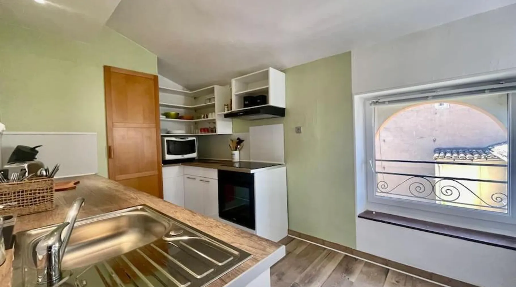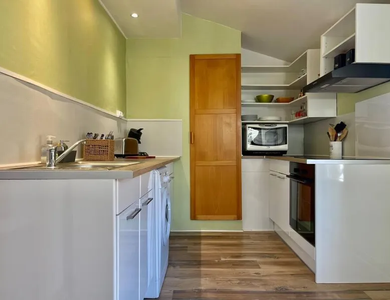 Comfortable Accommodations: L'appart de Léa in Carcassonne offers a spacious apartment with two bedrooms and a bathroom. The property features parquet floors, a private entrance, and a quiet street view. Modern Amenities: Guests enjoy free WiFi, a fully equipped kitchen with a coffee machine, microwave, and oven. Additional amenities include a washing machine, dining area, and work desk. Convenient Services: The apartment provides private and express check-in and check-out services, bicycle parking, and free parking. Reception staff speak English and French. Local Attractions: Memorial House is an 8-minute walk away, Carcassonne Cathedral less than 0.6 mi, and Perpignan IUT University Carcassonne Campus an 11-minute walk. Carcassonne Airport is 2.5 mi from the property. The well-equipped kitchen has a stovetop, a refrigerator, an oven and a microwave. The apartment features a flat-screen TV, a washing machine, a private entrance, soundproof walls as well as city views. The unit has 2 beds.