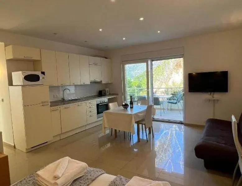 Beachfront Location: Apartments Paradise in Brela offers direct beachfront access and stunning sea views. Guests enjoy free WiFi throughout the property, ensuring connectivity during their stay. Comfortable Accommodations: Each apartment features air-conditioning, a terrace or balcony, and a private bathroom with free toiletries. Additional amenities include a washing machine, barbecue, and a fully equipped kitchen with modern appliances. Convenient Facilities: Free on-site private parking is available, along with a reception staffed with multilingual personnel. The property is 29 mi from Brac Airport and a few steps from Jakiruša Beach. Blue Lake is located 21 mi away. This apartment is consisted of of 1 living room, 1 separate bedroom and 1 bathroom with a hairdryer and free toiletries. Guests will find a stovetop, a refrigerator, a dishwasher and kitchenware in the fully equipped kitchen. The apartment also has a barbecue. This apartment is air-conditioned and features a washing machine, a coffee machine as well as a terrace with sea views. The unit offers 2 beds.