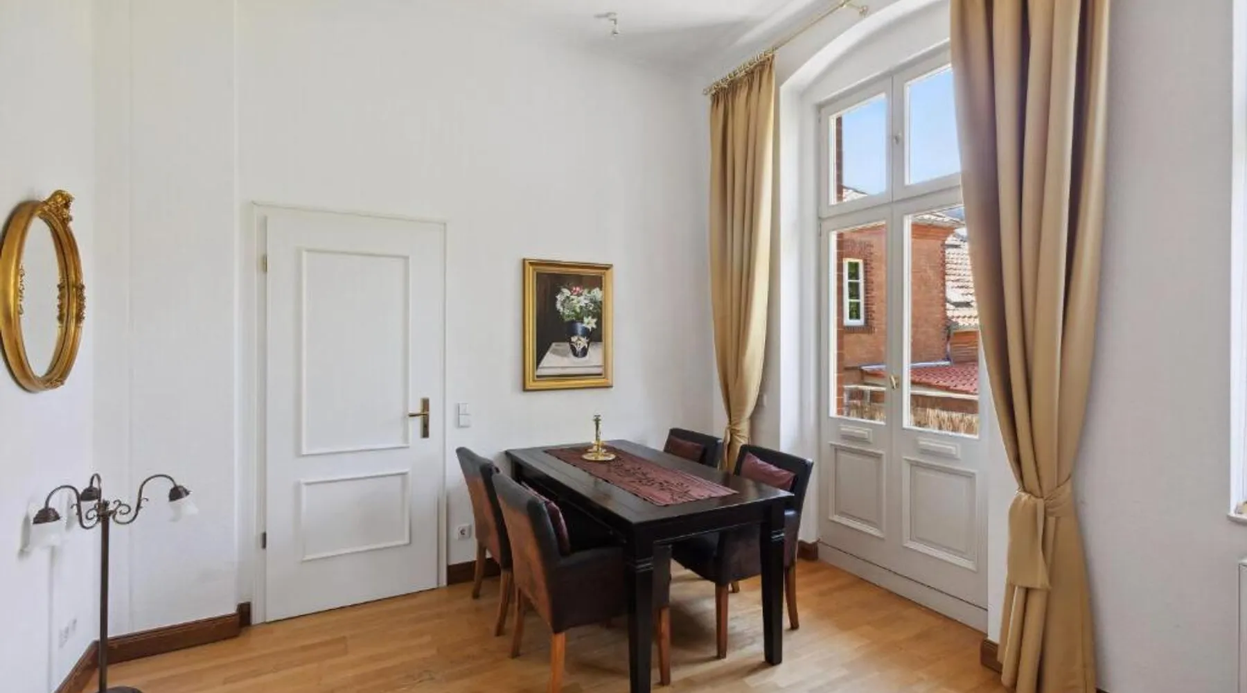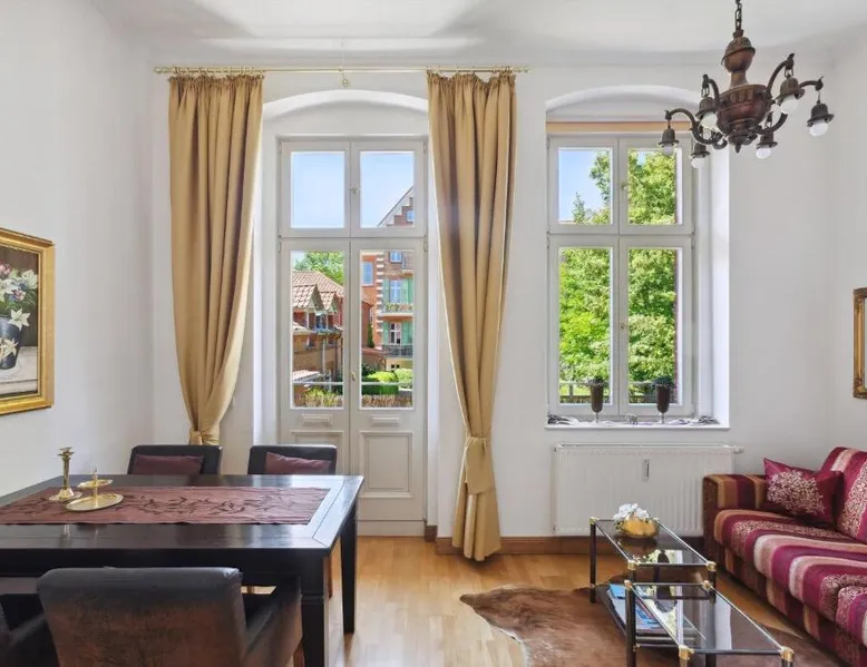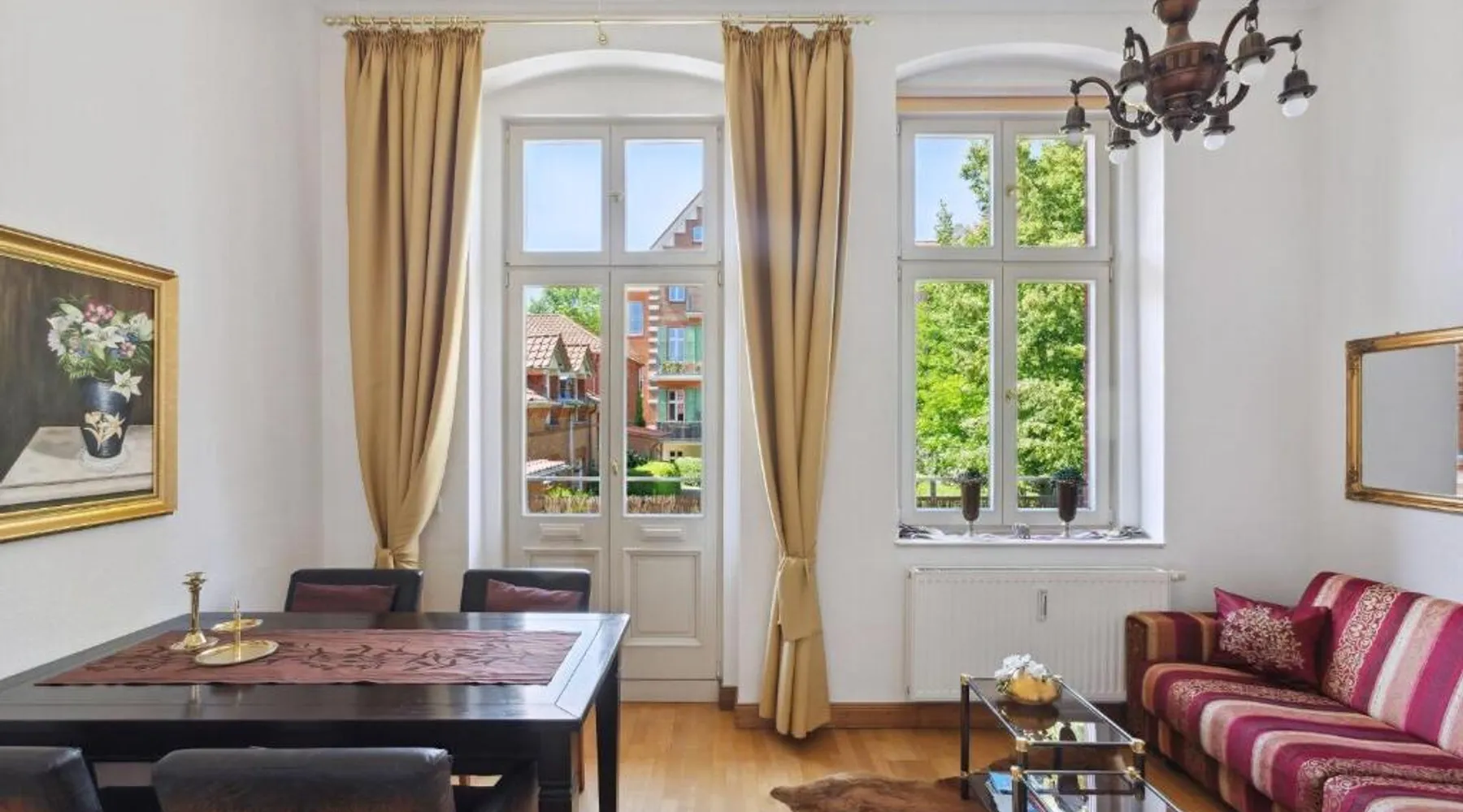 Comfortable Living Space: Gründerzeitvilla in Potsdam offers a one-bedroom apartment with a living room. The property includes a balcony, washing machine, and a fully equipped kitchen with a dishwasher. Modern Amenities: Guests enjoy free WiFi, a washing machine, and free on-site private parking. The apartment features a bath, tea and coffee maker, coffee machine, dining table, sofa bed, seating area, and an electric kettle. Convenient Location: Located 21 mi from Berlin Brandenburg Airport, the apartment is close to attractions such as Sanssouci Palace (2 mi) and Park Sanssouci (2.6 mi). Boating is available in the surrounding area. This apartment includes 1 living room, 1 separate bedroom and 1 bathroom with a bath and a shower. In the well-equipped kitchen, guests will find a stovetop, a dishwasher, an oven and a tea and coffee maker. The apartment offers a washing machine, a seating area, heating, as well as a balcony. The unit has 2 beds.