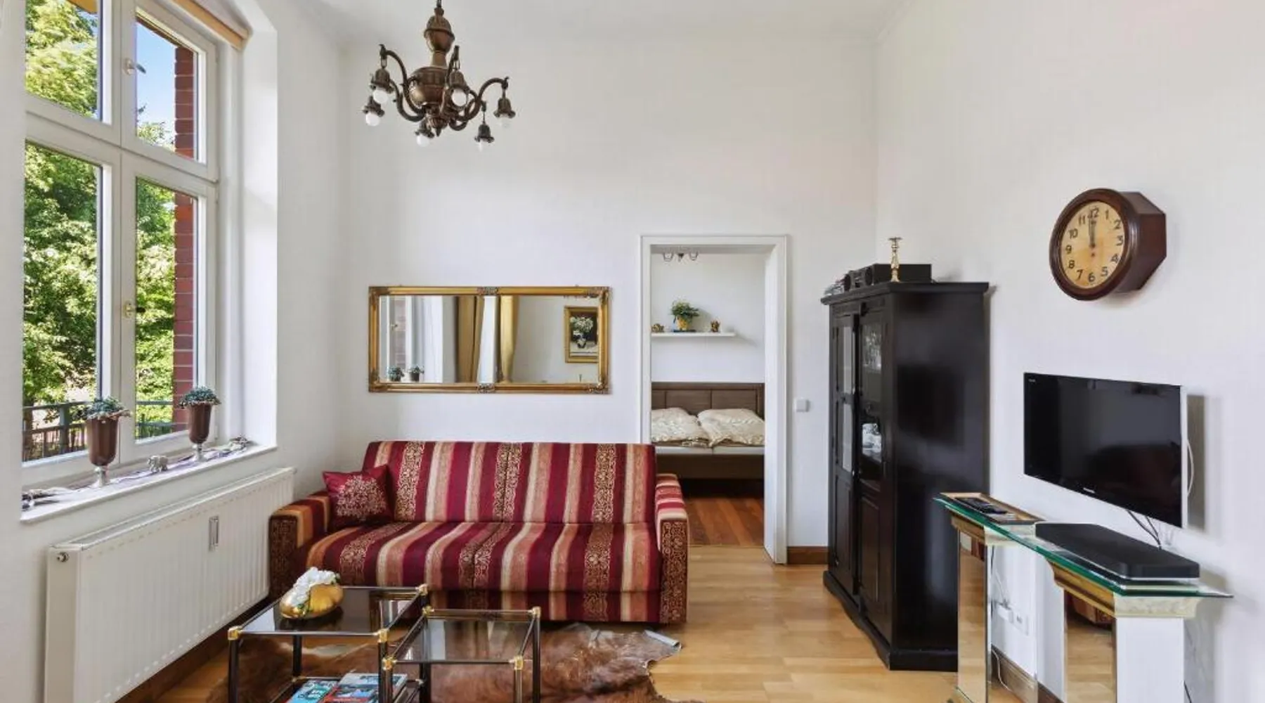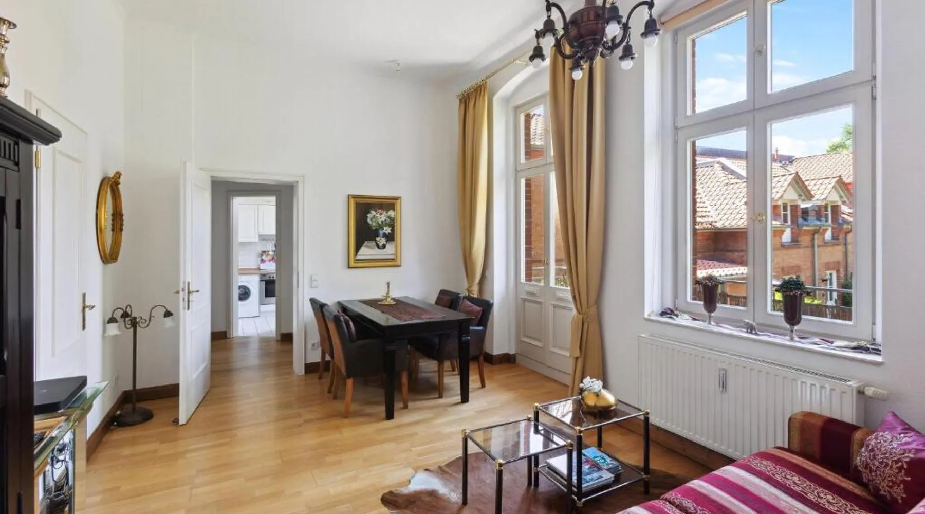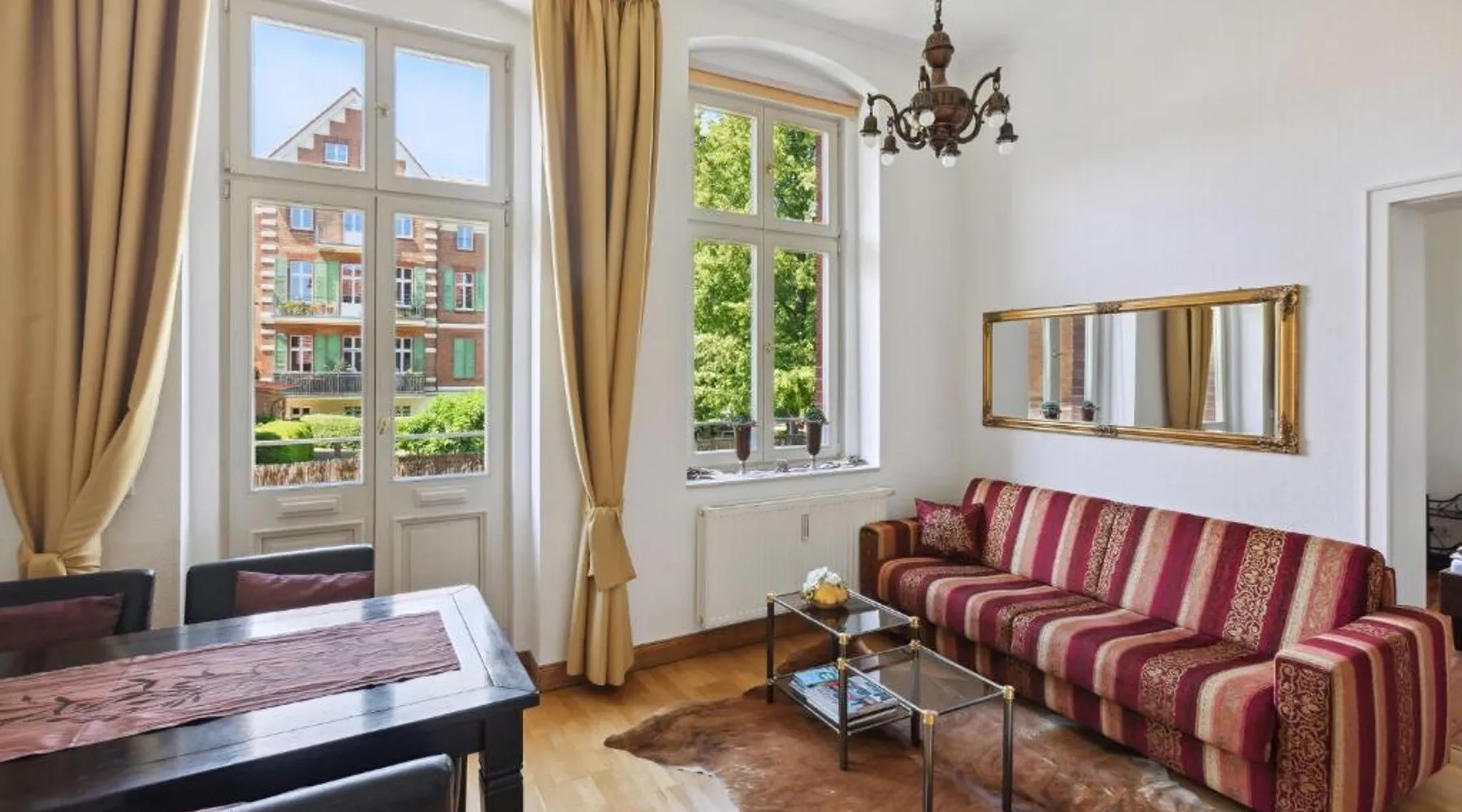 Comfortable Living Space: Gründerzeitvilla in Potsdam offers a one-bedroom apartment with a living room. The property includes a balcony, washing machine, and a fully equipped kitchen with a dishwasher. Modern Amenities: Guests enjoy free WiFi, a washing machine, and free on-site private parking. The apartment features a bath, tea and coffee maker, coffee machine, dining table, sofa bed, seating area, and an electric kettle. Convenient Location: Located 21 mi from Berlin Brandenburg Airport, the apartment is close to attractions such as Sanssouci Palace (2 mi) and Park Sanssouci (2.6 mi). Boating is available in the surrounding area. This apartment includes 1 living room, 1 separate bedroom and 1 bathroom with a bath and a shower. In the well-equipped kitchen, guests will find a stovetop, a dishwasher, an oven and a tea and coffee maker. The apartment offers a washing machine, a seating area, heating, as well as a balcony. The unit has 2 beds.