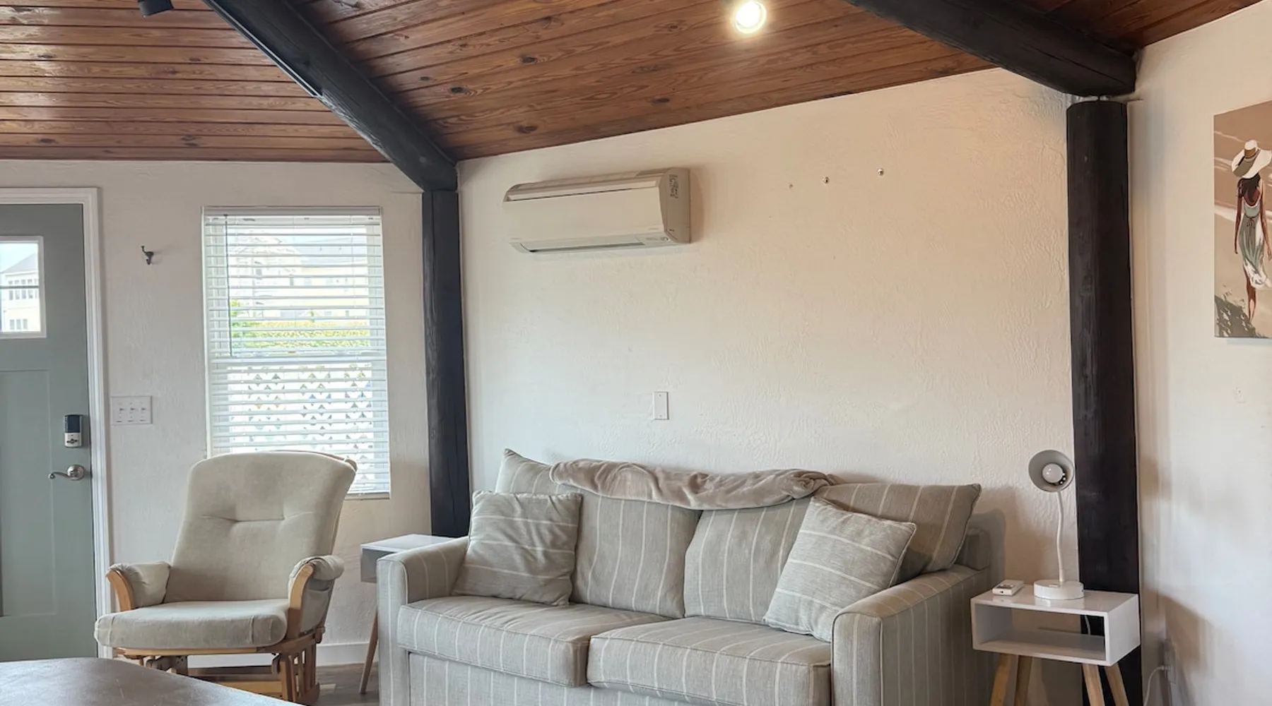 Classic octagon building on the beach road complete with amazing ceilings and a sunken bedroom. All of KDH is right outside your front door! You'll have a great time at this comfortable place to stay. The space Amazing octagon living room/kitchen area with a sunken bedroom and a great deck area for enjoying all the Outer Banks has to offer. Guest access The entire suite. Other things to note Sandy Beach is a motel. The bungalow is set apart from the remainder of the motel.