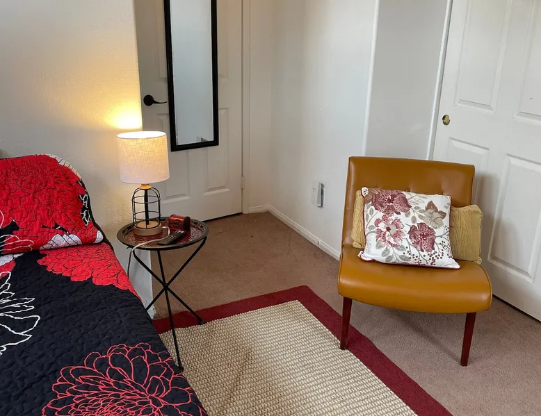 Quite room. Extroverts, check out the annual Lavender Festival and the Cherry Festival. Also Stagecoach and Coachella are just 55 miles away. Introverts you will appreciate the quiet solitude and the privacy this cozy room provides. The space Our spacious and serene home is nestled in a quiet neighborhood in downtown Beaumont California. We have three rooms that we rent to guests. My husband and I reside in the back main bedroom. We travel often but will respond to most inquiries within 30 minutes. Our single-story home includes a well stocked kitchen, and laundry room. boasts a charming patio where you can unwind and soak up the peaceful ambiance. For bookings exceeding two guests, reach out to me directly for special arrangements. Honored to have our home become your home-away-from-home. Guest access Our guest can access all common areas which include the kitchen, living room, laundry room and patio. During your stay We will be available at anytime. We will respond to calls within minutes. Your comfort is our highest priority.