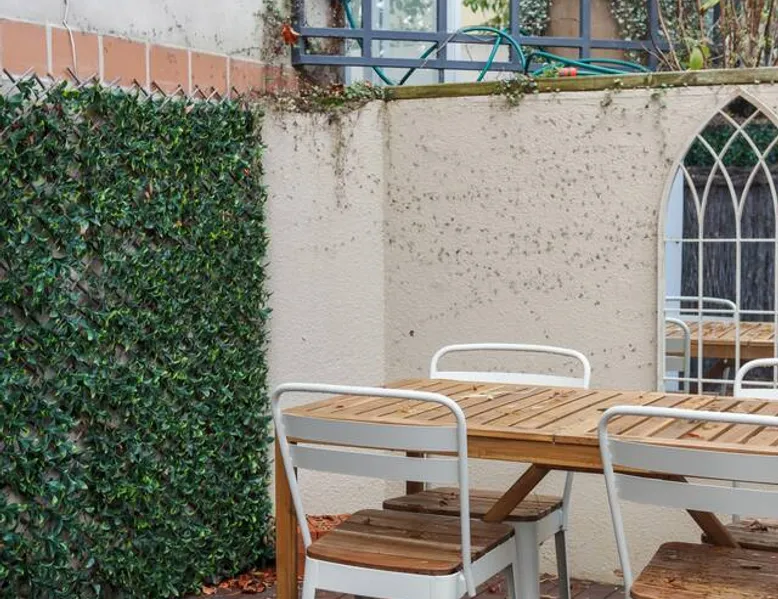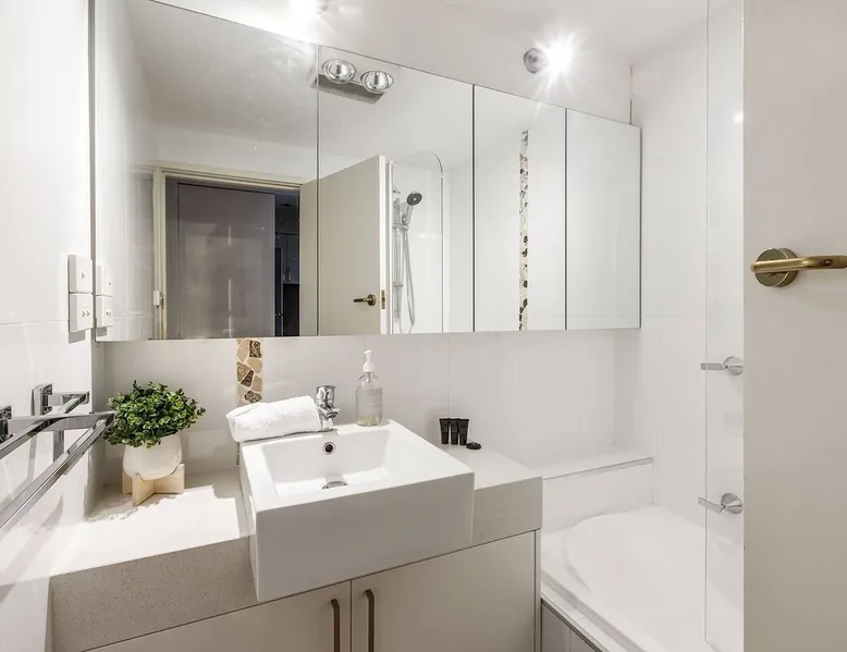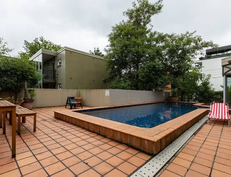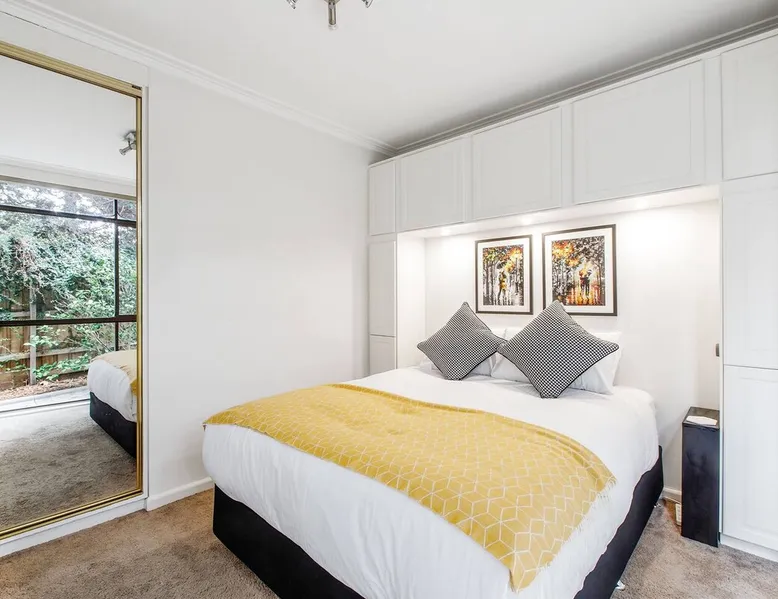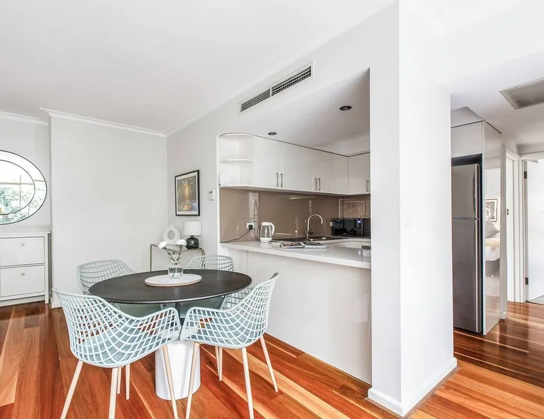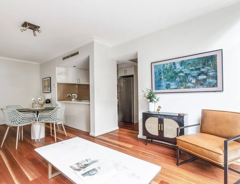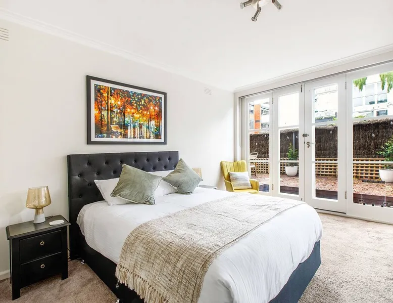 Embodying casual elegance with its high ceilings, tall windows, timber flooring and French doors, this sun-drenched ground-floor apartment offers a leafy base to call home. Relax in air-conditioned open living, cook meals in the fully-equipped kitchen or make your way out to the leafy, private courtyard to dine alfresco. Enjoy the added convenience of two bathrooms. You'll be within walking distance of South Yarra's shopping and dining precincts and have access to the building's shared pool. The space This contemporary, two-bedroom, two-bathroom stay provides a beautifully appointed base while you work, relax, or discover the sights during your visit to Melbourne. A light and airy layout extends to a charming outdoor space that offers complete privacy and comfort. You’ll find a well-equipped kitchen with all you need to cook at home, and a four-seater table to share meals. An additional four-person setting is nestled in the private courtyard, ideal for enjoying your morning coffee or an afternoon glass of wine. The air-conditioned living area features chic furnishings including a large sofa and armchair where guests can unwind with some TV or settle in with a book, with floor-to-ceiling windows offering relaxing views overlooking the greenery outside. Two beautifully appointed bedrooms each feature a queen-size bed, with the primary bedroom also offering direct access to the courtyard and an attached ensuite. The modern main bathroom features a shower, bathtub and complimentary toiletries. Additional conveniences include Wi-Fi, a washing machine and dryer, as well as one parking spot for a small to medium car, although space may be tight. Guests can also take advantage of a communal pool located within the apartment complex. Please note that there are no lifts available in this property. A couple of short flights of stairs are required to access Unit 1. Guest access During your stay, you and your group will have the entire space to yourself. Please make yourself at home! Other things to note Please read and respect the house rules. This is very much appreciated, thank you! Before your arrival, we will also share a house guide that contains instructions on how to access the property, use certain appliances, and anything else you may need to know.