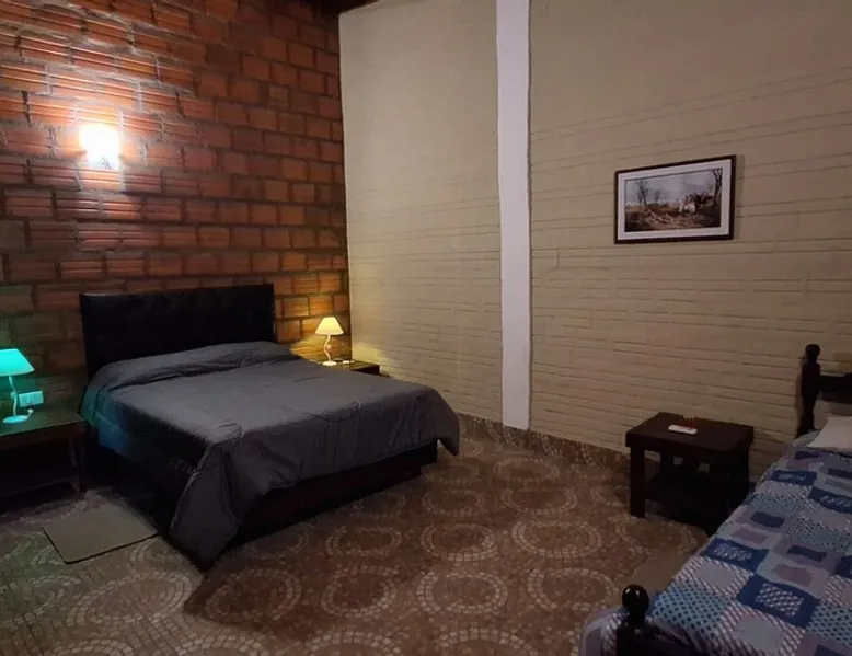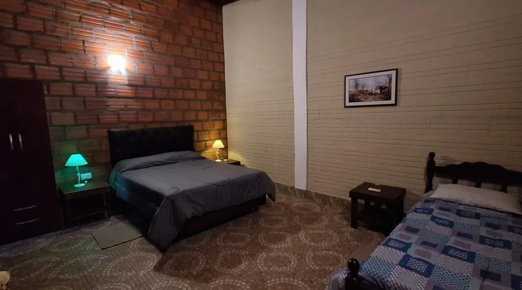 A unique place with all amenities 10 min from downtown. The housequinta has a large pool, lounge chairs, as well as a quincho with all the amenities (AA, kitchen, kitchen, fridge, freezer, oven, direct TV, direct TV, kitchen utensils, living room-room) 1 double bedroom, 2 family bedrooms, all with AA, wifi, 2 bathrooms. What a guy with 2 grills, stables, a pebble. The property is totally gated and safe . Entrance for 3 vehicles. SLEEPS UP TO 12 PEOPLE. The space 1 double bedroom with double bed, 2 family rooms w/u with double bed, bunk bed and single bed. includes cushioned blankets. (bedding does not include) 2 full bathrooms. living room living area overlooking the garden and pool. Light services, water, directv, wifi at no additional cost Other things to note Bedding (linens, linens) are not included. Includes cushions and light blankets. Pets are not allowed.