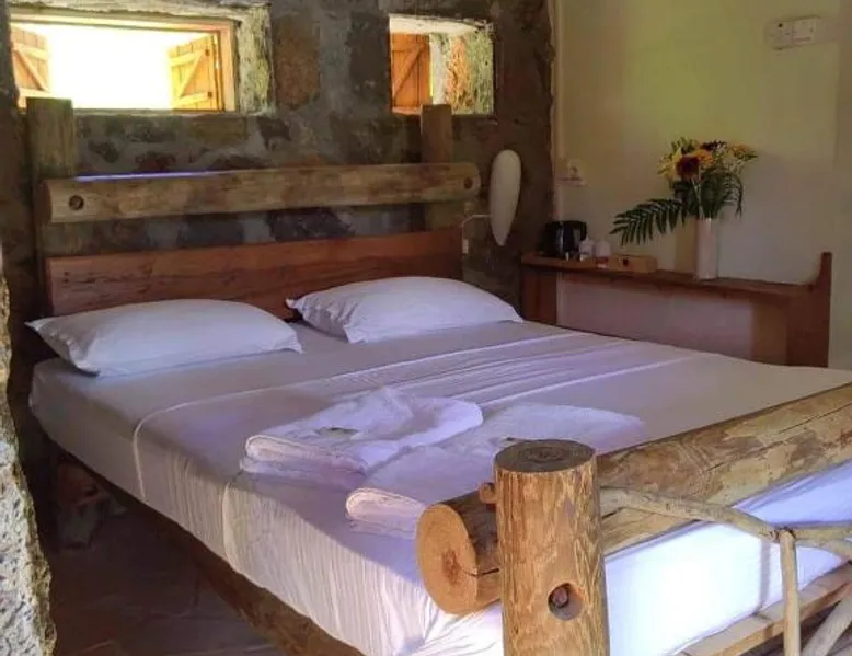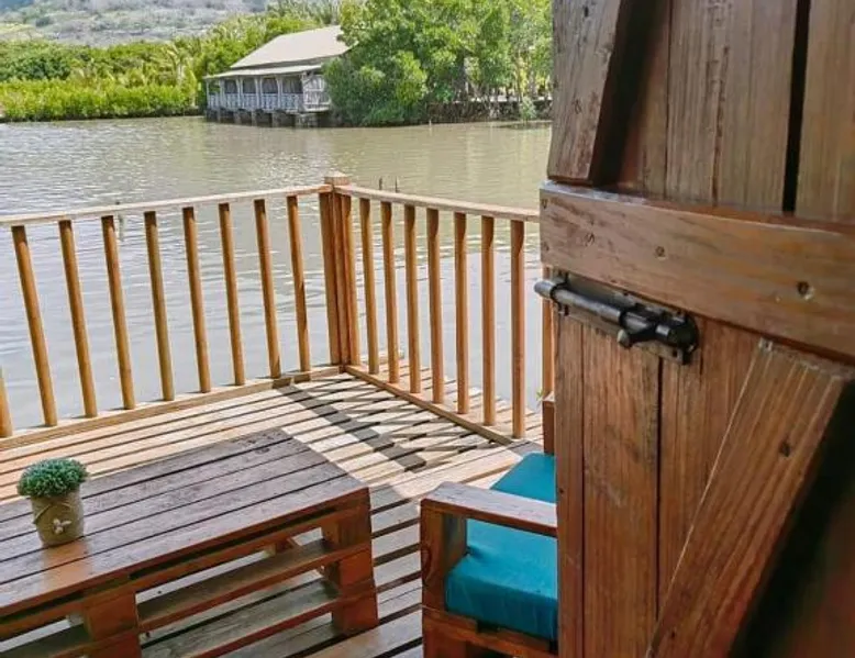 Elegant Accommodations: La Case Du Pecheur in Grand Sable offers a swimming pool with stunning views, a sun terrace, and a lush garden. Guests enjoy free WiFi, a restaurant, and a bar, ensuring a comfortable and relaxing stay. Comfortable Amenities: The hotel features family rooms, a lounge, and a coffee shop. Additional facilities include a paid shuttle service, electric vehicle charging station, and free on-site private parking. Dining Experience: A family-friendly restaurant serves Indian, American, Italian, Japanese, Mediterranean, pizza, seafood, local, Asian, and European cuisines. Breakfast options include continental, vegetarian, vegan, and halal, with local specialties, juice, cheese, and fruits. Prime Location: Located 12 mi from Sir Seewoosagur Ramgoolam Airport, the hotel is 9.9 mi from Bus Station Mahebourg and Le Touessrok Golf Course. Sir Seewoosagur Ramgoolam Botanical Garden is 31 mi away. This double room provides a pool with a view. The spacious double room offers air conditioning, a private entrance, a terrace with sea views as well as a private bathroom featuring a shower.