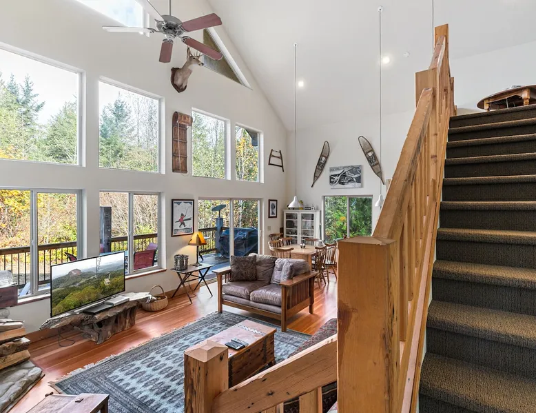 Get the folks together and come visit the Great Northern Demi Lodge! This secluded, 2-story home has been condensed and is a fantastic, budget-friendly getaway for groups up to 4 - and don’t forget your furry friends! Relax by the firepit and stargaze, grill up today’s catch from the Skykomish River (just minutes away), or simply enjoy some soothing nature time in the coziest of digs. Outside, find yourself 20 minutes from Stevens Pass with plenty of yard space for any game you’d like. The space ***PLEASE NOTE: Airbnb is now forcing professional hosts to pay their service fee which means it’s more expensive to book a Tree Line Rental on Airbnb than anywhere else; almost 16% of your rental is Airbnb fees and this is no longer disclosed to you during the reservation process.*** Please note that this is a listing for the 2nd & 3rd floors ONLY, the basement floor is locked off and will be vacant. If you have a larger group you can rent the unit listed as "Great Northern Lodge" which will give you access to the basement level. Bedrooms: - Main floor Queen bedroom - Top floor Queen master bedroom If you're looking for more space, check out our listing for the full Great Northern Lodge! Bathrooms: - Main floor full bath - Top floor ensuite full bath At This Property: - 2.5 acre lot - Plenty of privacy and quiet! - High-speed internet provided by Starlink - 2,350 sqft interior (in full listing) All Tree Line Vacation Rentals come standard with: - propane grill, propane provided - standard coffee maker with a reusable gold filter - coffee service including 2 packets (for 2 pots) of fair trade coffee and a small selection of teas and sugars - spice rack (cooking oil is NOT provided as it is a perishable item). - towels and linens (1.5 x occupancy towels provided, min. 4, so be sure your guest count is accurate). - amenity size shampoo and body wash - fully equipped kitchen (pots, pans, dishes, etc) - dish, dishwasher, hand soap - a bundle of pressed Green Mountain logs where wood burning fireplaces are available. NOTE: our seasoned wood and pressed logs are NOT for outdoor use, please bring your own wood for campfires. If you think you'll need more than the pieces of wood we provide, please bring more. Wood is usually available to purchase in the area. Guest access Guests will have access to the top two floors of the home. The basement will be locked off and not accessible unless you wish to rent the Great Northern Lodge through our separate listing. Other things to note -communication Our area has many places where there is little to no cell reception so please do not rely on internet based apps such as a map app to get to your property. It is imperative that you either print the information we are sending, especially the Final Arrival Instructions we send a week before your stay, or have it downloaded somehow offline so you can access it on the way. We will provide the best contact number to reach us once you have booked. During your stay, you will receive the fastest response by calling (leave a message if no answer), message through Airbnb or texting us as we are not monitoring emails 24/7. -Damage protection Our guests are automatically protected by the Waivo damage protection program. -Check in/ check out Your property will be ready by 4pm. You will have keyless entry and can arrive at your leisure any time after 4. Departure is 11am. Please be sure to check out on time so we can get the home ready for the next guests. Check out procedures are posted at the property and will also be emailed the last day of your stay. Note: no late departures or early arrivals June 15-Sept 3 or Dec 15-Jan 3 due to the busyness of the seasons This is a cabin in the woods in the mountains: This is a cabin in a rural / semi-rural setting where weather, wildlife including pests, utility outages, road conditions and other impacts from being in a wilderness setting exist. Although we do regular pest control and have stellar cleaning service, even the newest homes can have uninvited pests. If you already know the site of one will ruin your stay, take this opportunity to rebook your vacation in a setting not surrounded by wilderness. Otherwise, you are accepting in this agreement that you understand that occasional wildlife and insects not ordinarily seen in other settings may be on the property. Guests are expected to be prepared with aws / 4wd or chains to handle driving in inclement/ winter weather. Guests are expected to be able to manage common home operations such as resetting a breaker, unclogging a toilet or using the fireplace. Guests understand that internet and power outages are beyond management's control and although management can help report such outages, ongoing updates and resolutions come from the utility companies directly. -Neighbors All our homes feel private, often surrounded by thick trees and wilderness, and hot tubs are all private- just for you- and situated so that you will feel like there is no one else around so guests return home feeling relaxed and refreshed. But- we are just an hour from Seattle and population continues to grow, so keep in mind that most of these homes are in communities with neighboring houses. "Secluded" in our area usually means off-grid with no power or water which are amenities we would prefer to provide! -Utilities Our homes are all on wells or have systems that bring water from the river. It is then thoroughly filtered and all systems have been tested to assure it is potable water. However, minerals in the ground often may add an orange taint that can stain spas, toilets, sinks and tubs. Do not be alarmed, it is just something that happens when the water table changes. Power outages may happen and are often resolved quite quickly unless caused by inclement weather. If your life depends on constant electricity or internet access, staying in the wilderness in a national forest is not advised. Well pumps are also run by electricity so in case of power outag
