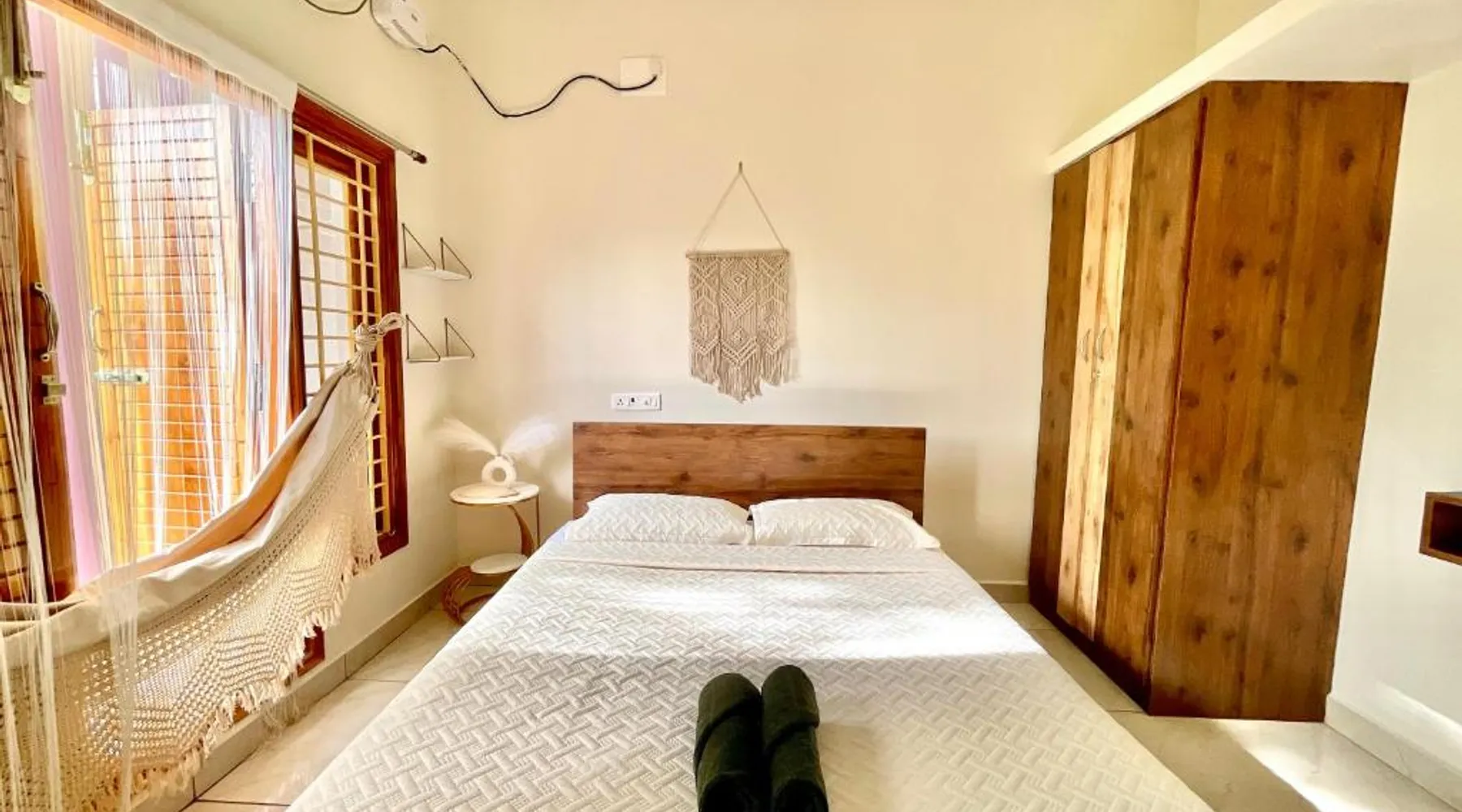 Elegant Accommodations: Porto Beach House in Pondicherry offers a spacious apartment with three bedrooms and three bathrooms. The living room features a sofa and a work desk, while the kitchen is equipped with modern appliances. Exceptional Facilities: Guests can enjoy a rooftop swimming pool, terrace, and free WiFi. Additional amenities include air-conditioning, a balcony, and a kitchenette. Free on-site private parking is available, along with a 24-hour front desk and housekeeping service. Prime Location: Located 3.1 mi from Puducherry Airport, Porto Beach House is a 15-minute walk from Serenity Beach. Nearby attractions include Sri Aurobindo Ashram, Manakula Vinayagar Temple, and Pondicherry Museum, each 3.1 mi away. This villa offers a private pool. Boasting a private entrance, this air-conditioned villa features 1 living room, 3 separate bedrooms and 3 bathrooms with a bath and a shower. Meals can be prepared in the well-fitted kitchen, which has a stovetop, a refrigerator, a toaster and an electric kettle. Featuring a terrace, this villa also features a seating area, a wardrobe and a flat-screen TV with streaming services. The unit has 6 beds.